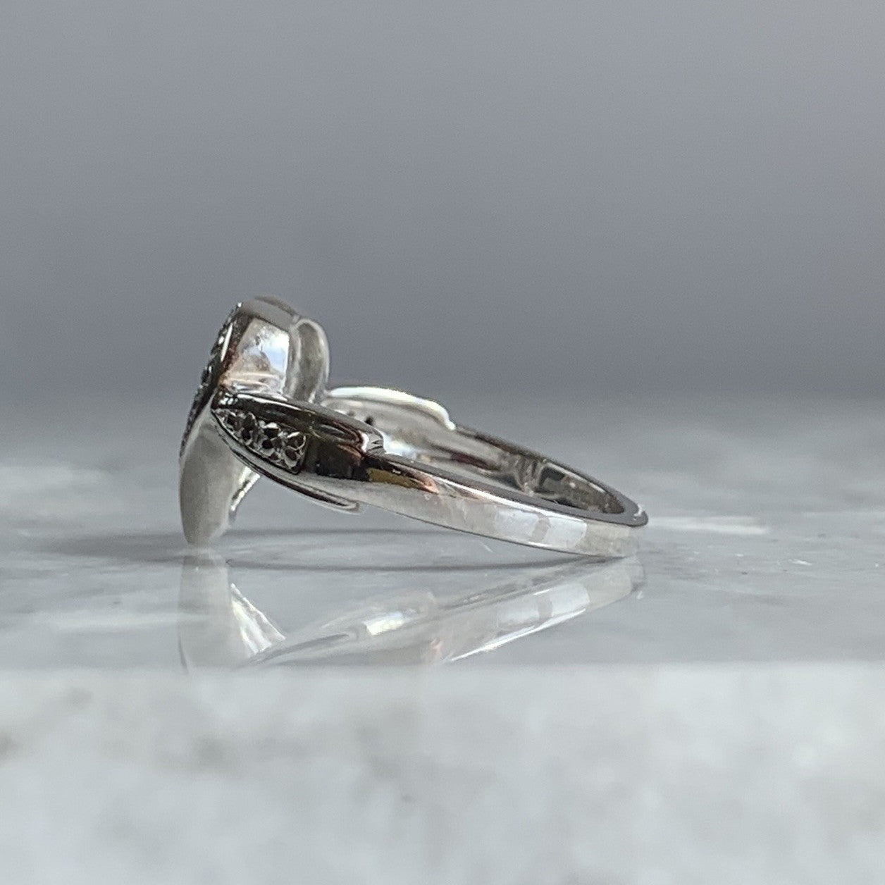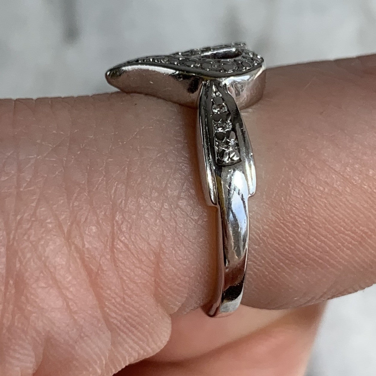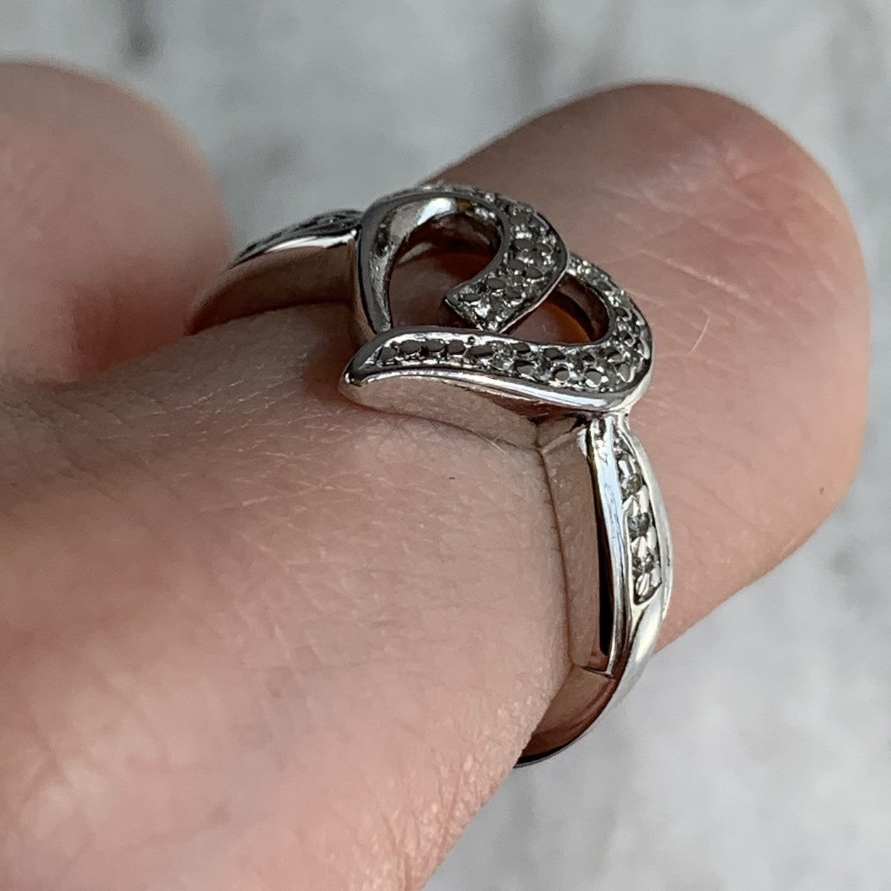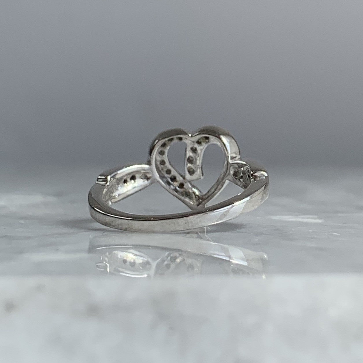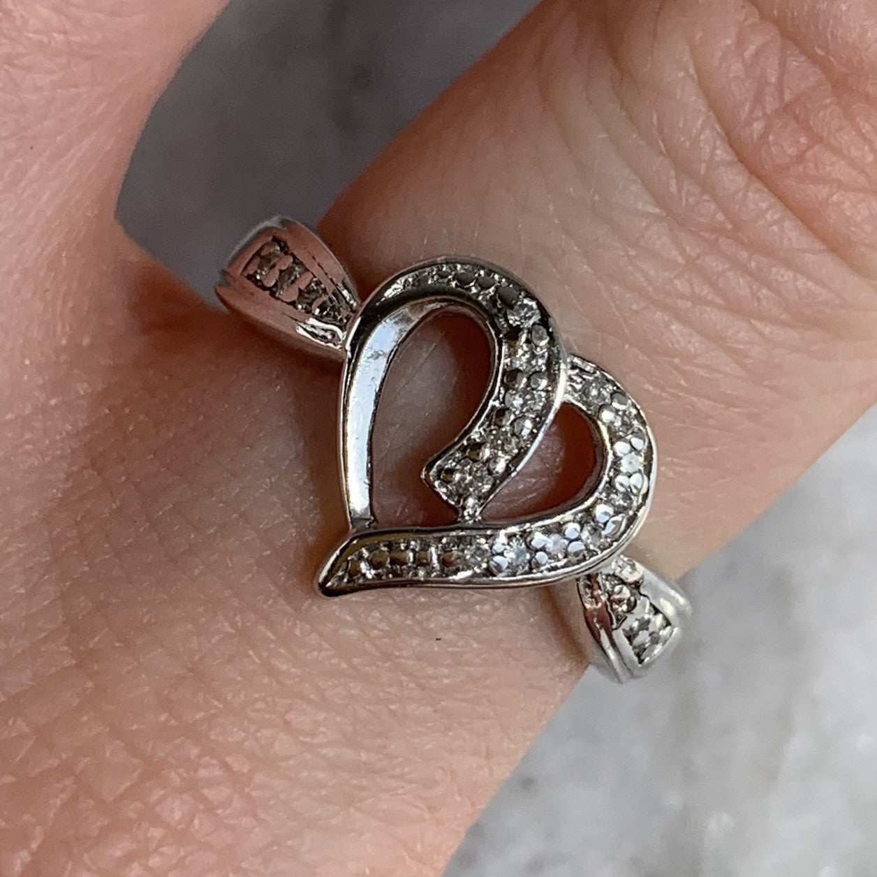 Diamond Heart Cut Out Ring 9ct 375 White Gold - Size N