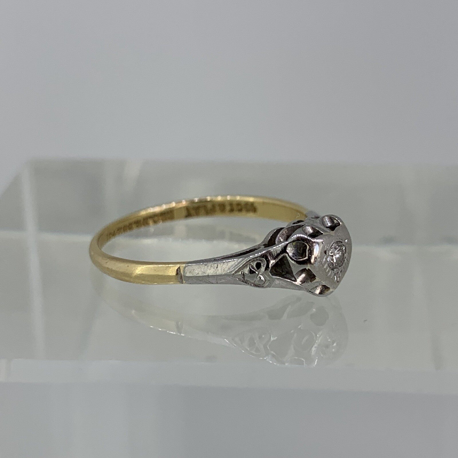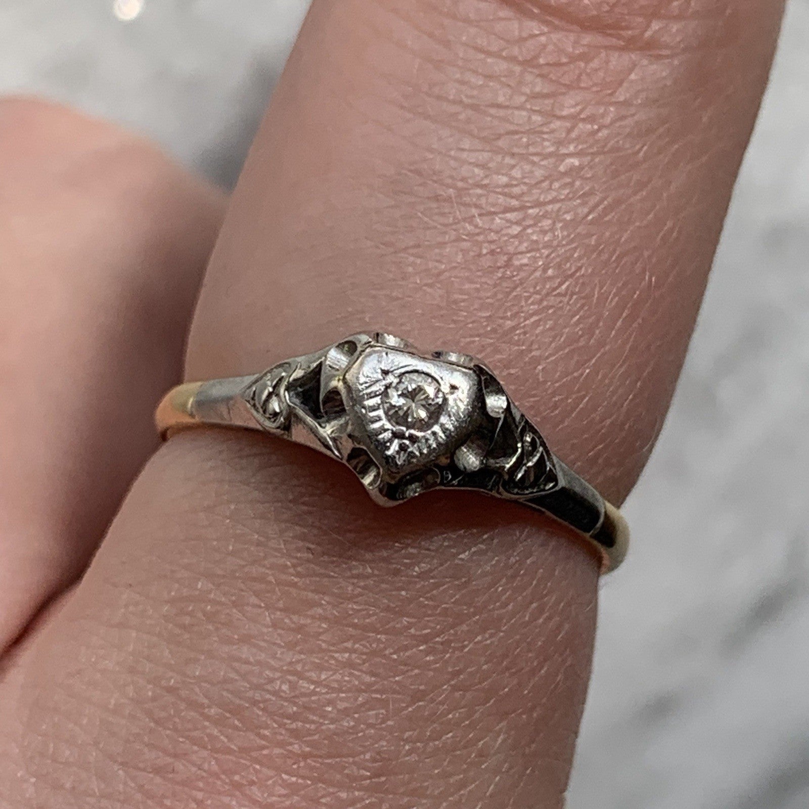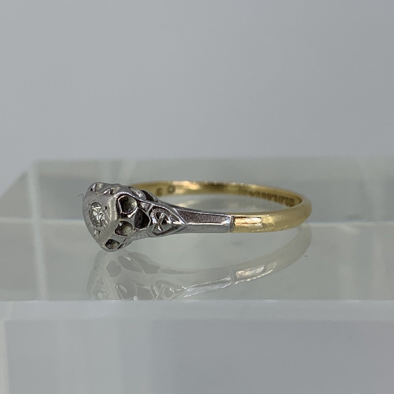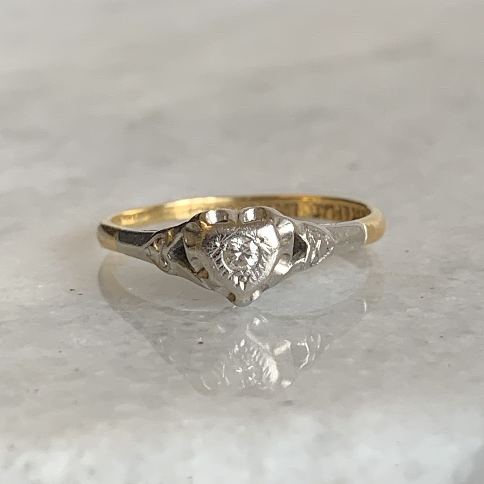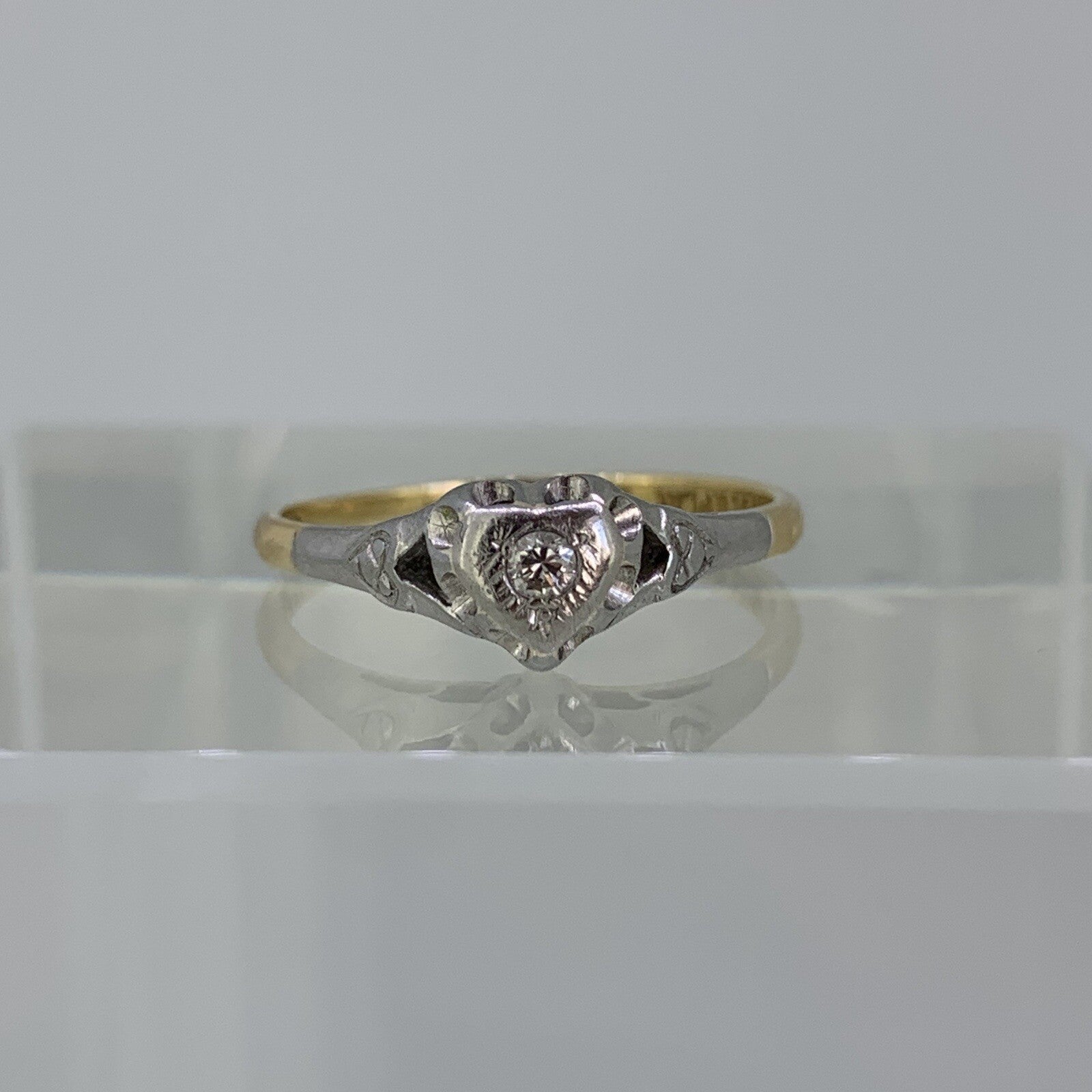 Diamond Heart Platinum Set Antique Solitaire Ring 18ct 750 Yellow Gold - Size O