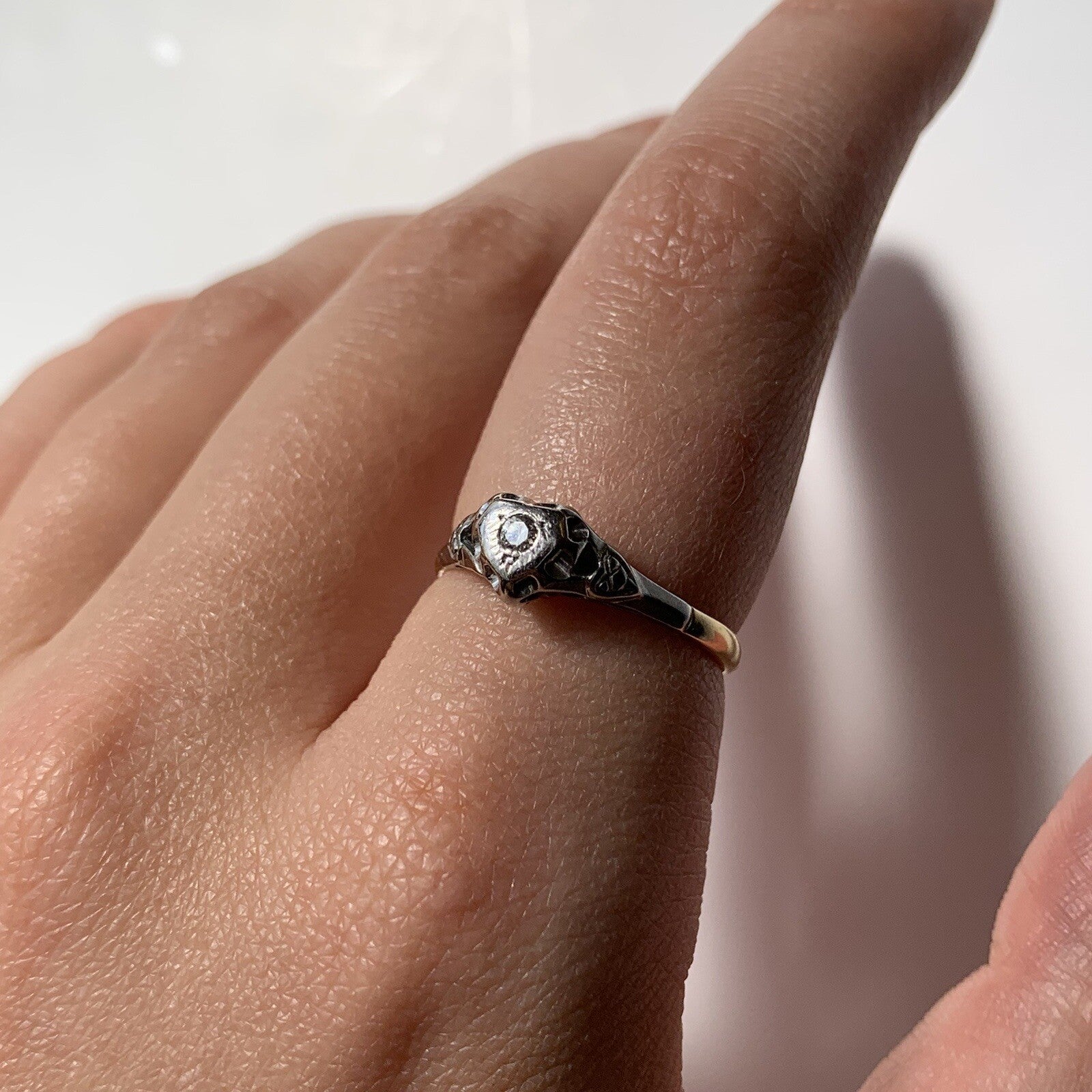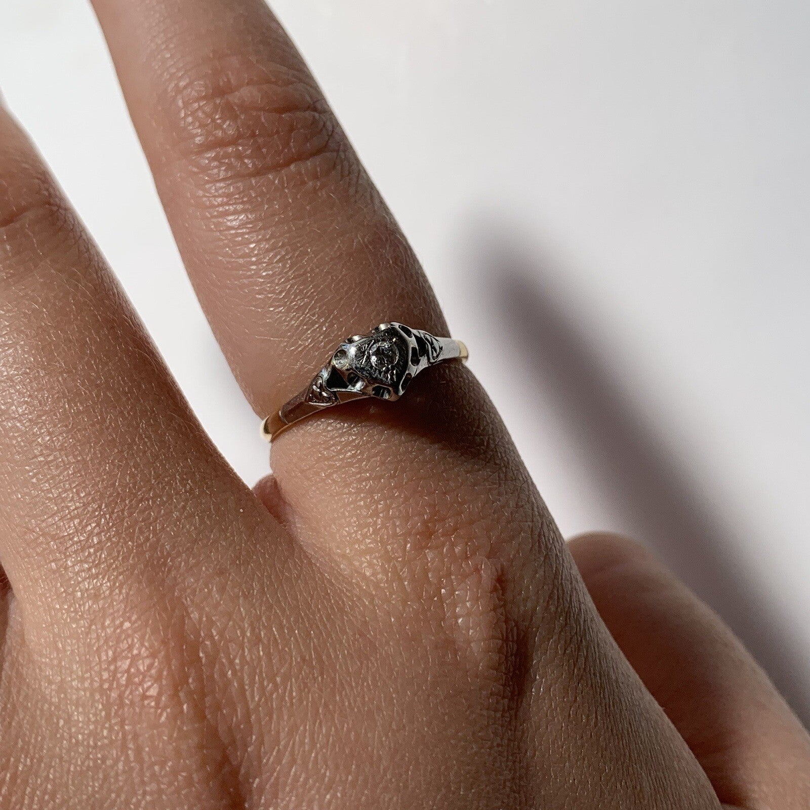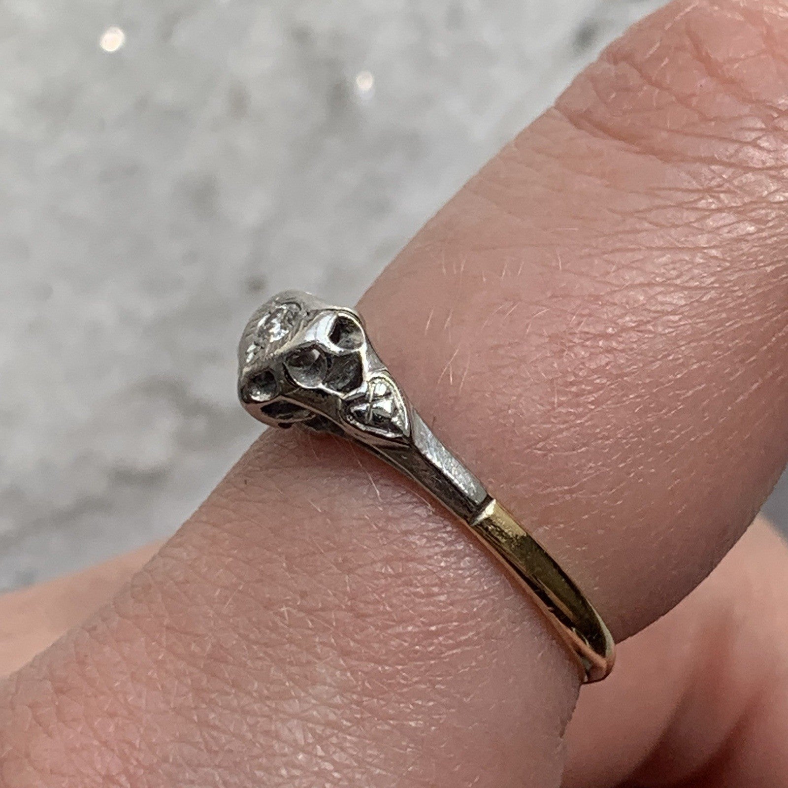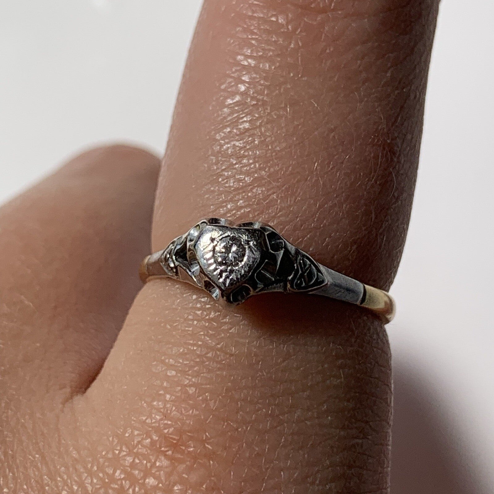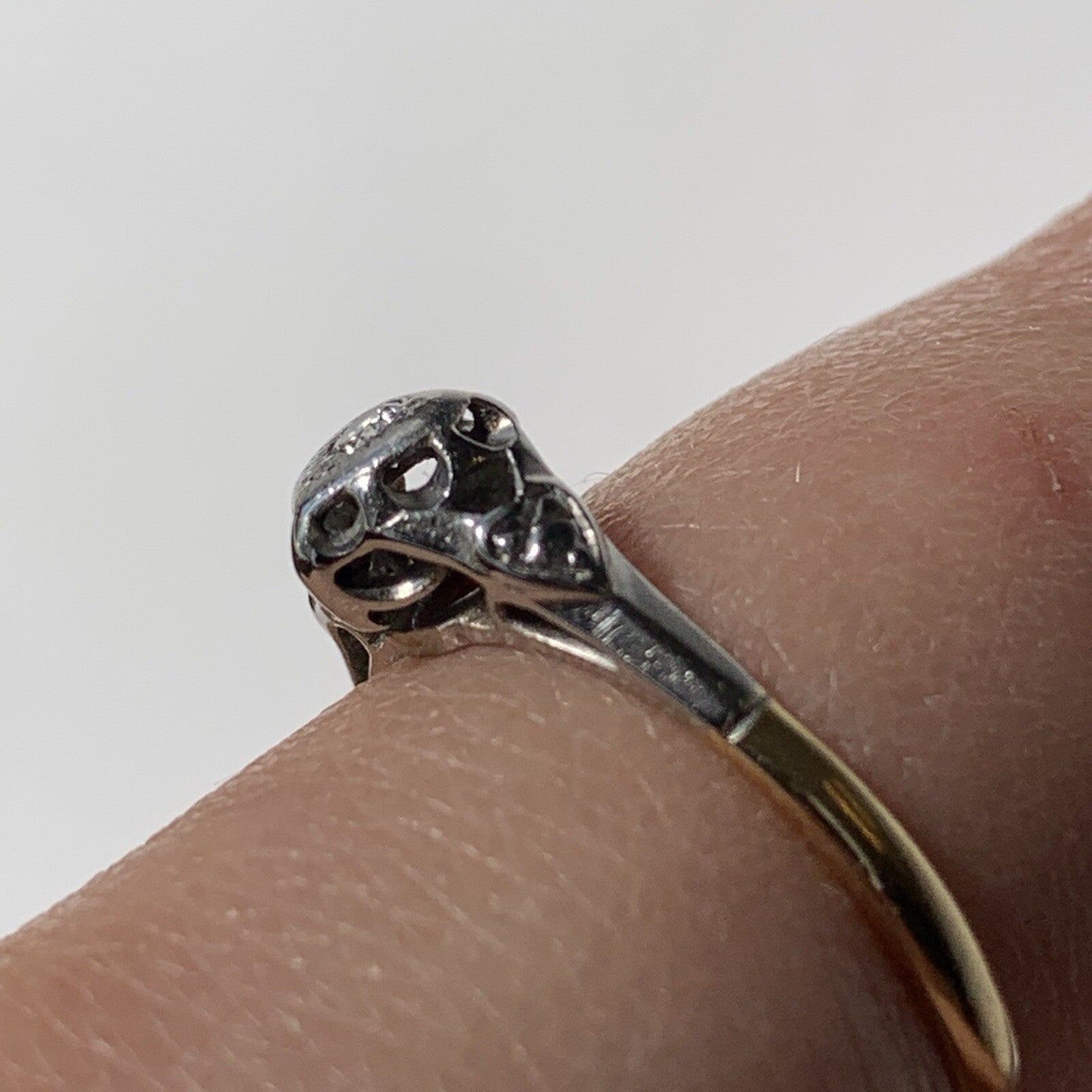 Diamond Heart Platinum Set Antique Solitaire Ring 18ct 750 Yellow Gold - Size O