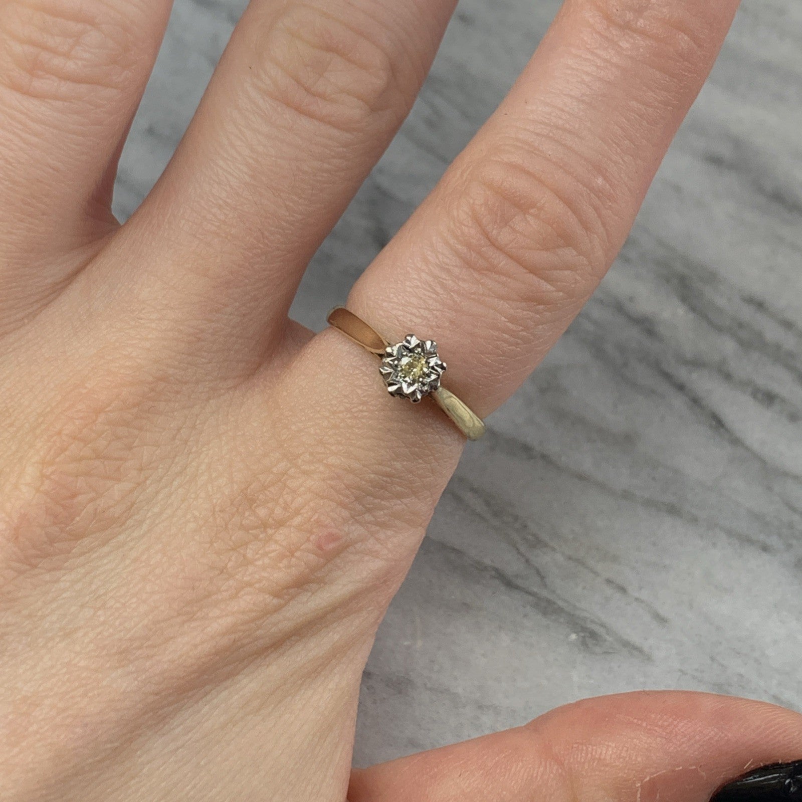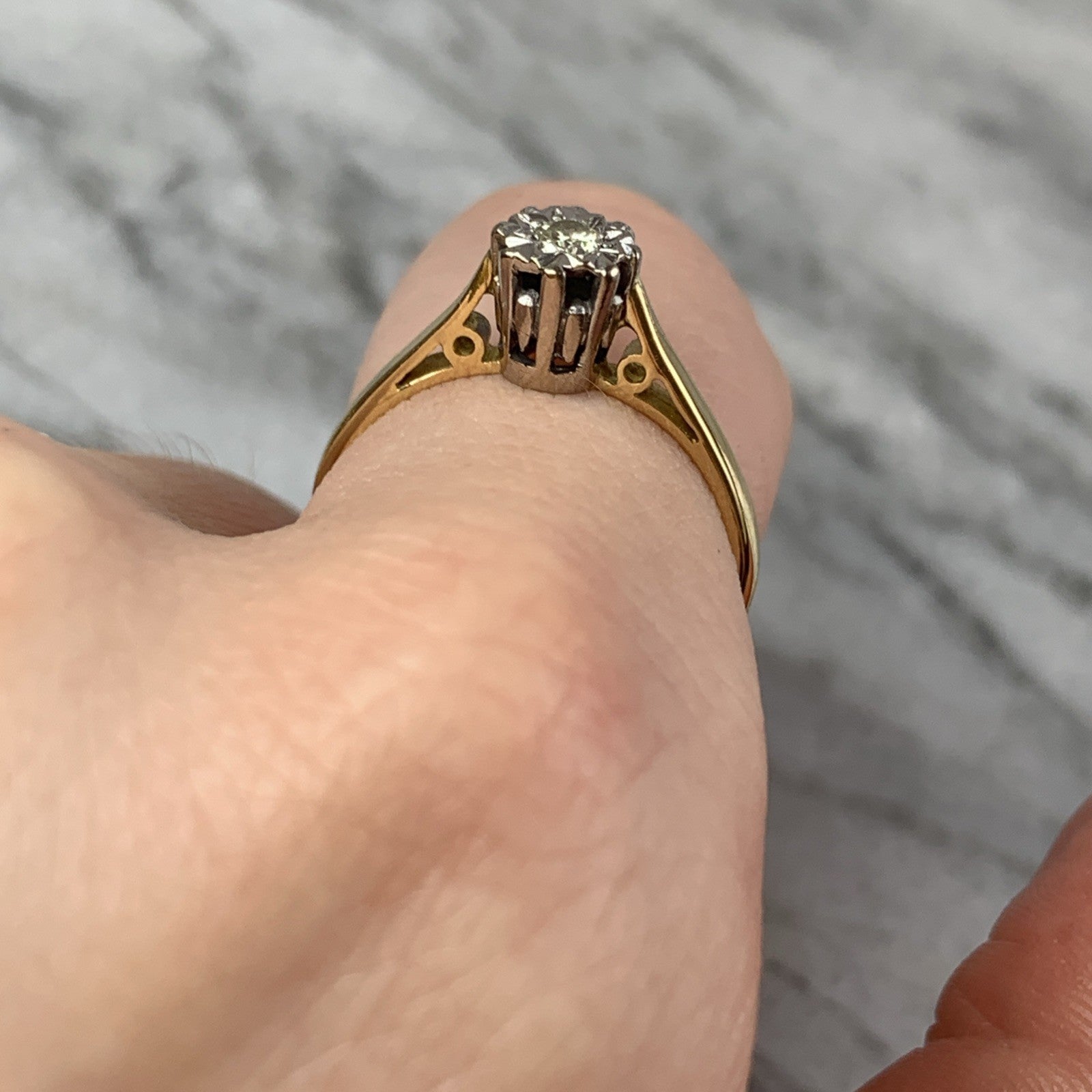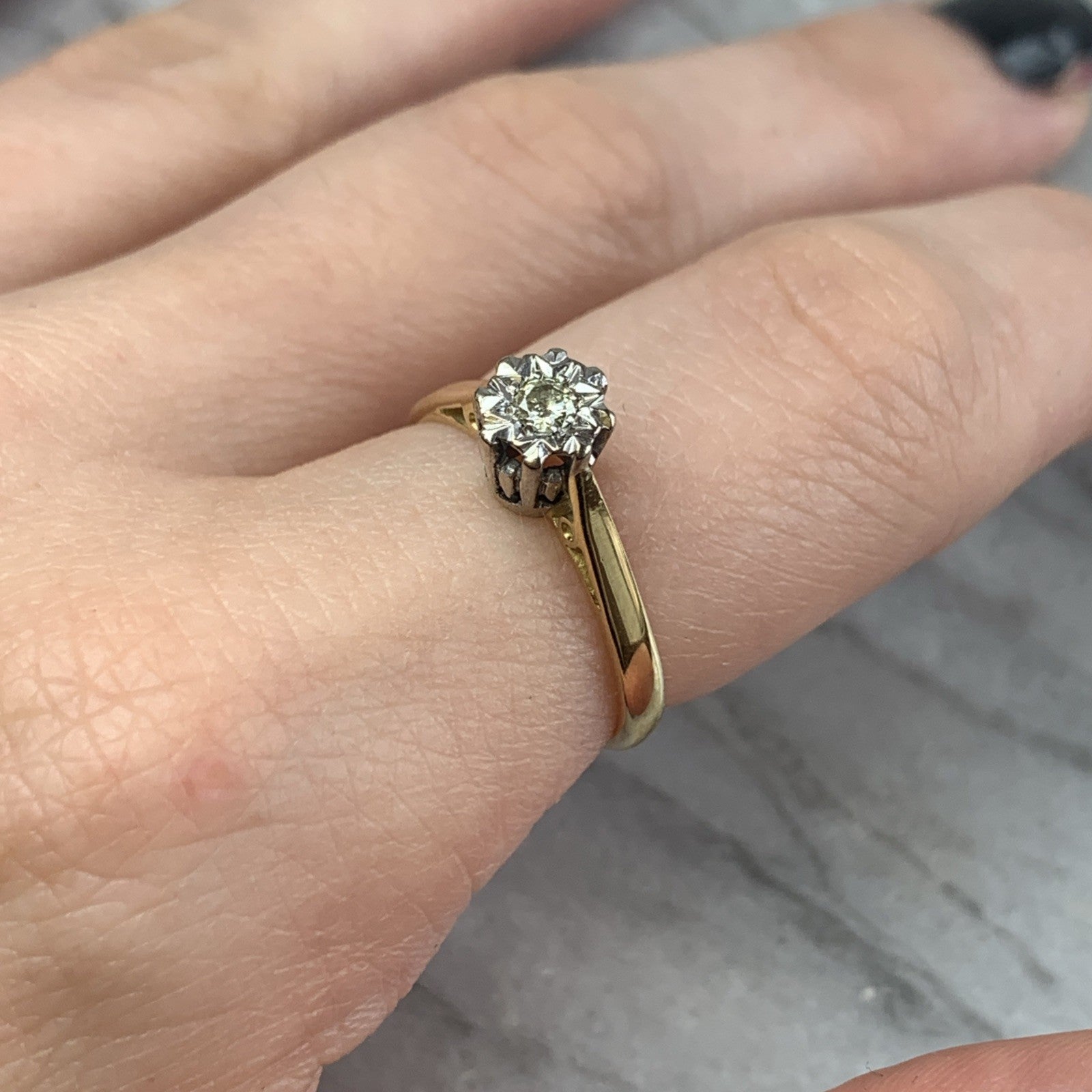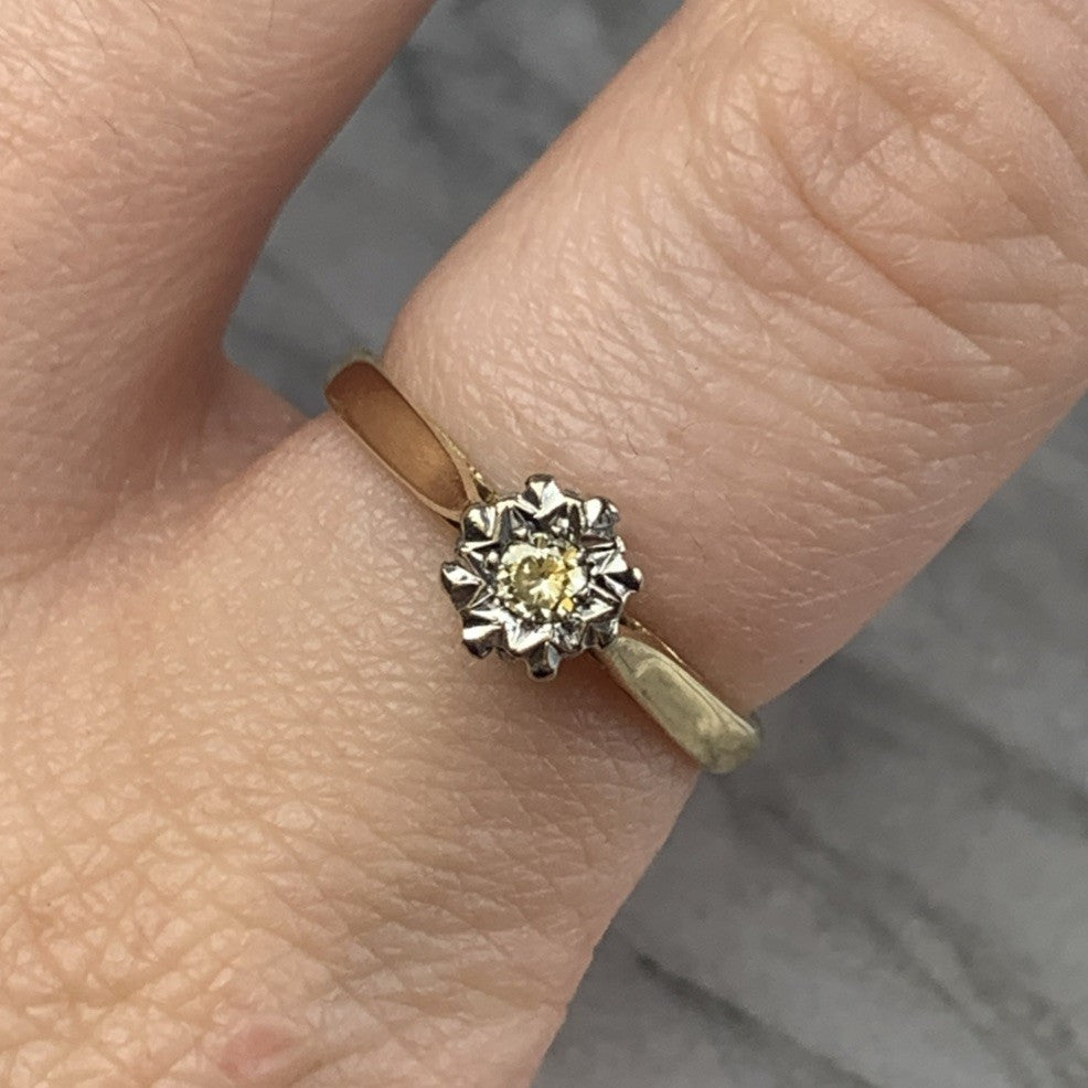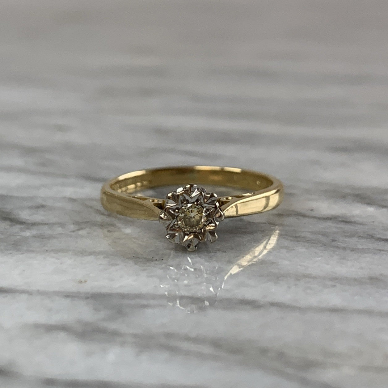 Diamond Illusion Set Solitaire Ring 18ct 750 Yellow Gold - Size M