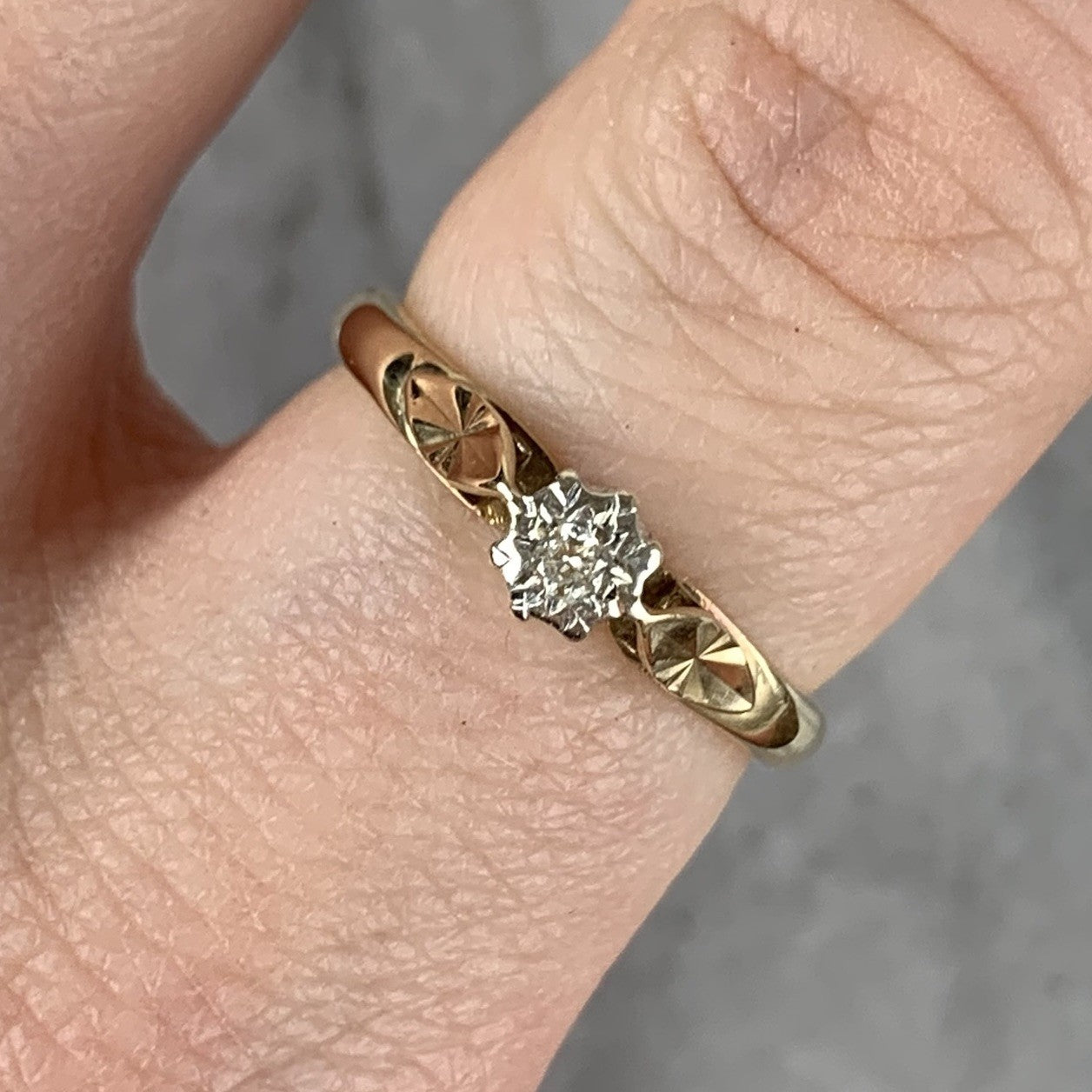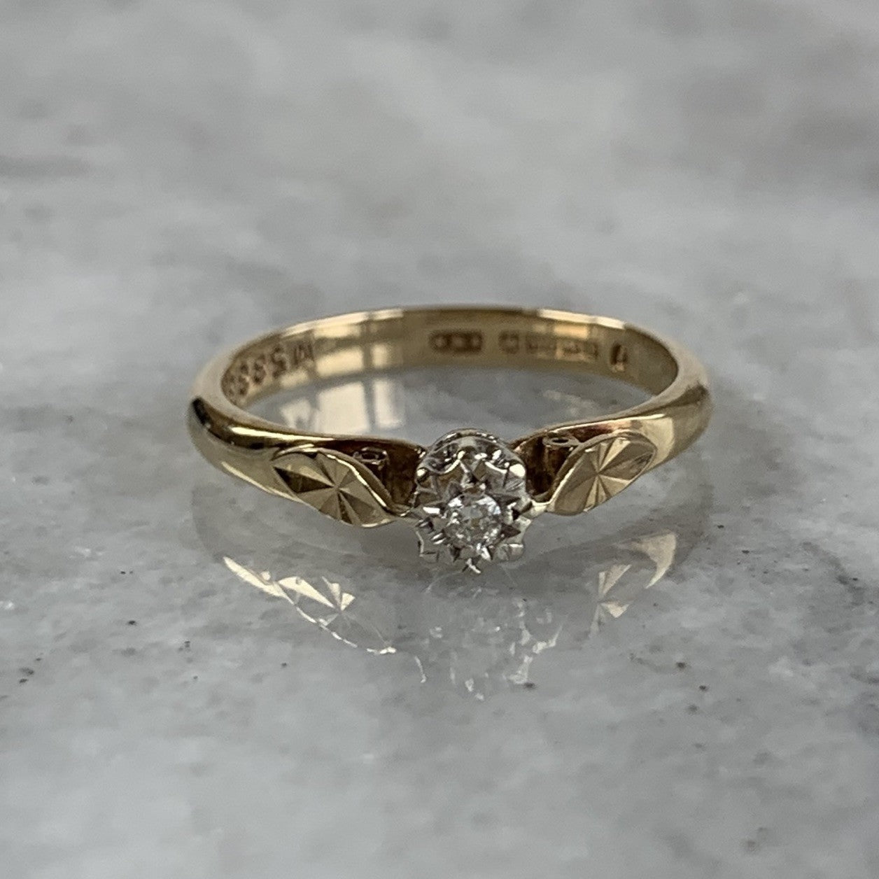Diamond Illusion Solitaire Shoulder Pattern Ring 9ct 375 Yellow Gold - Size N