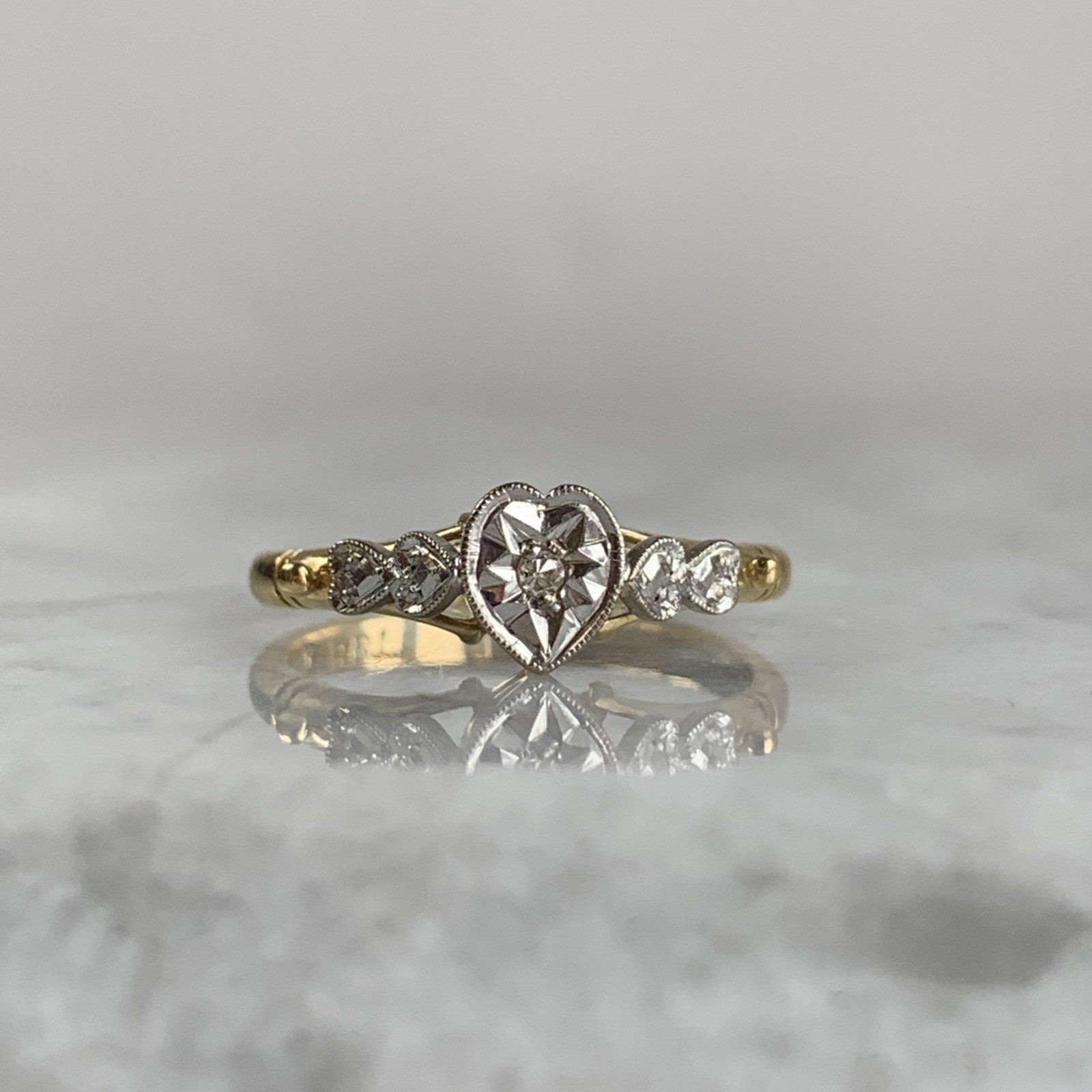 Diamond Love Heart Illusion Set Ring 18ct 750 Yellow Gold - Size M