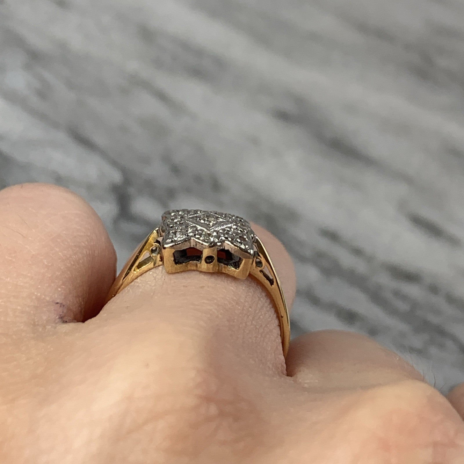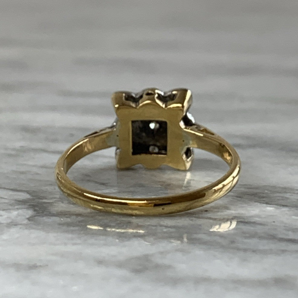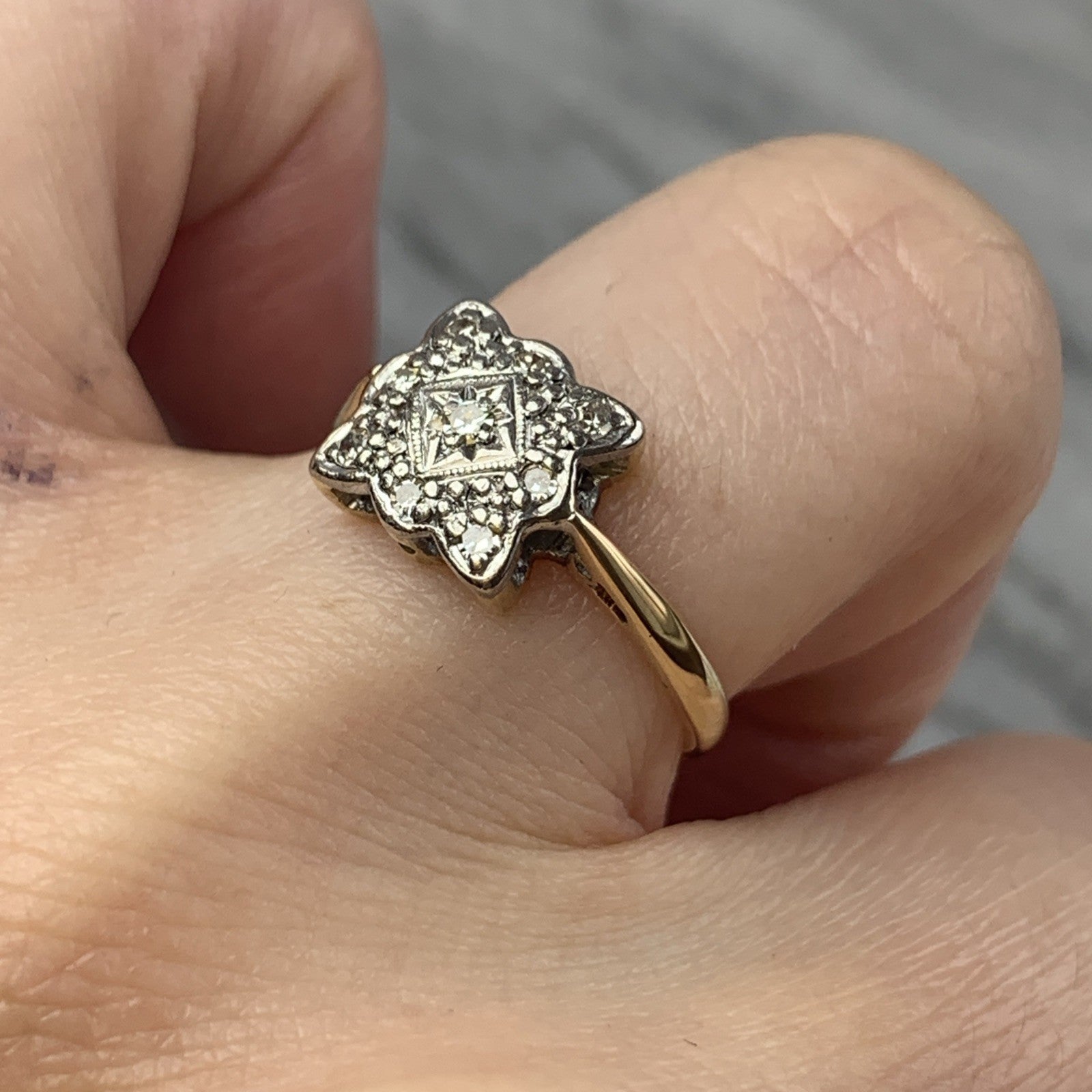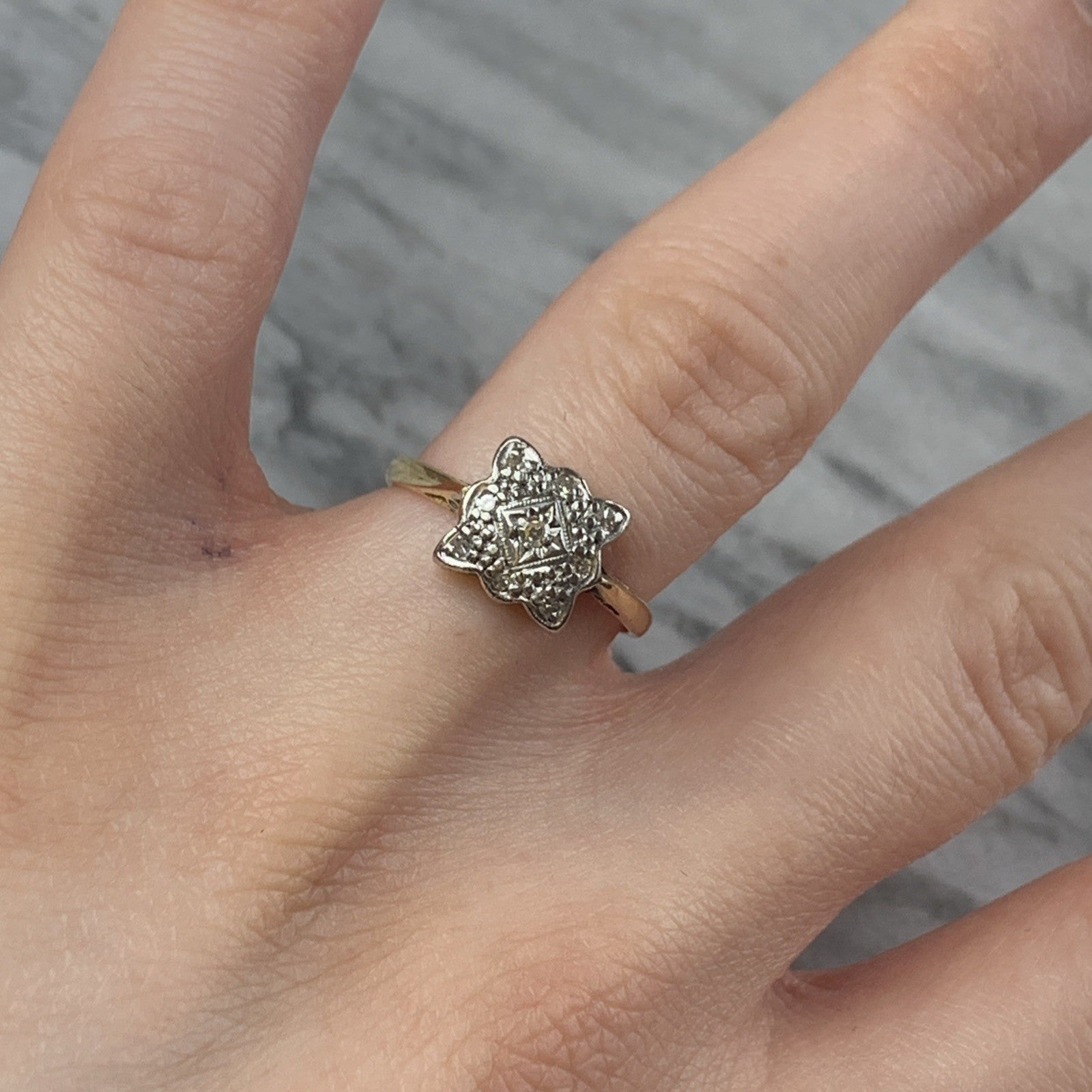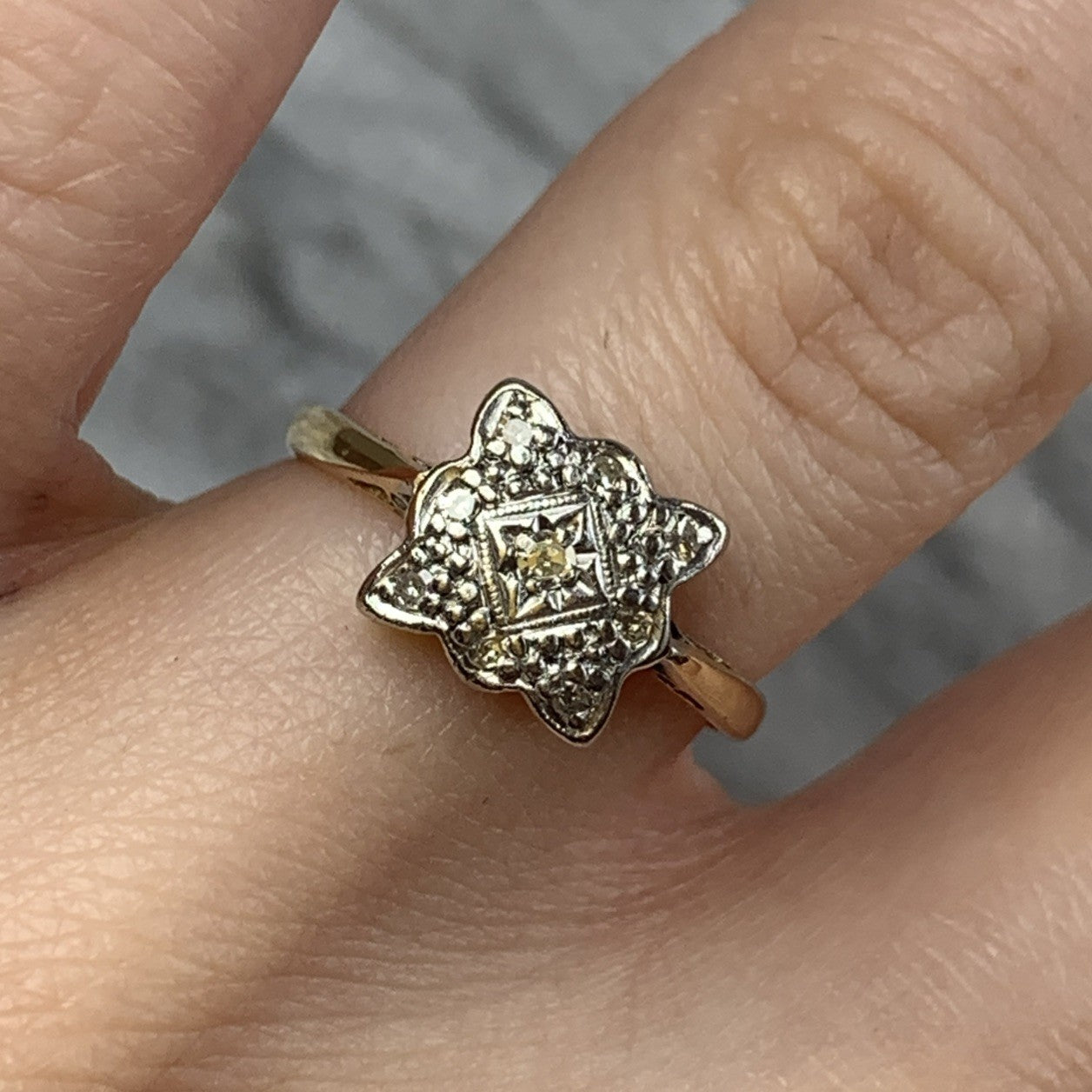 Diamond Platinum Set Floral Cluster Ring 18ct 750 Yellow Gold - Size K 1/2