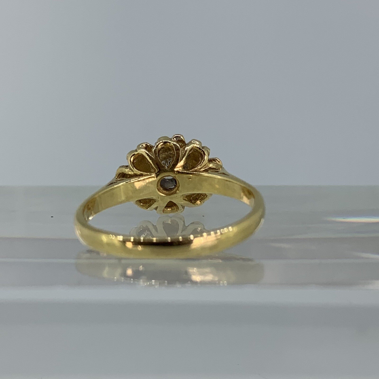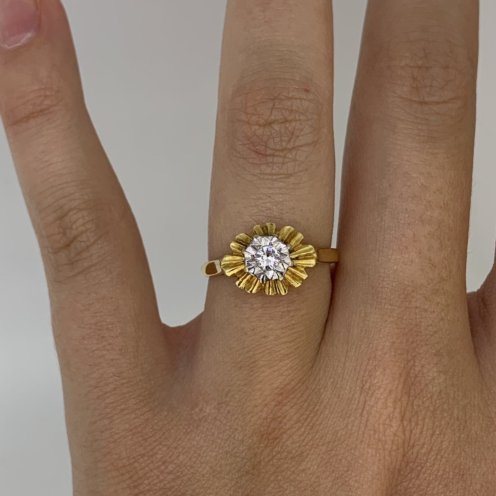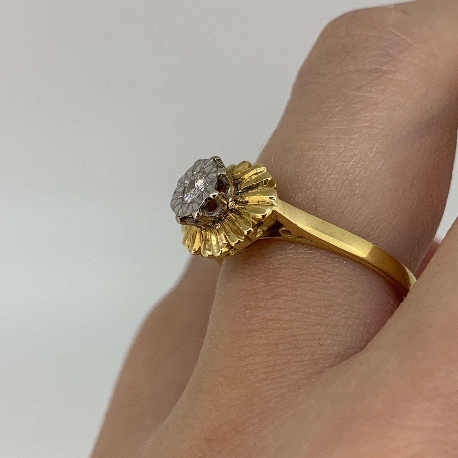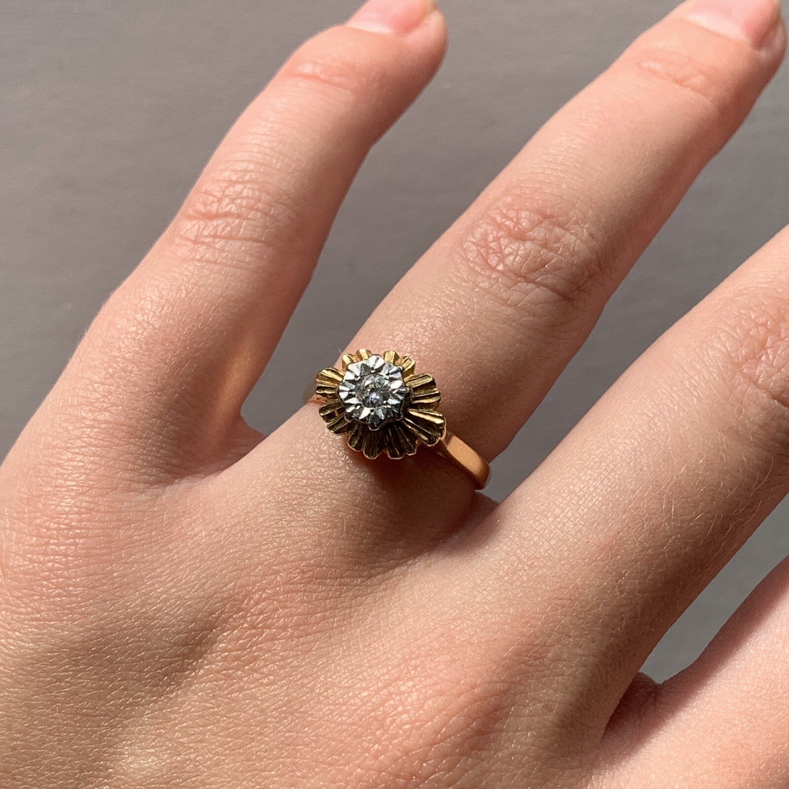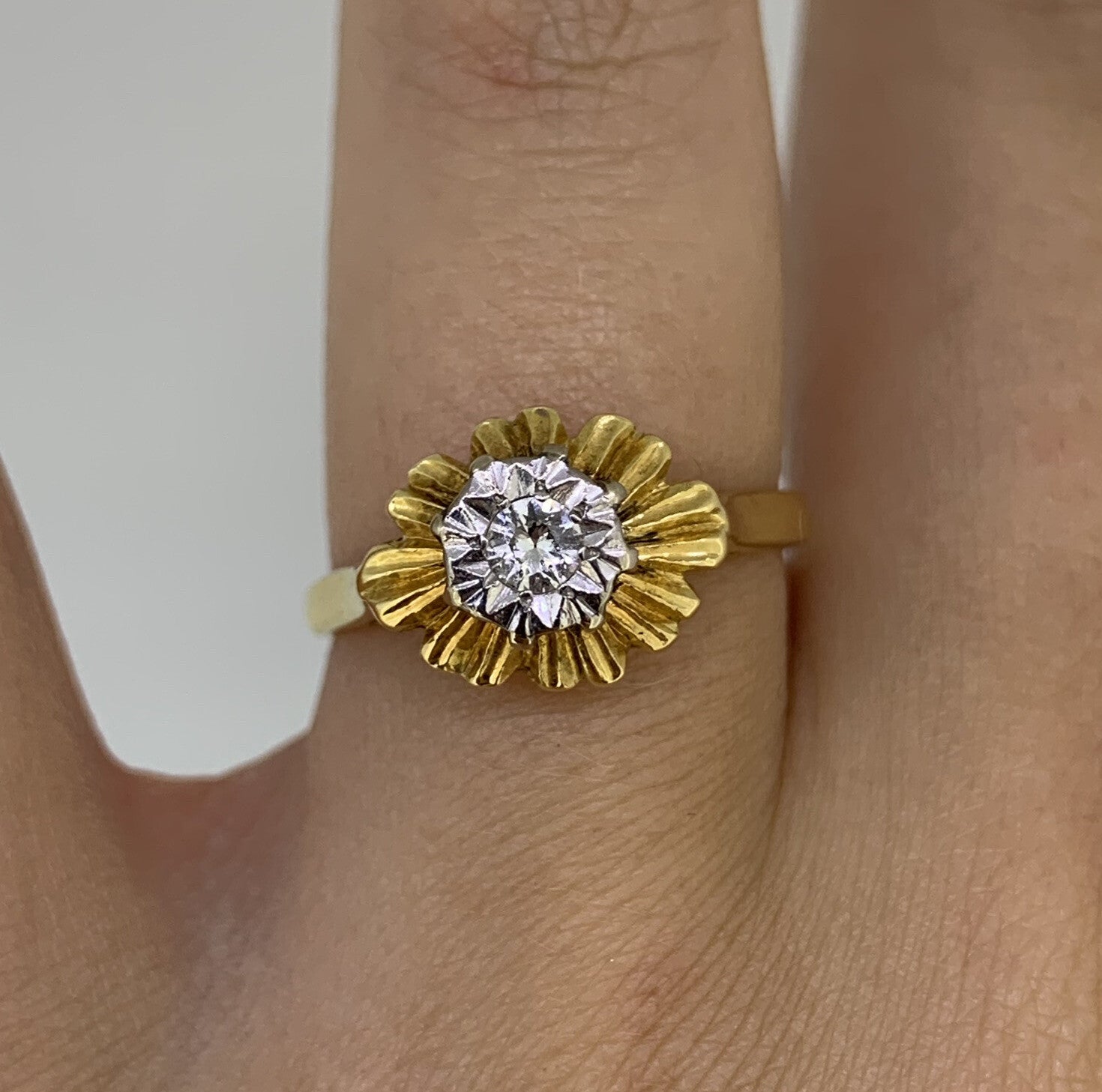 Diamond Ring 18ct Gold Retro Sunburst Unique Yellow Gold & Platinum - Size M