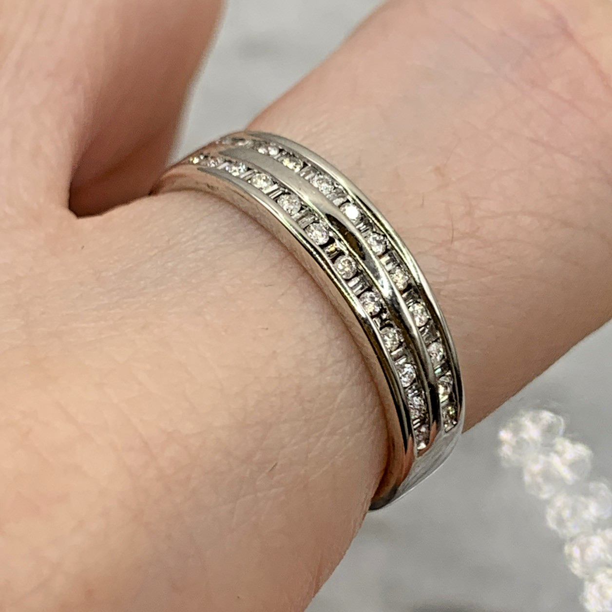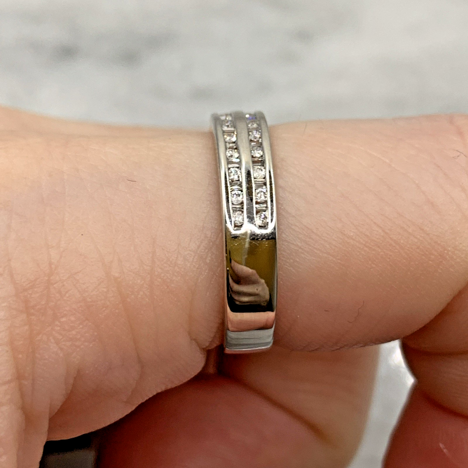 Diamond Ring 9 ct Gold Channel Set Band White Gold - Size M 1/2