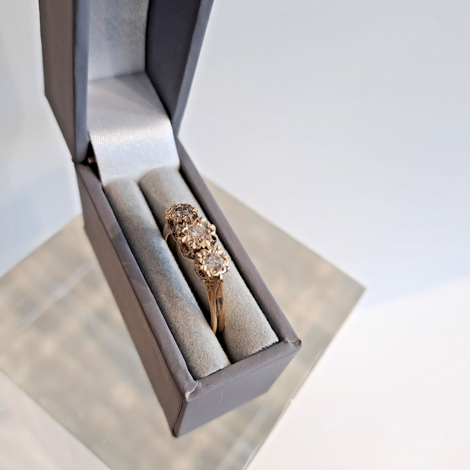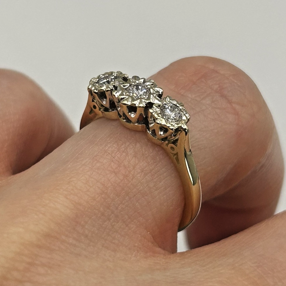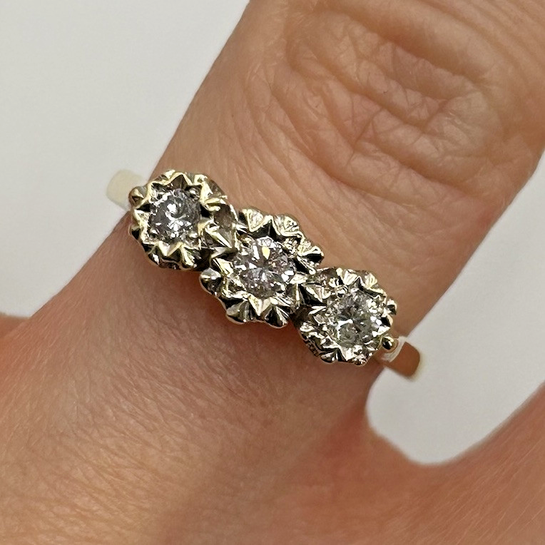 Diamond Ring 9 ct Gold Trilogy Illusion Set - Size L