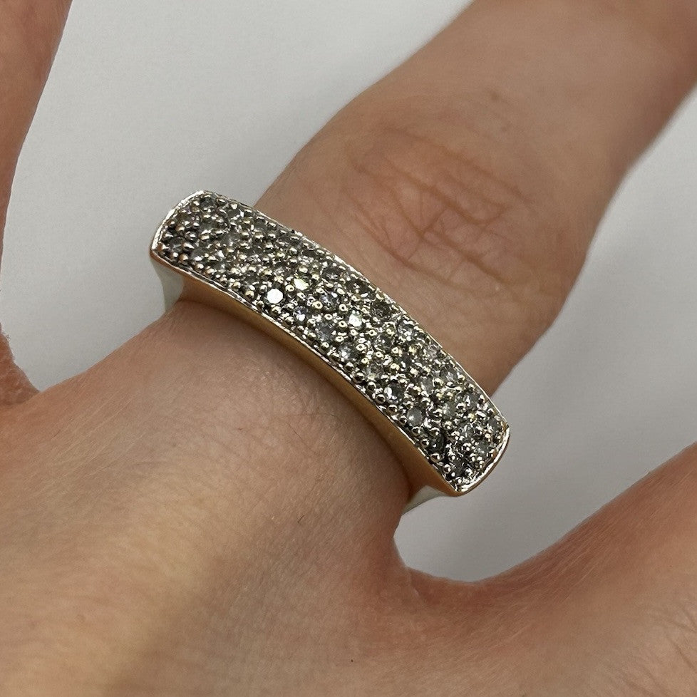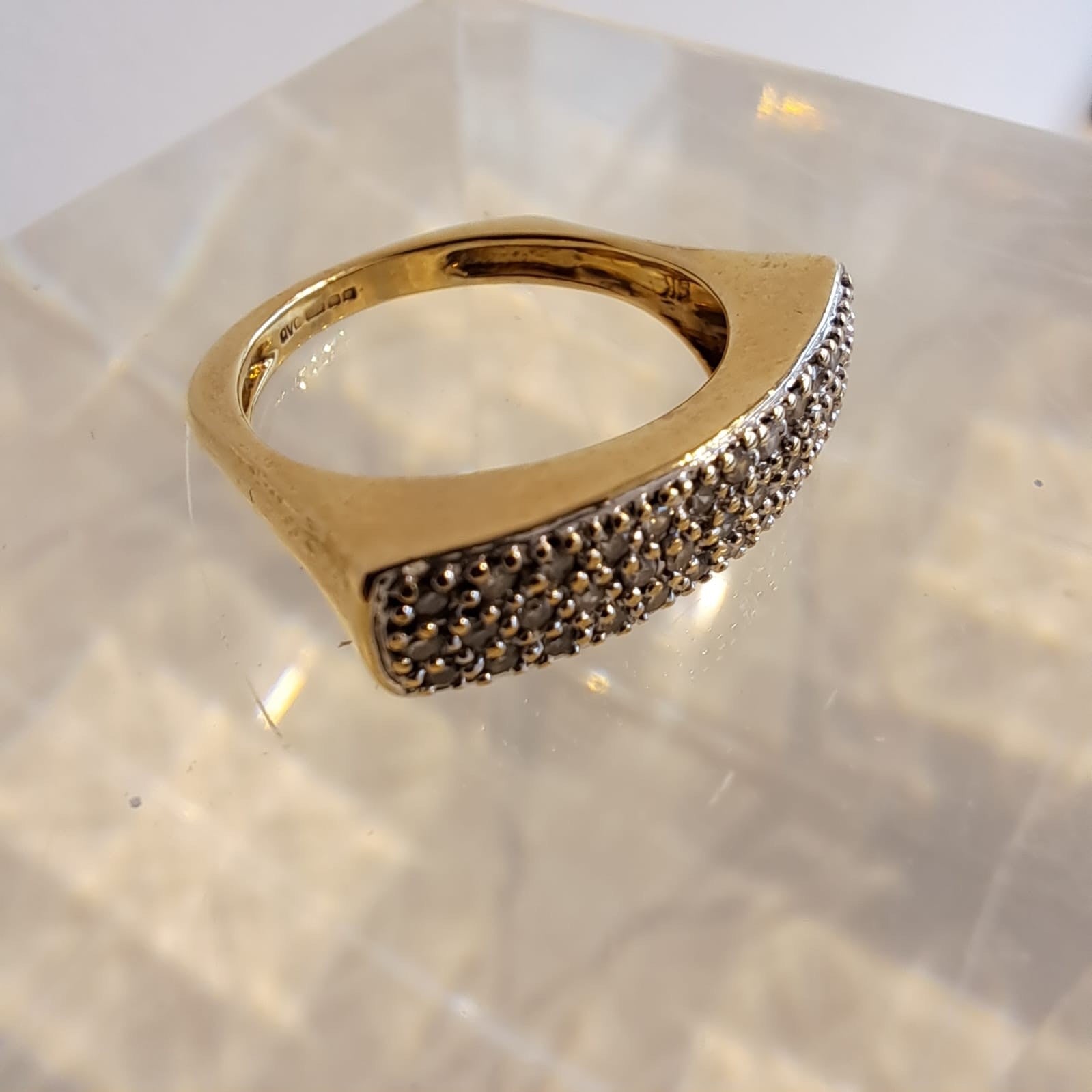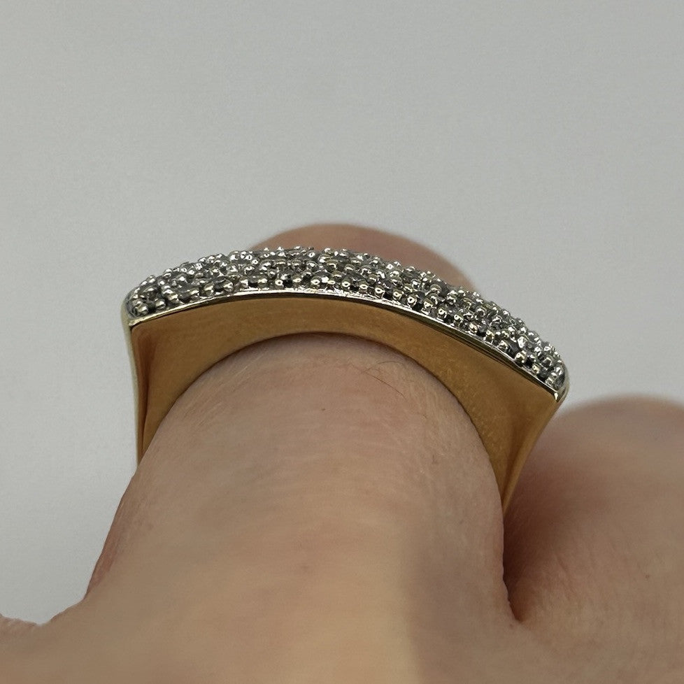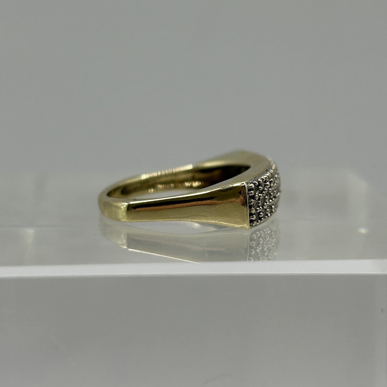 Diamond Ring 9 ct Gold Wide Set Pave Square Shank Band - Size K