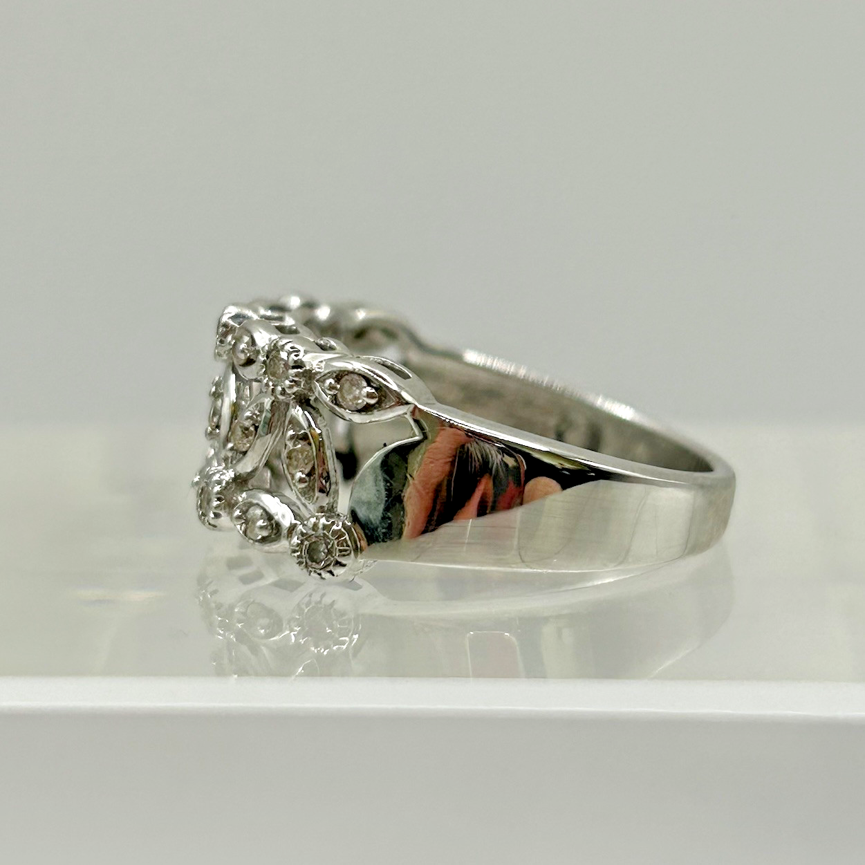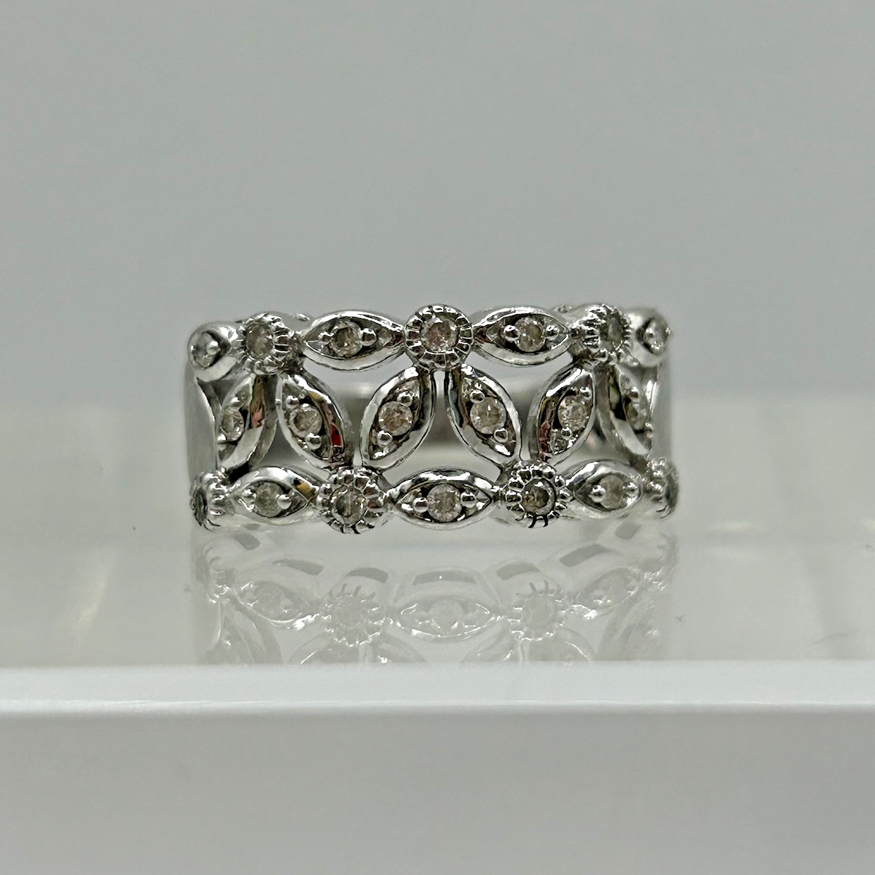 Diamond Ring 9ct Gold Floral Design Band in White Gold - Size M