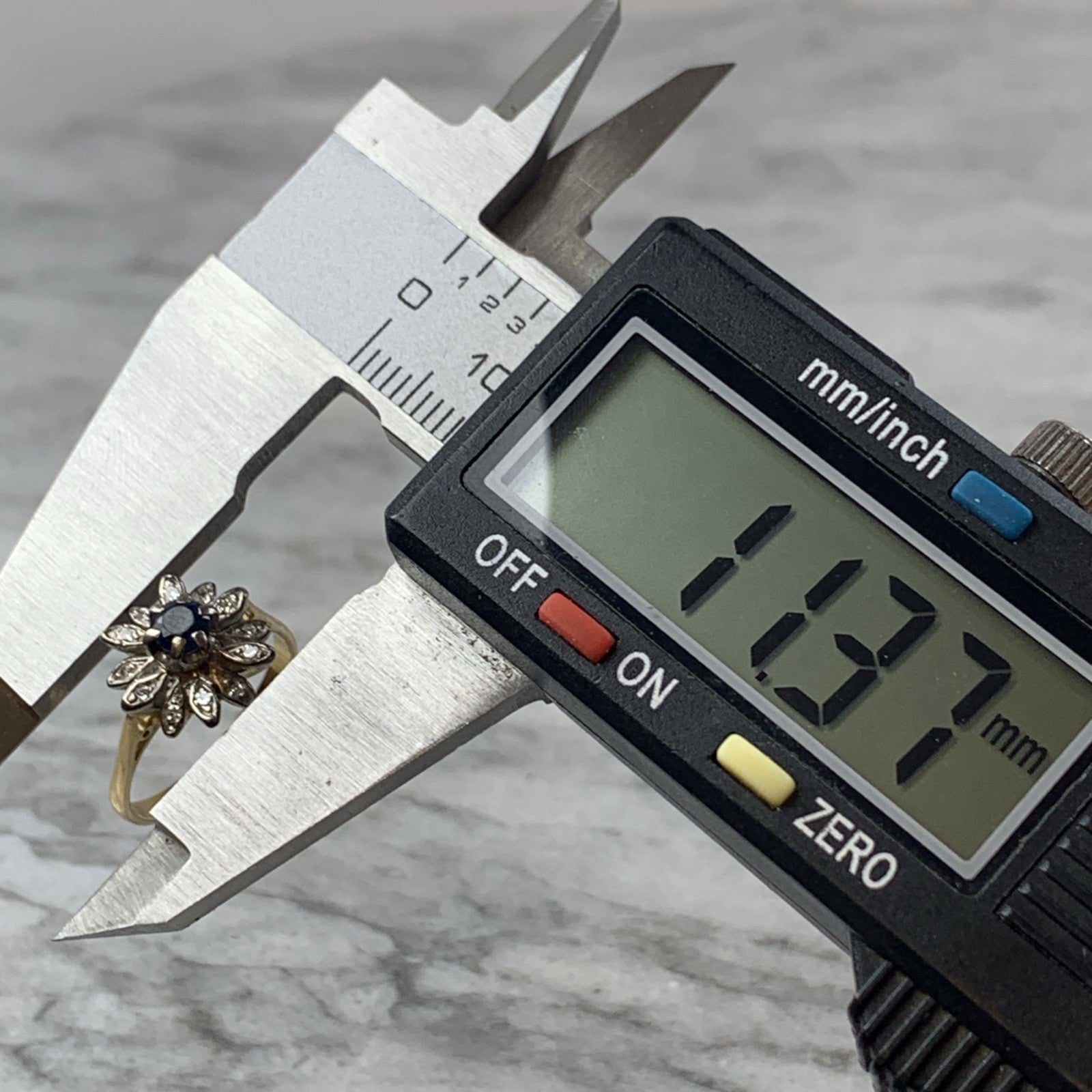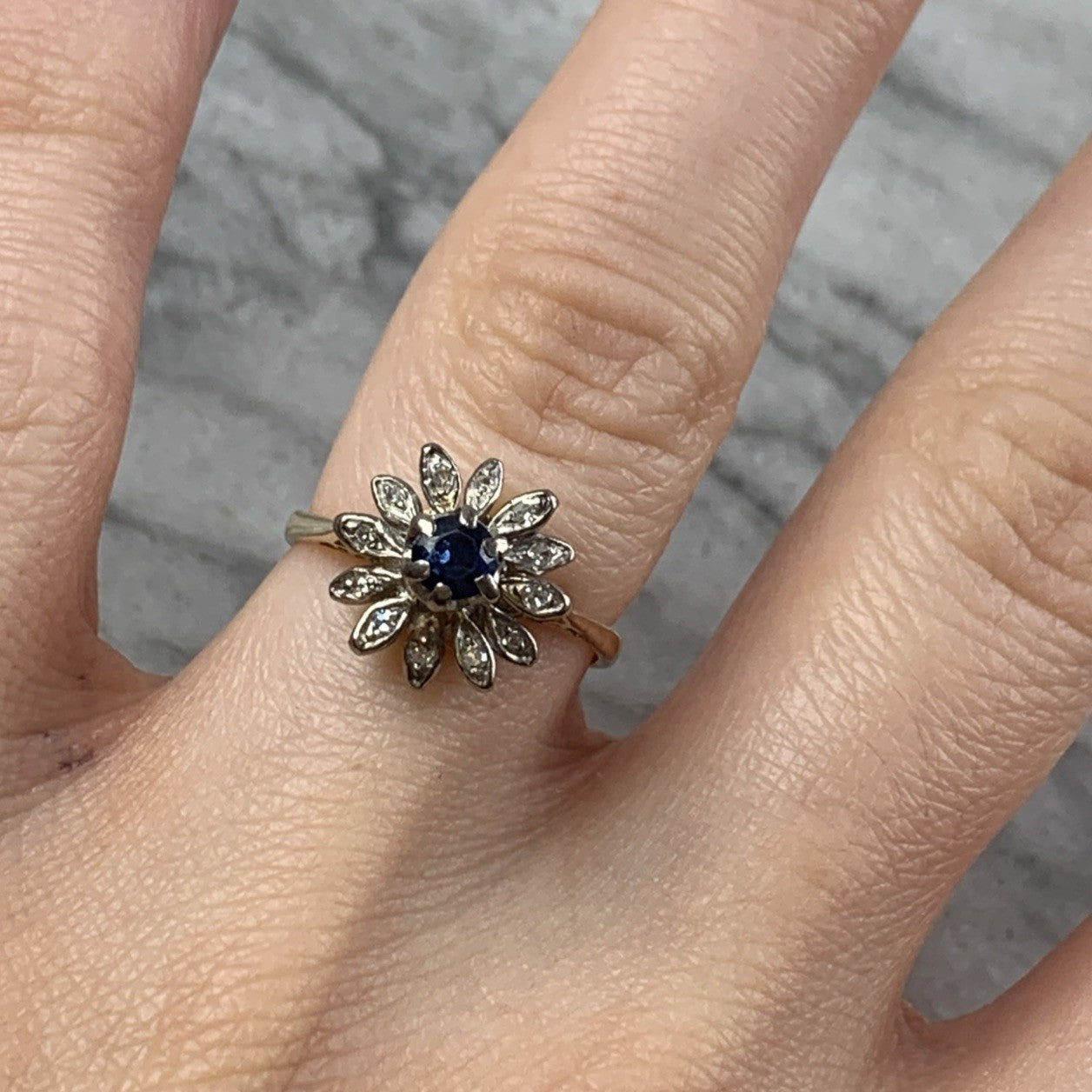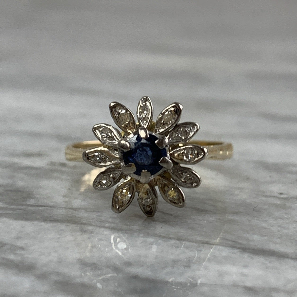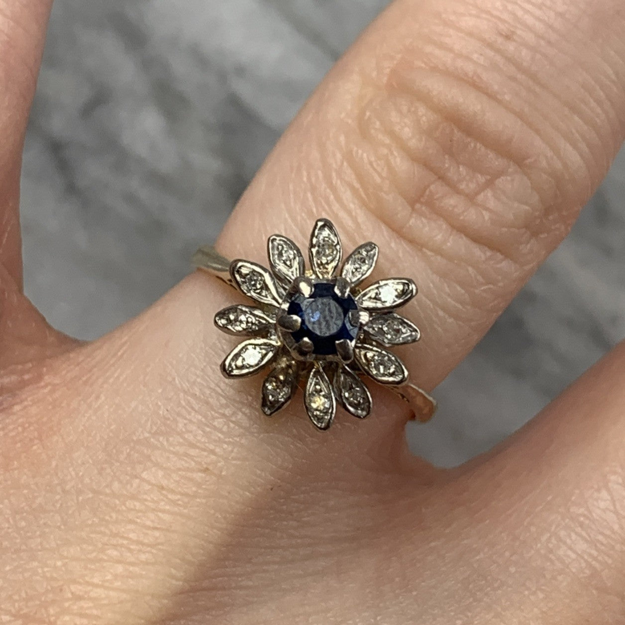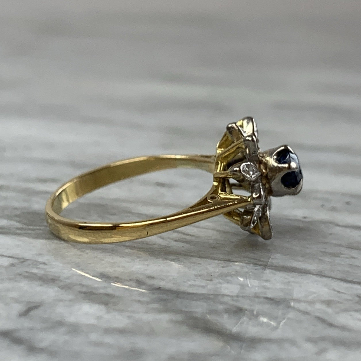 Diamond & Sapphire Flower Cluster Ring 18ct 750 Yellow Gold - Size J
