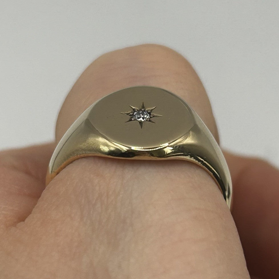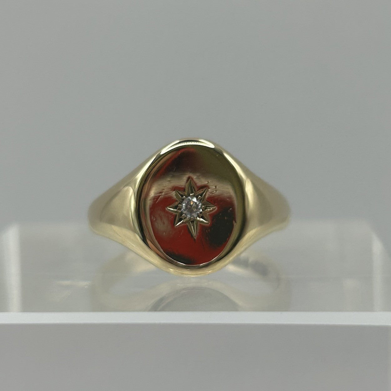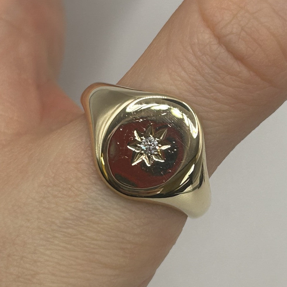 Diamond Signet Ring 9 ct Gold with Starburst - Size V