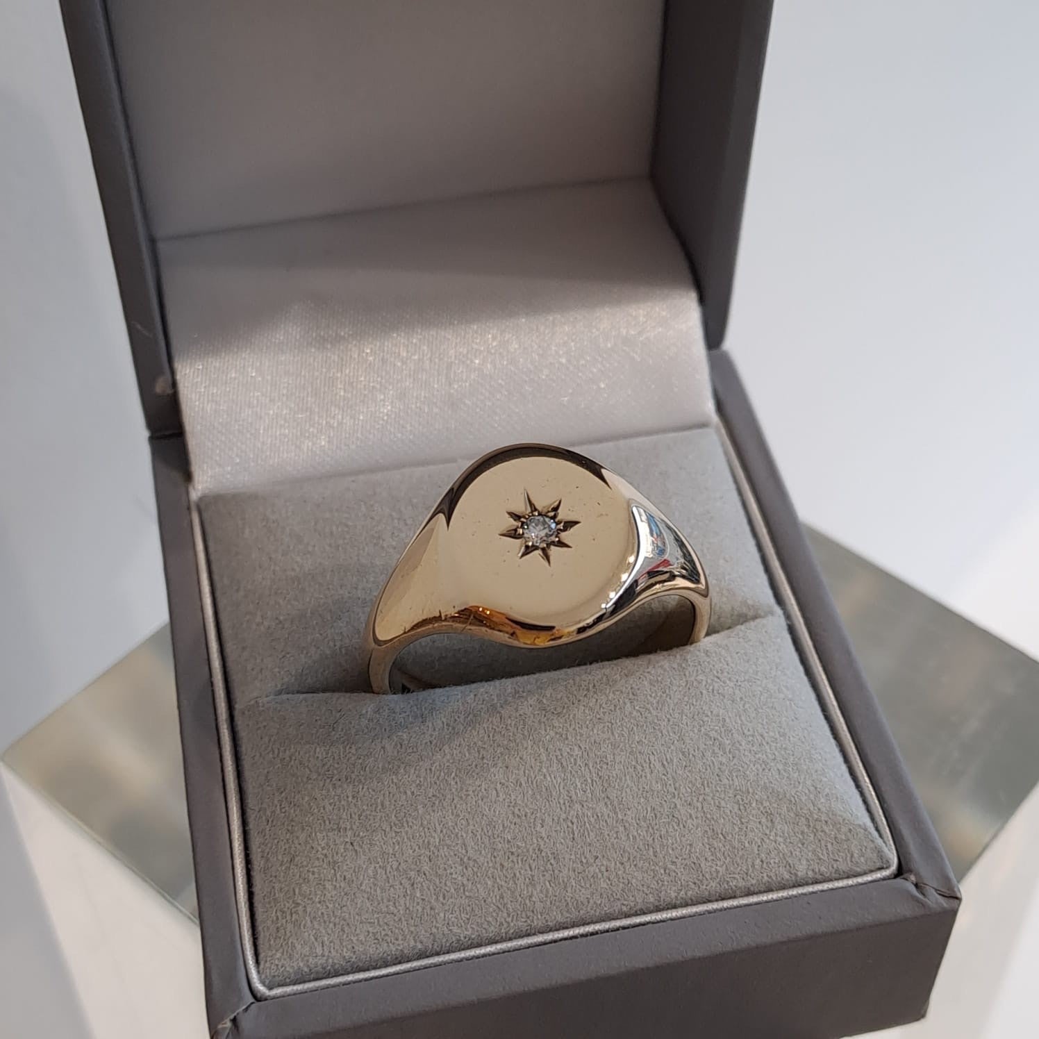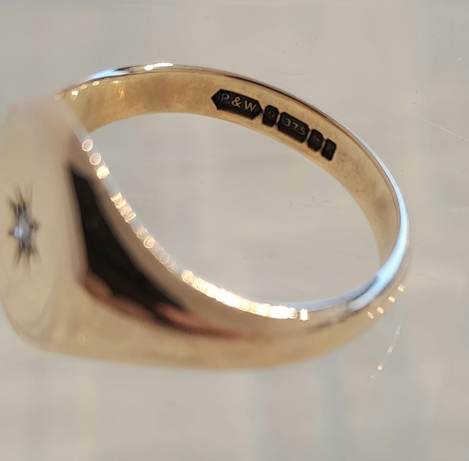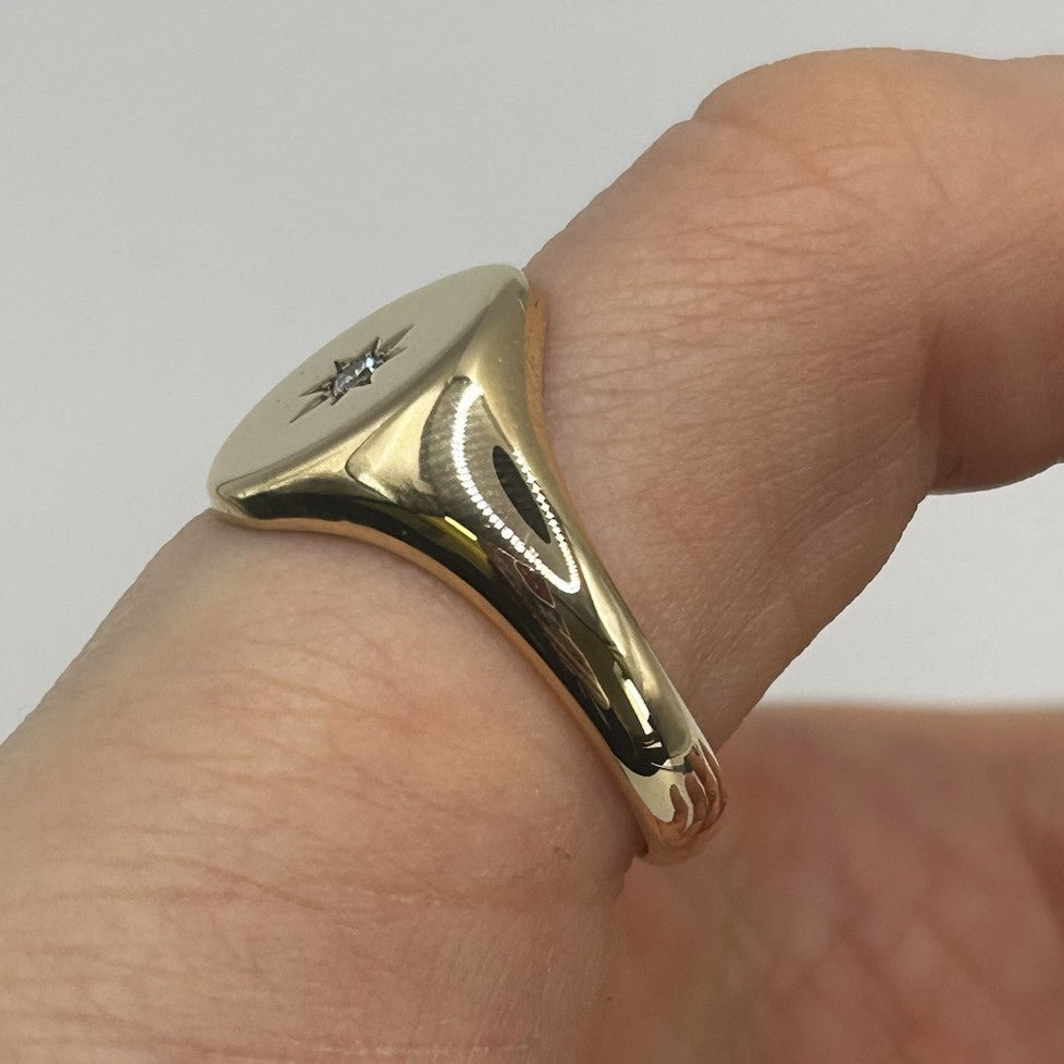 Diamond Signet Ring 9 ct Gold with Starburst - Size V