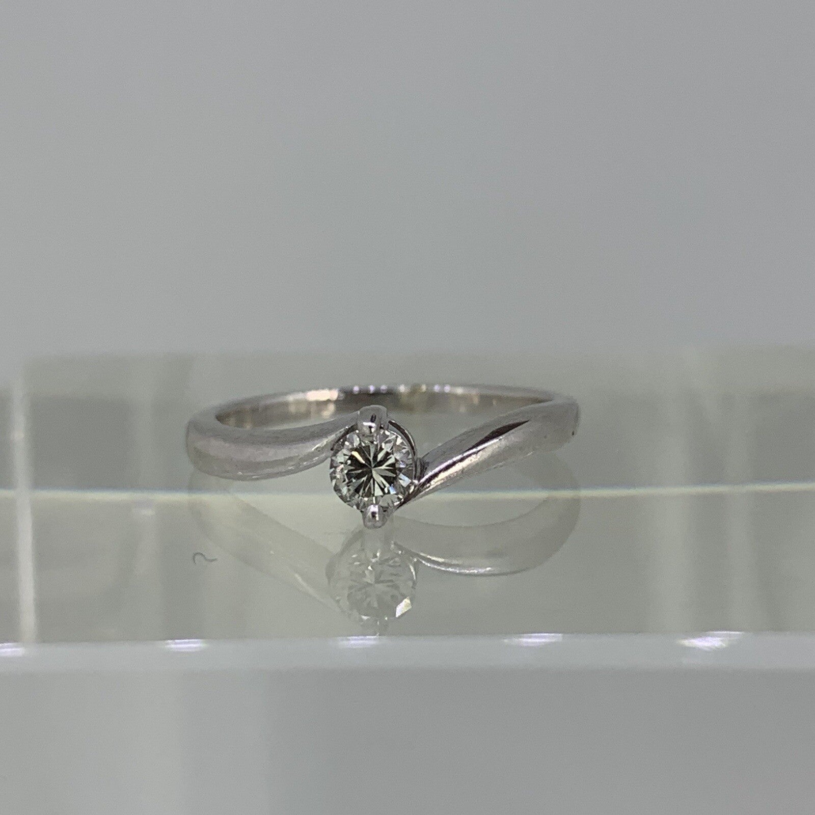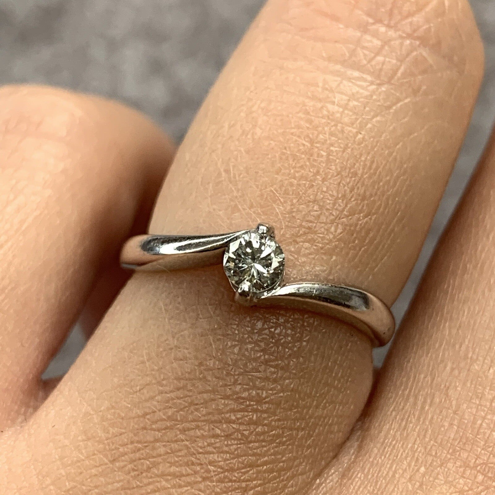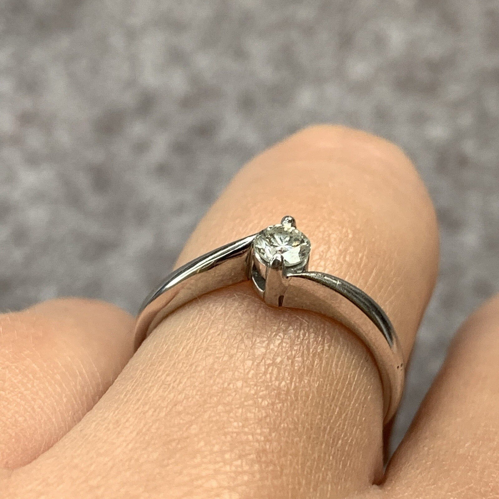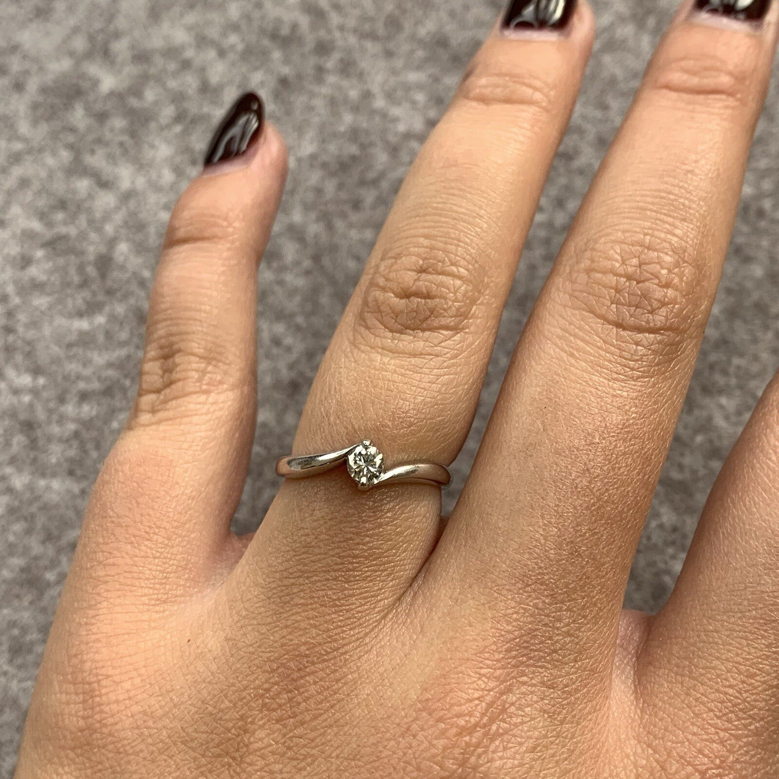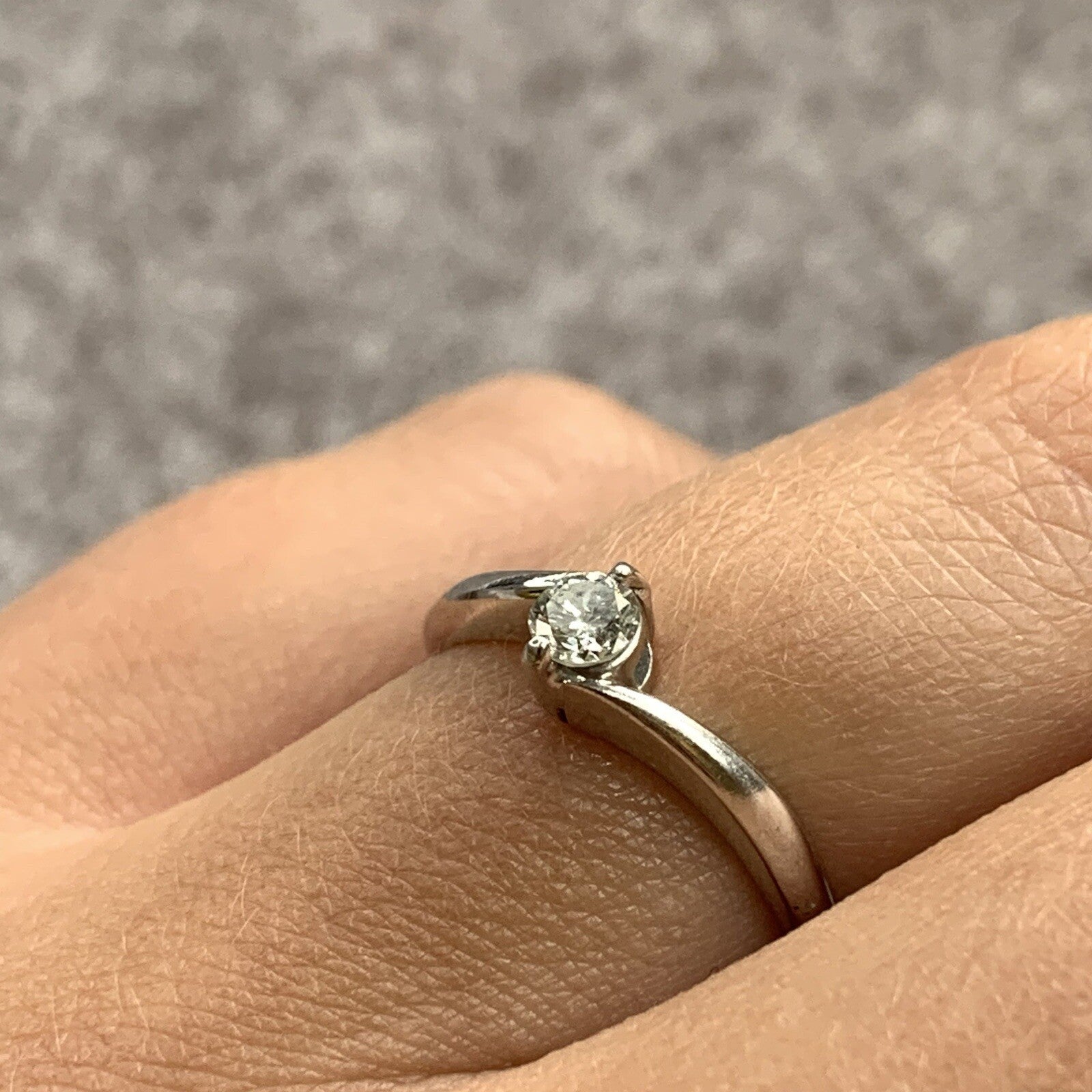 Diamond Solitaire .17ct Engagement Bypass Ring 9ct 375 White Gold - Size I 1/2