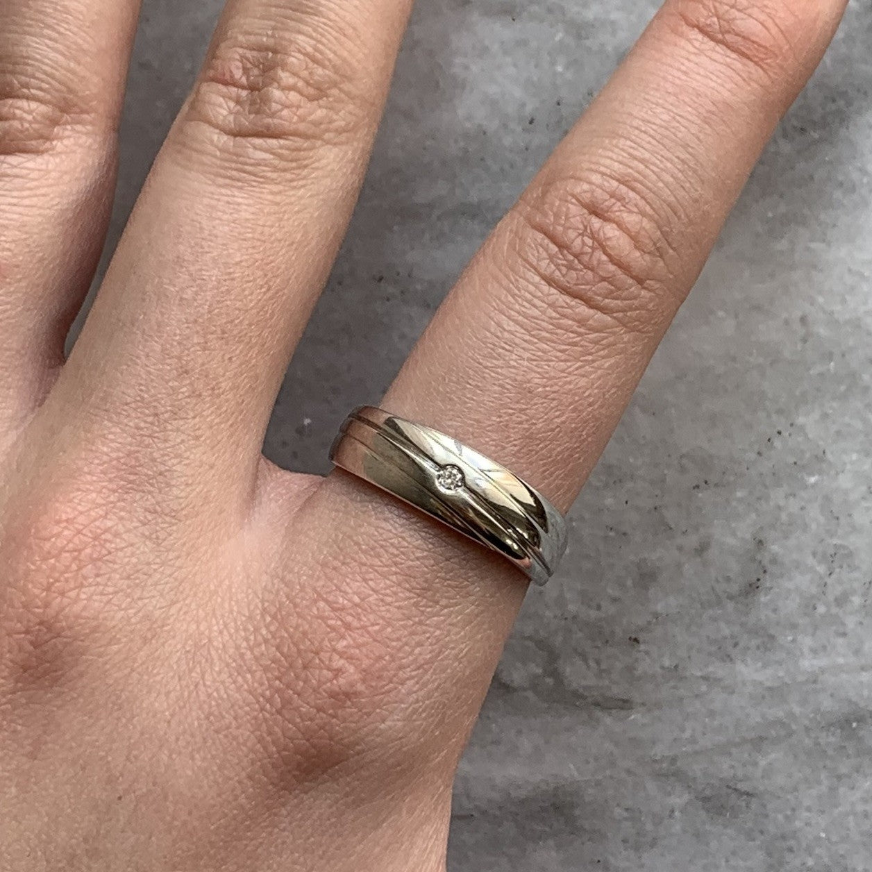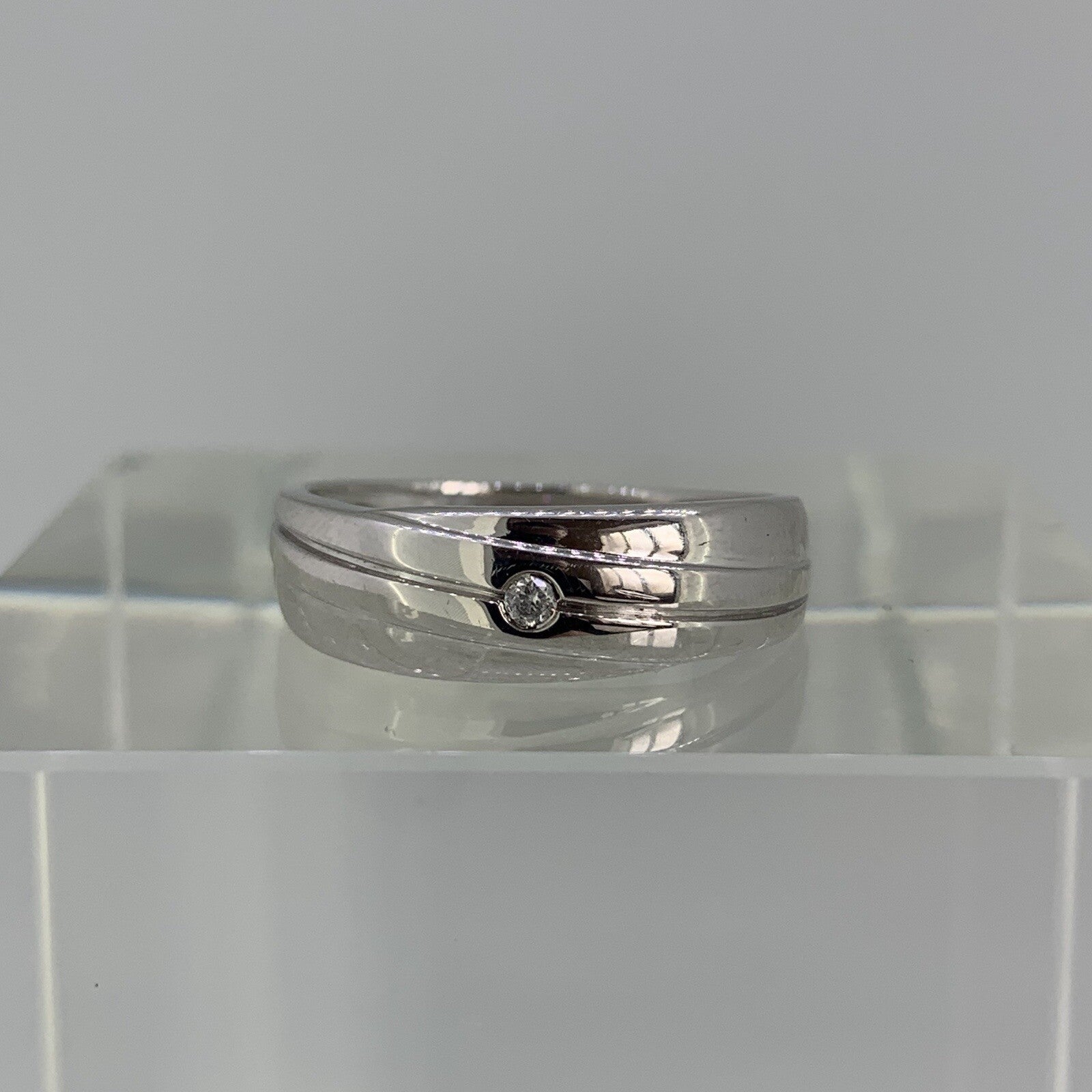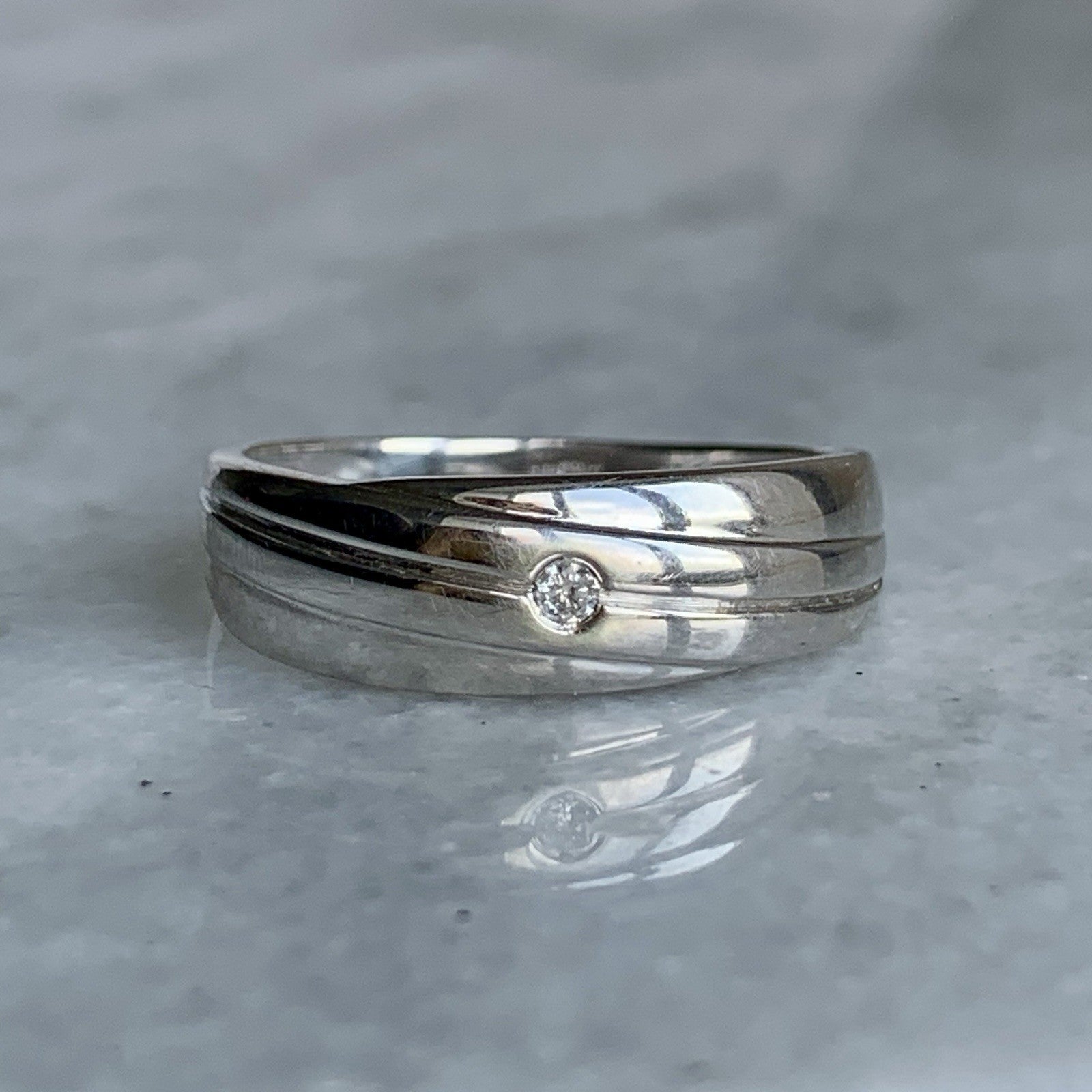 A beautiful band ring featuring a solitaire natural diamond.