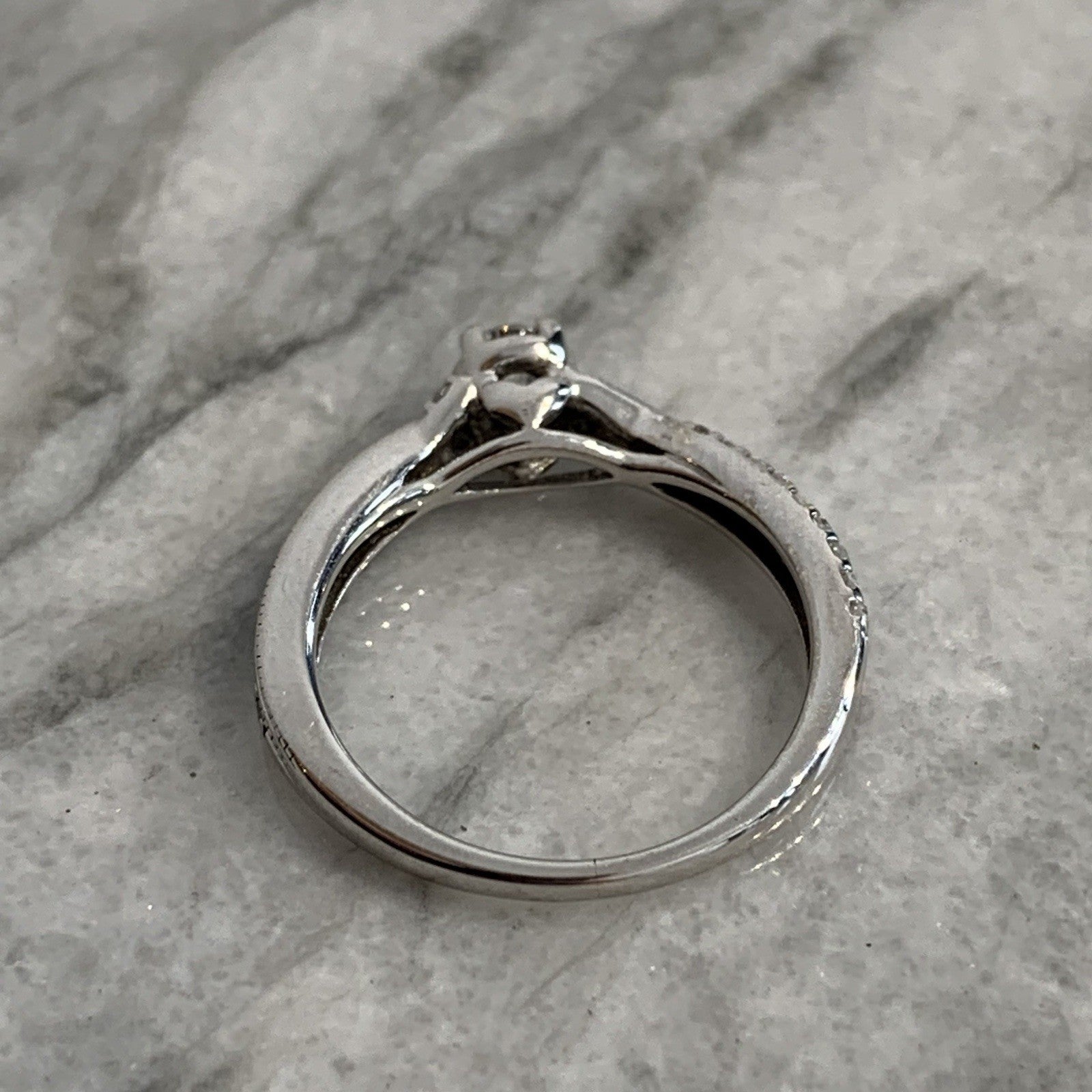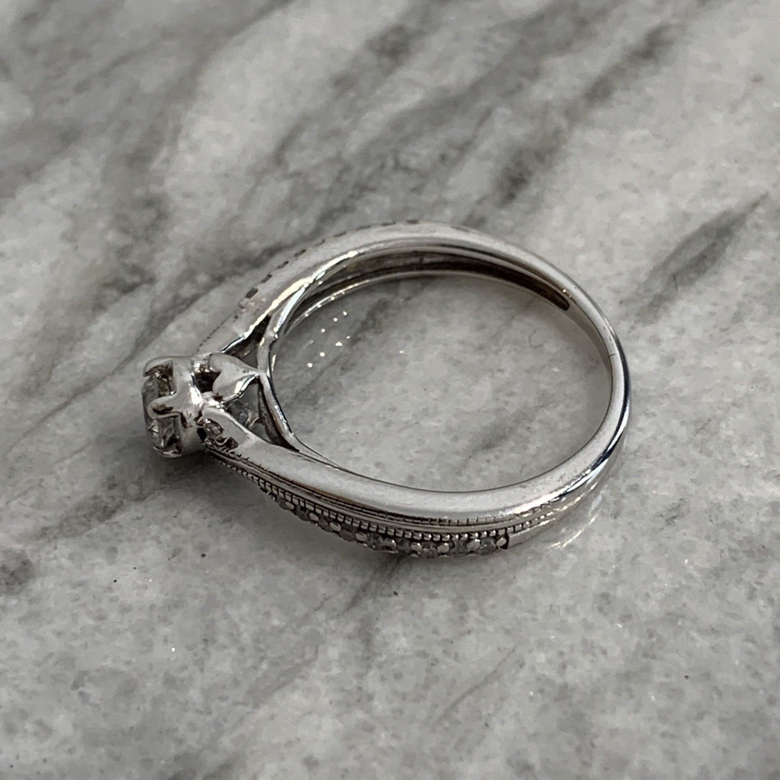 Diamond Solitaire Milgrain Engagement Style Ring 9ct 375 White Gold - Size J 1/2