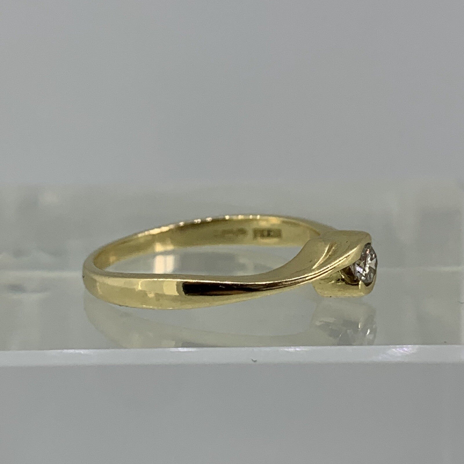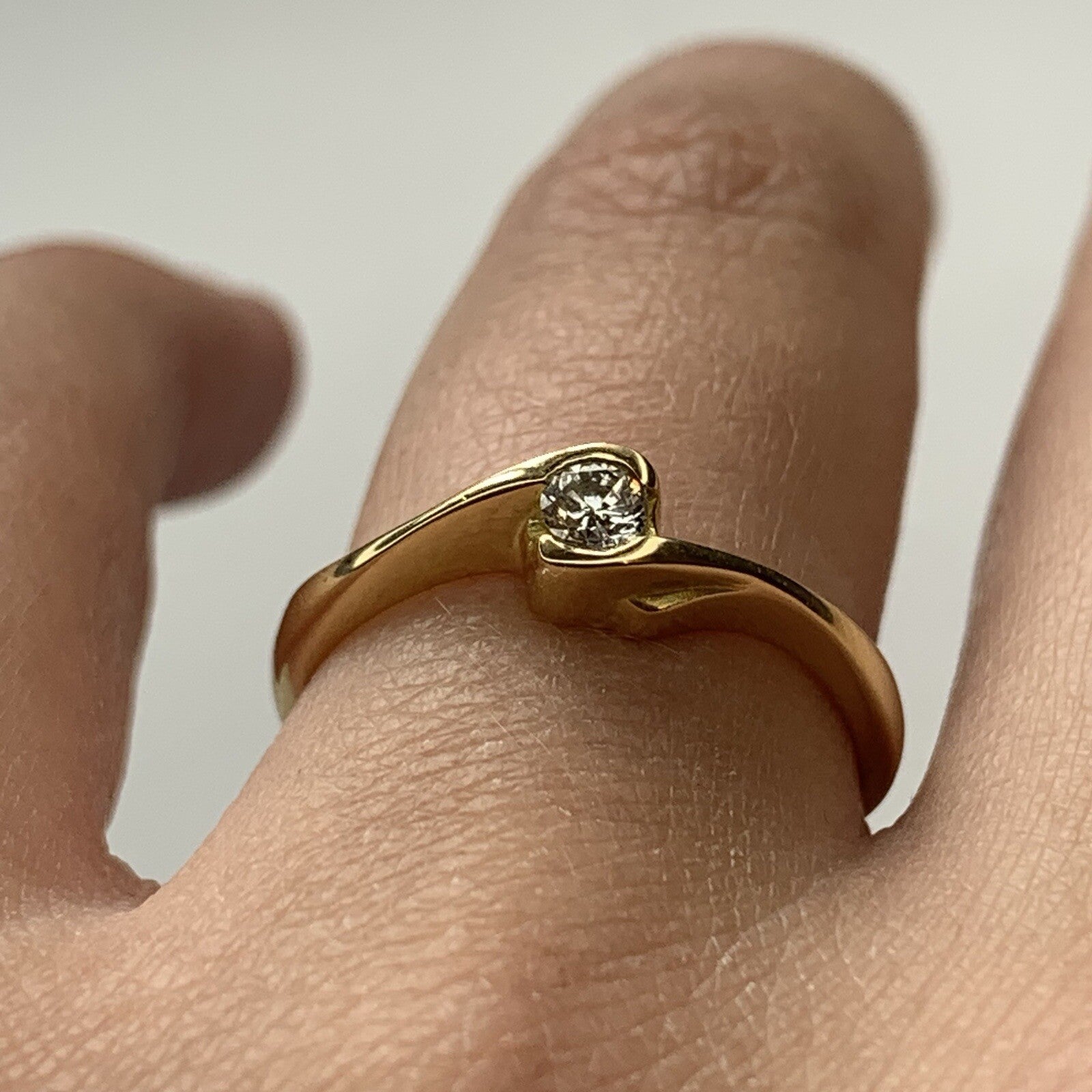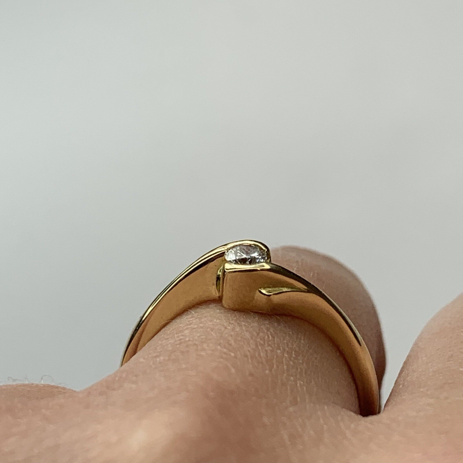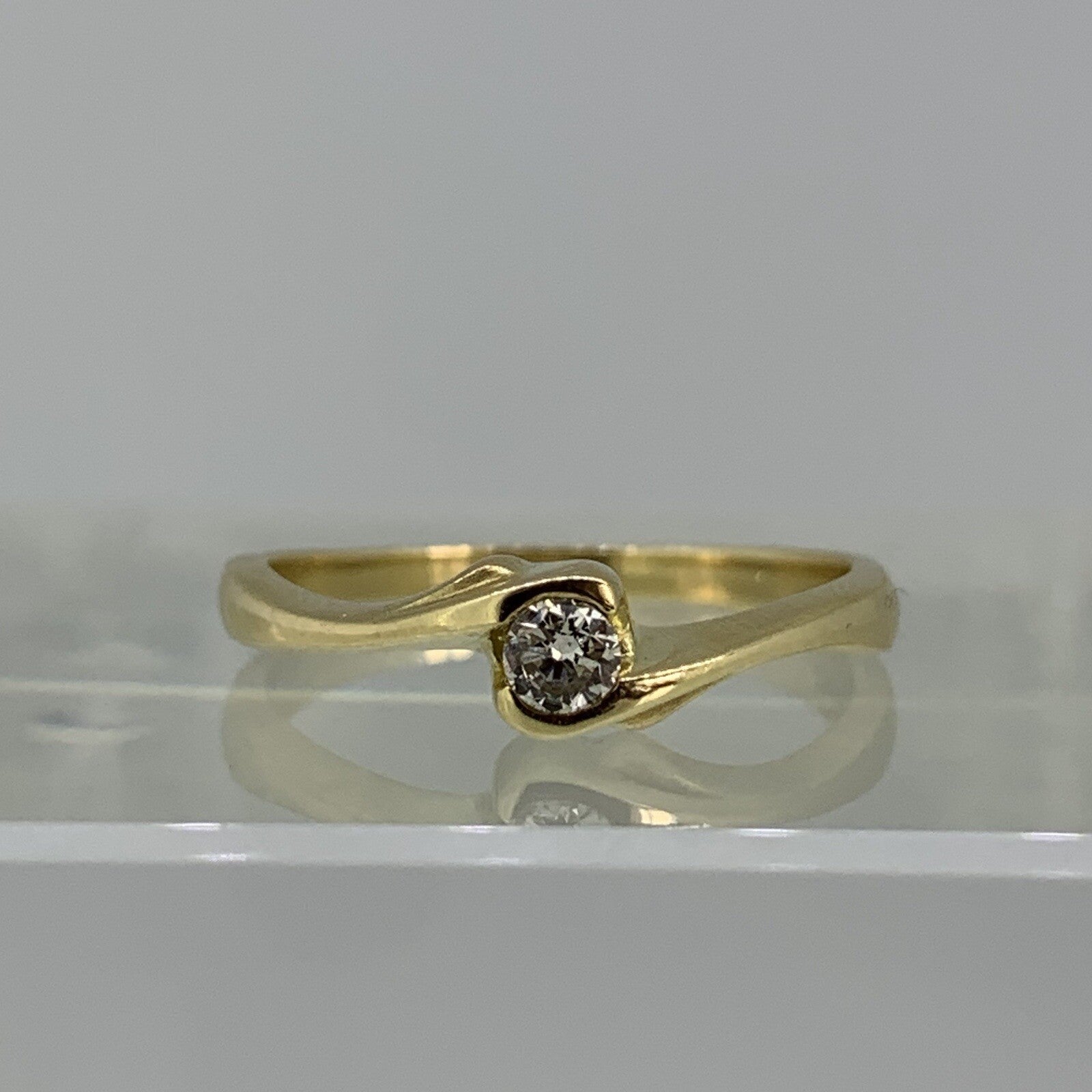 Diamond Solitaire Twist Half Bezel Set Ring 18ct 18k Yellow Gold - Size N