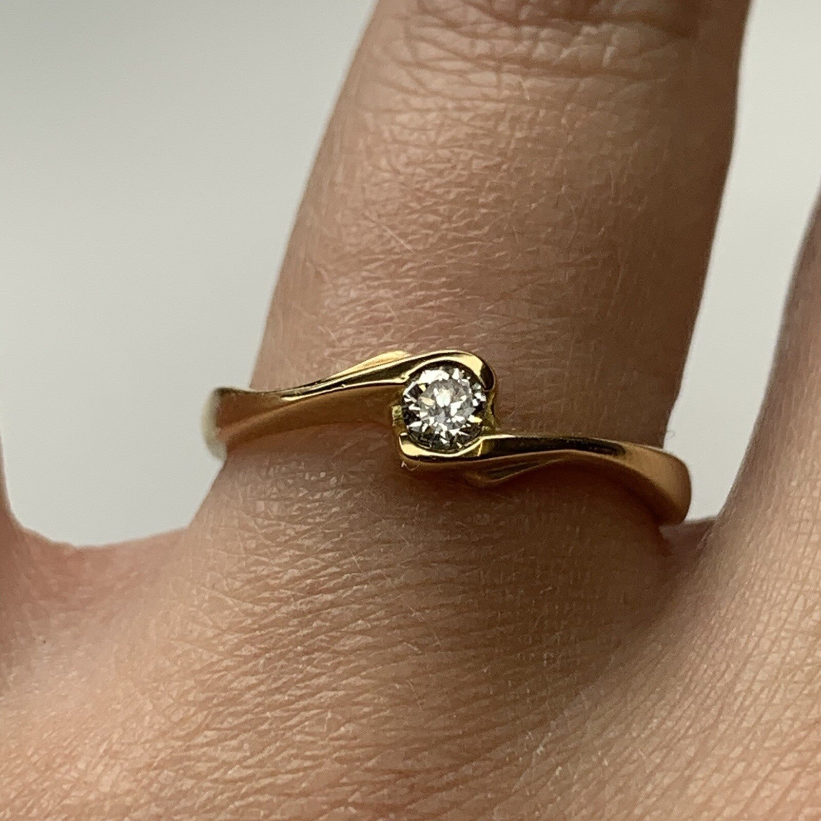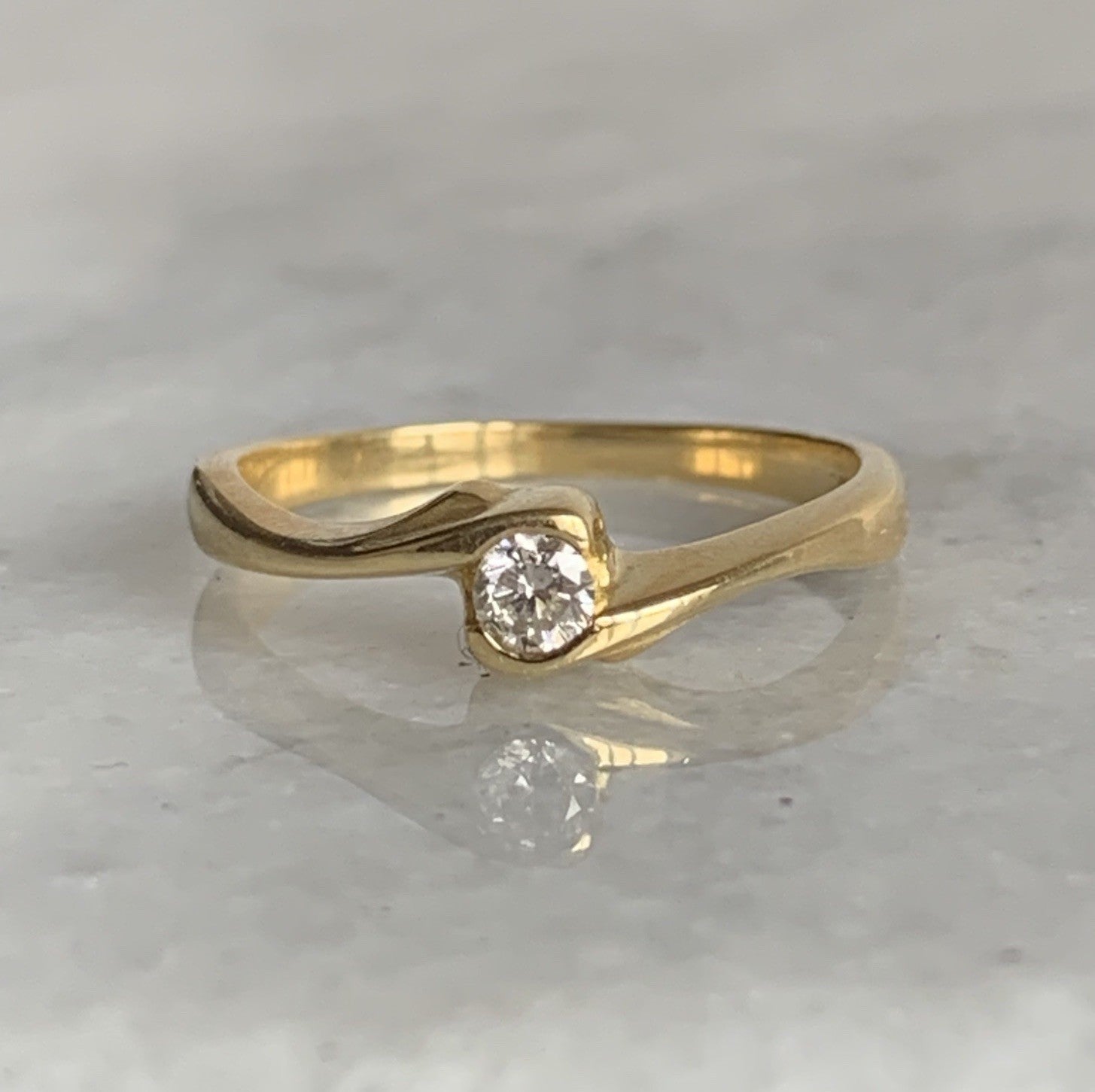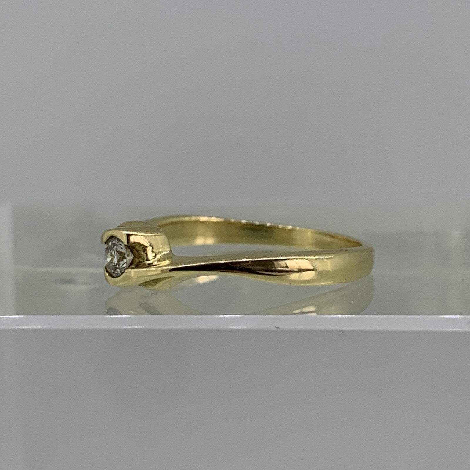 Diamond Solitaire Twist Half Bezel Set Ring 18ct 18k Yellow Gold - Size N