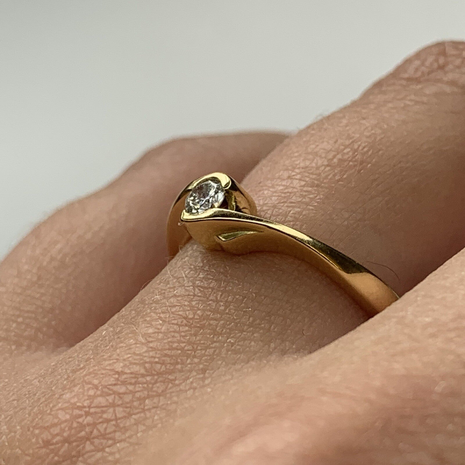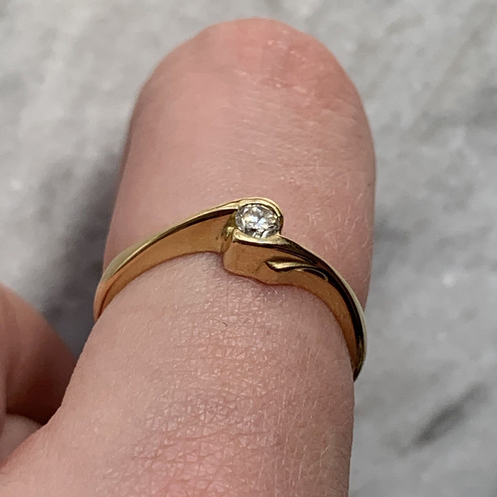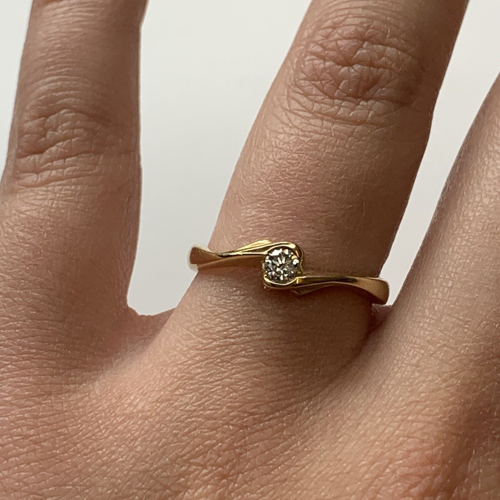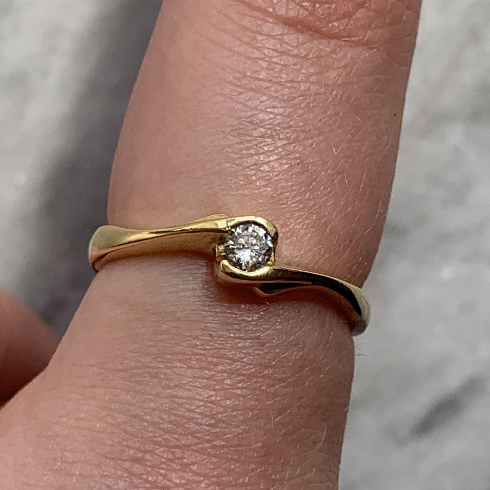 Diamond Solitaire Twist Half Bezel Set Ring 18ct 18k Yellow Gold - Size N