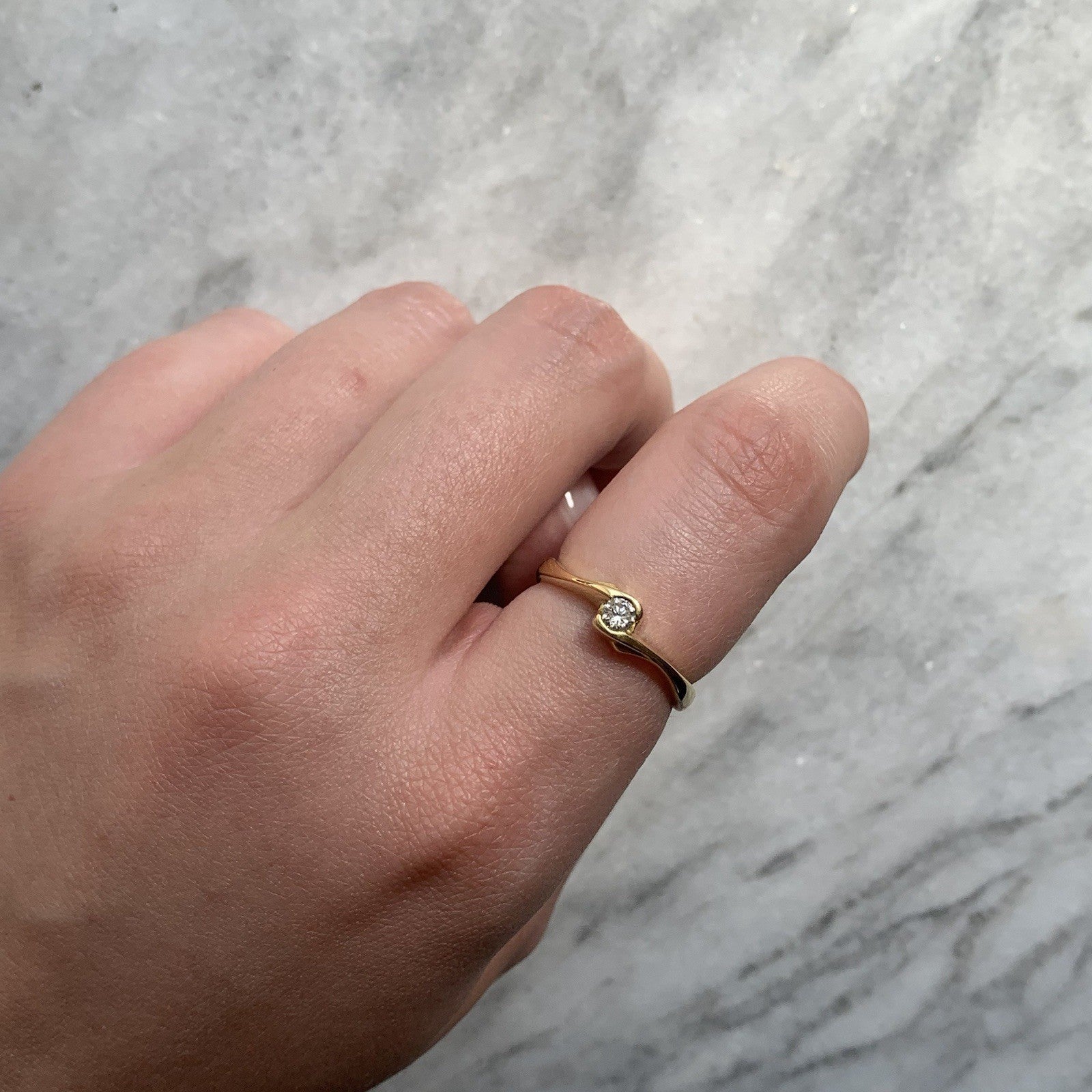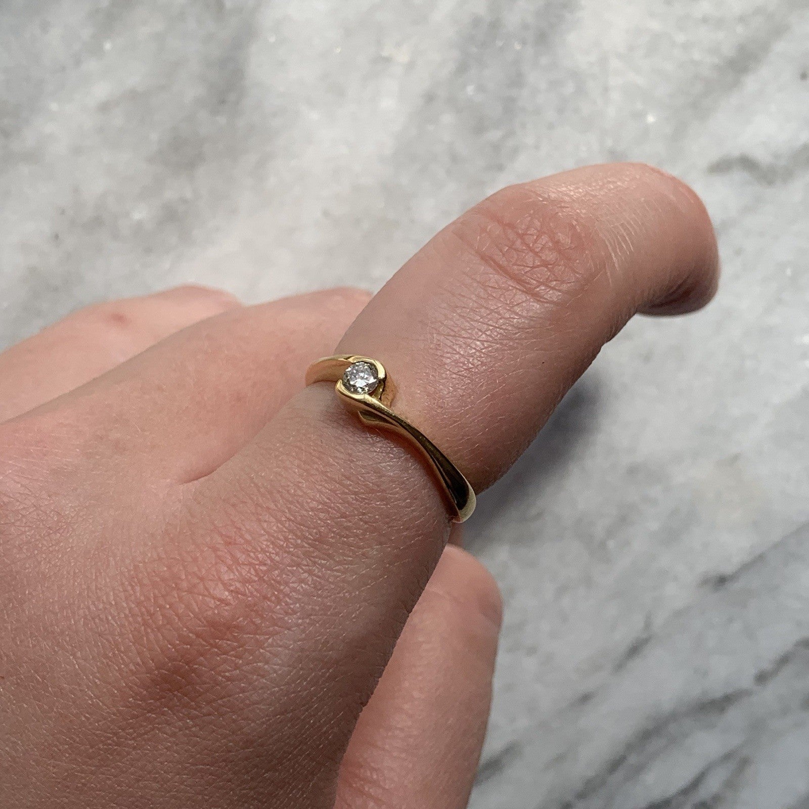 A beautiful solitaire ring with a .10ct natural round brilliant cut diamond.