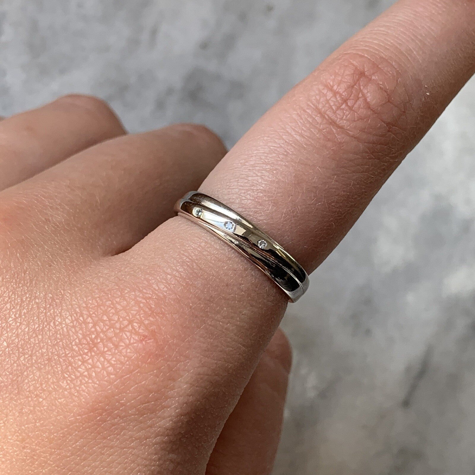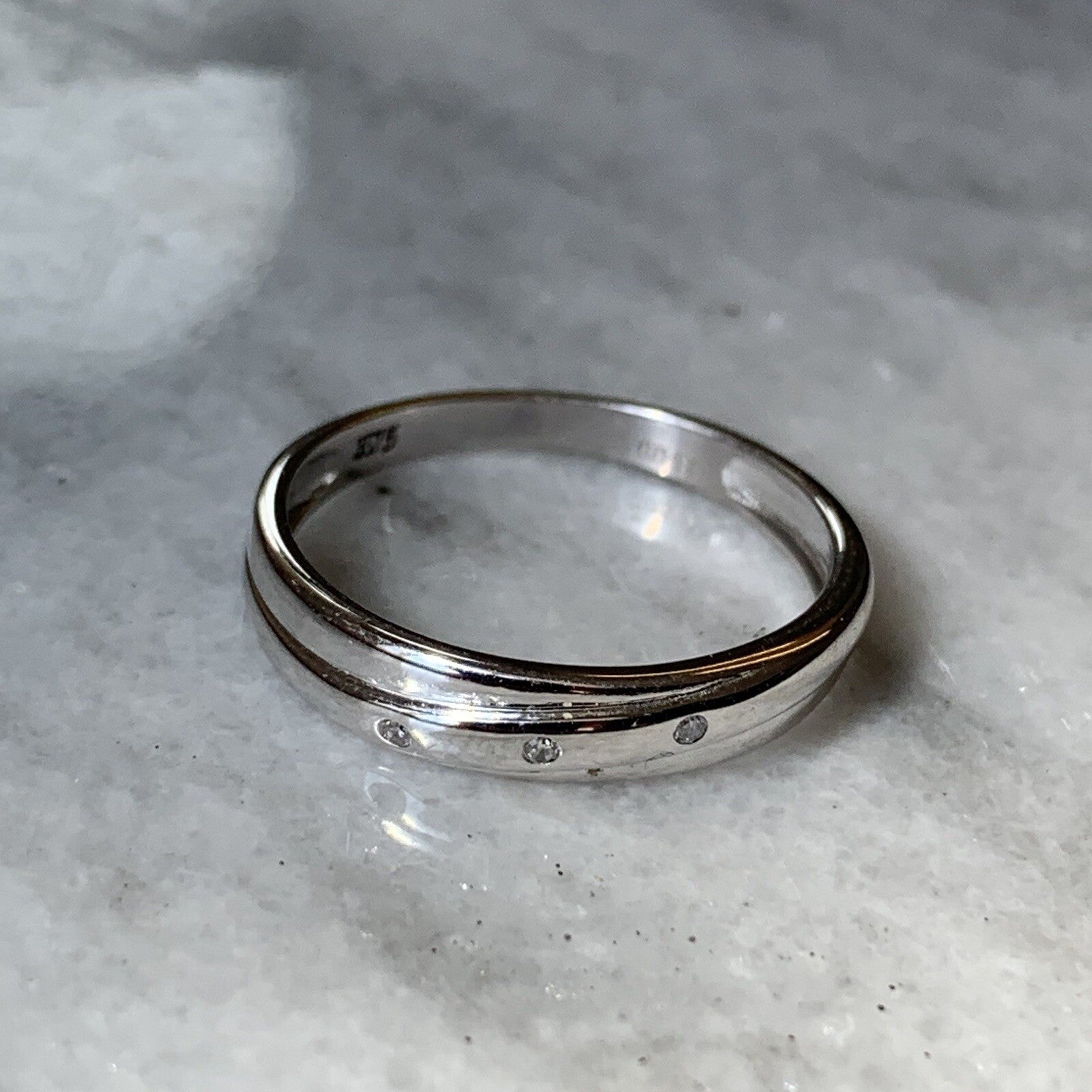 Diamond Three Stone Diagonal Band Ring 9ct 375 White Gold - Size O