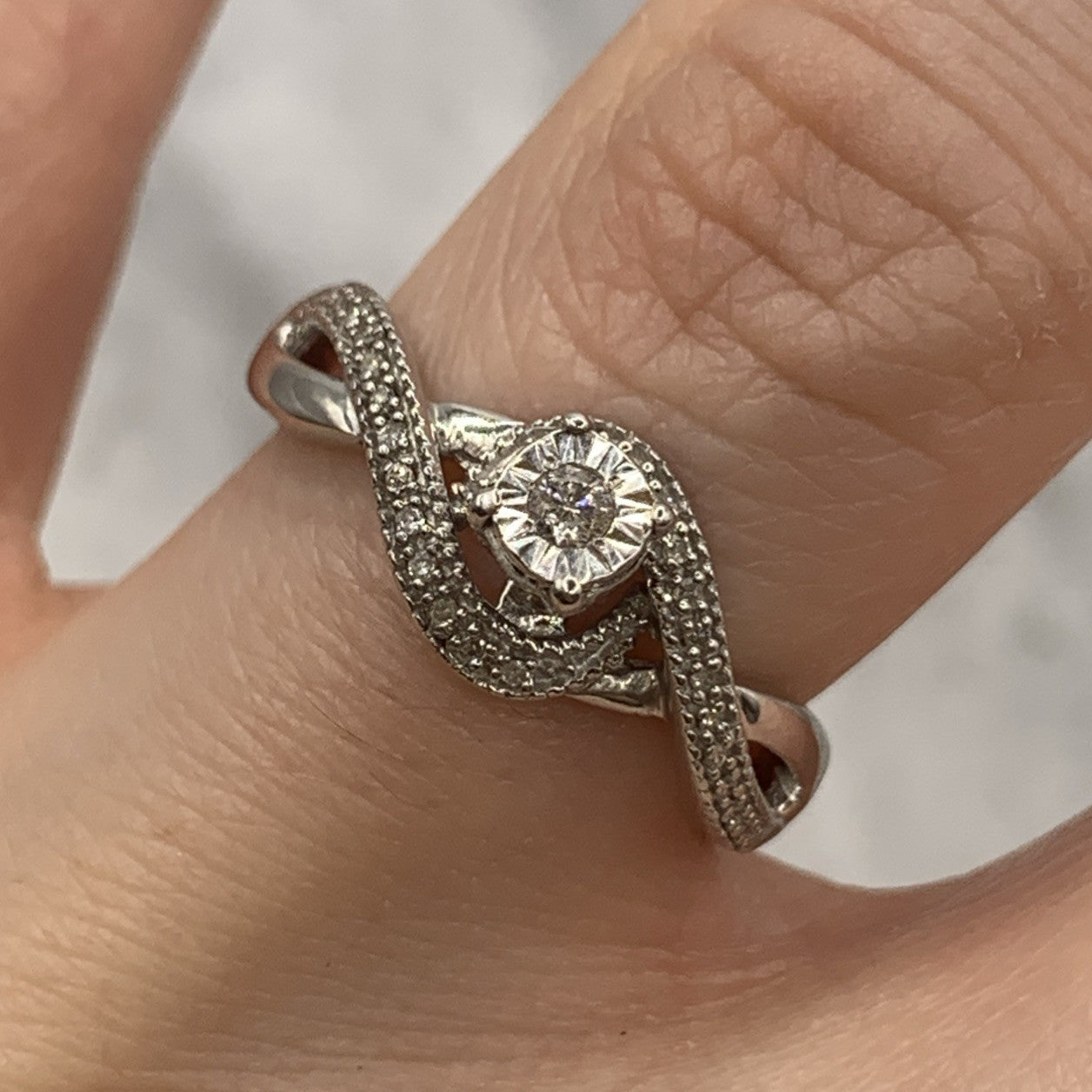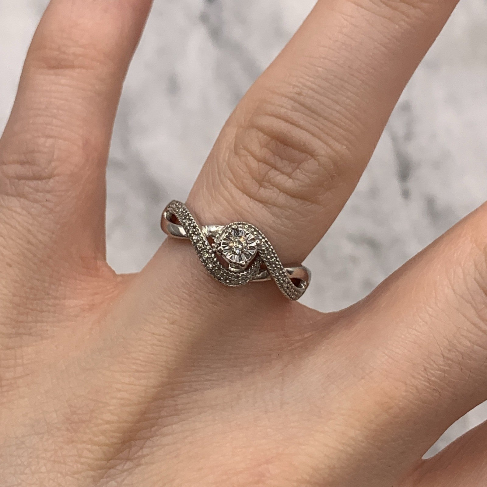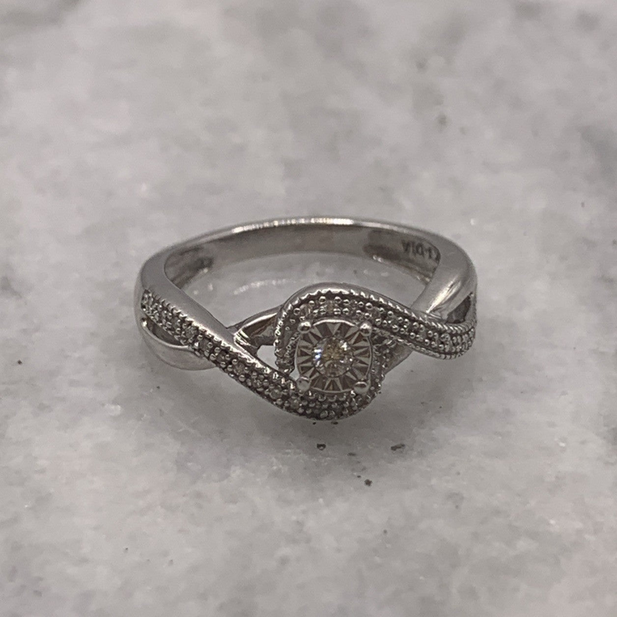 Diamond Twist Crossover Illusion Ring 9ct 375 White Gold - Size J