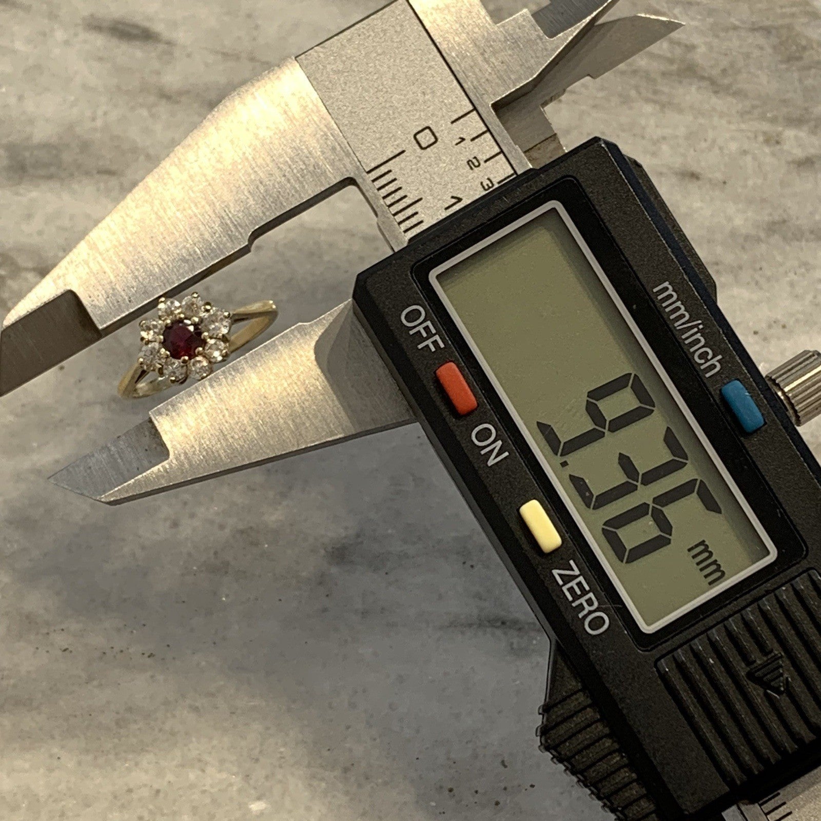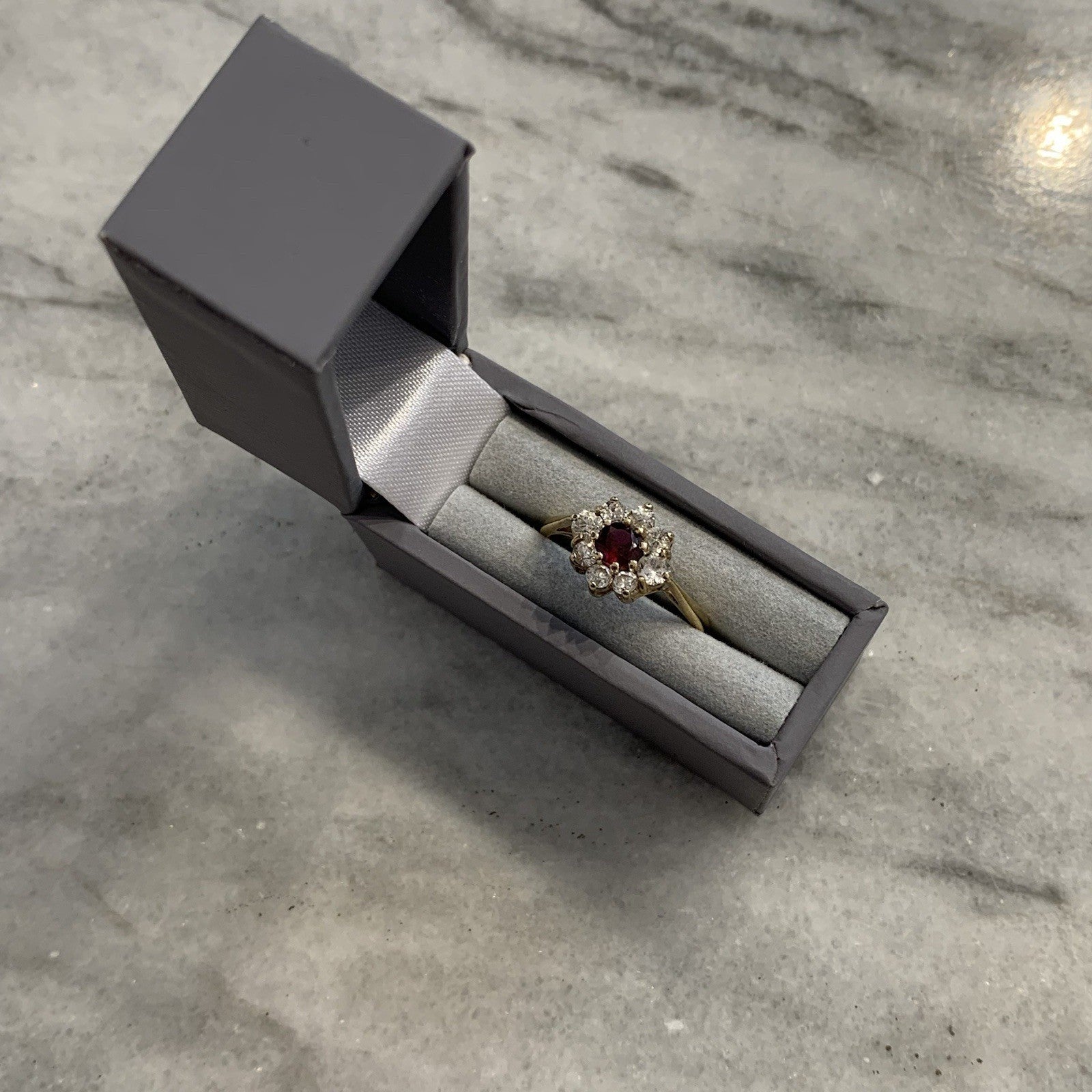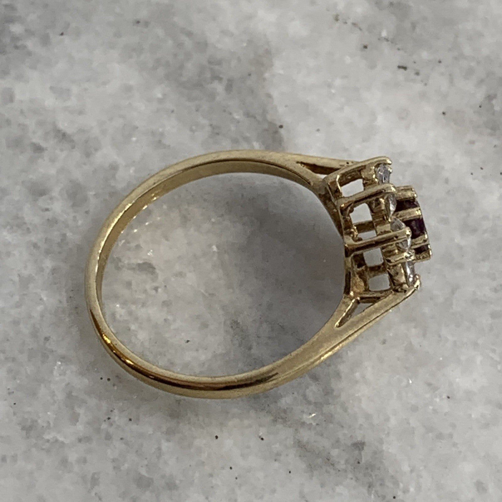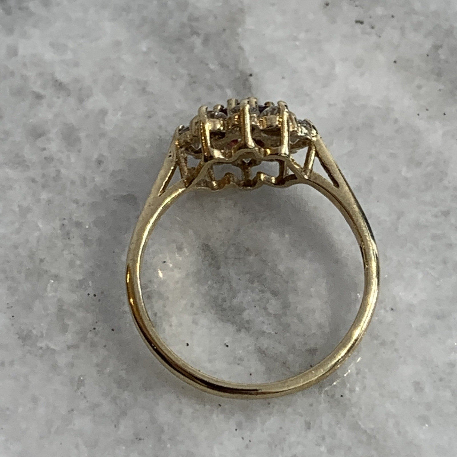 Garnet & CZ Ring 9 ct 375 Yellow Gold - Size K 1/2 - Daisy Flower