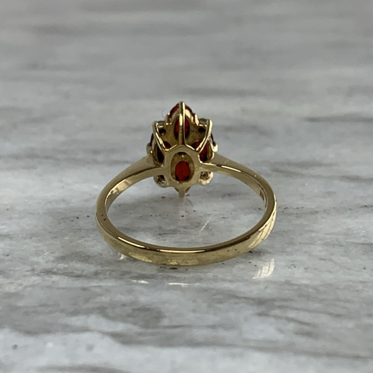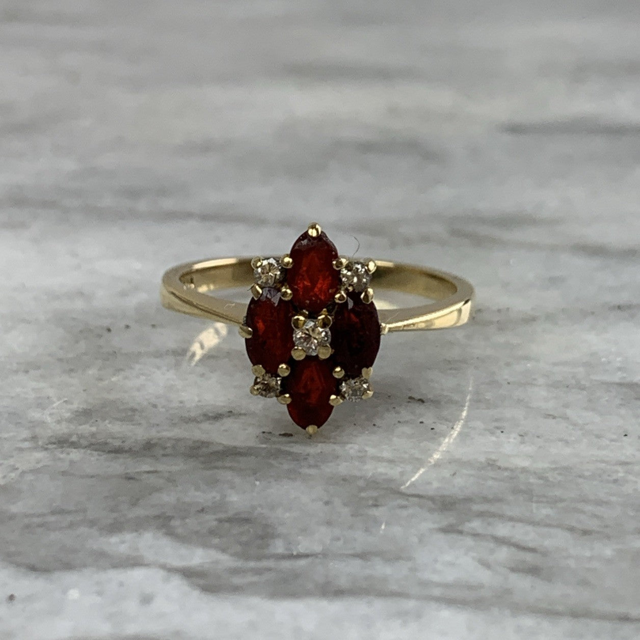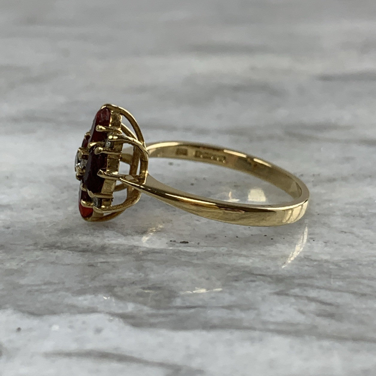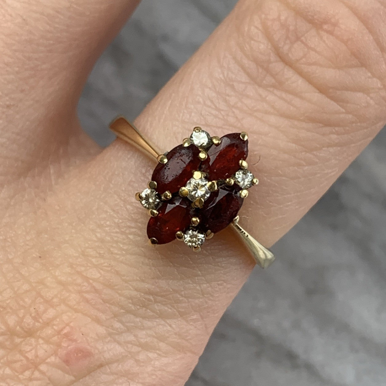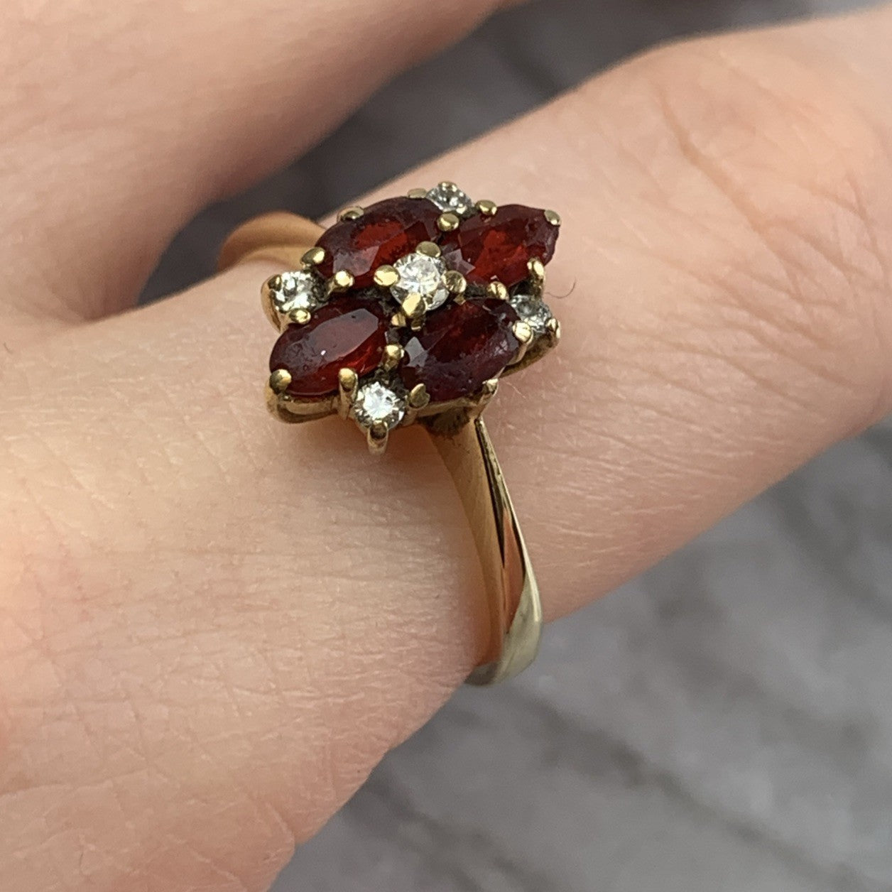 Garnet & Diamond Cluster Ring 18ct 750 Yellow Gold - Size O