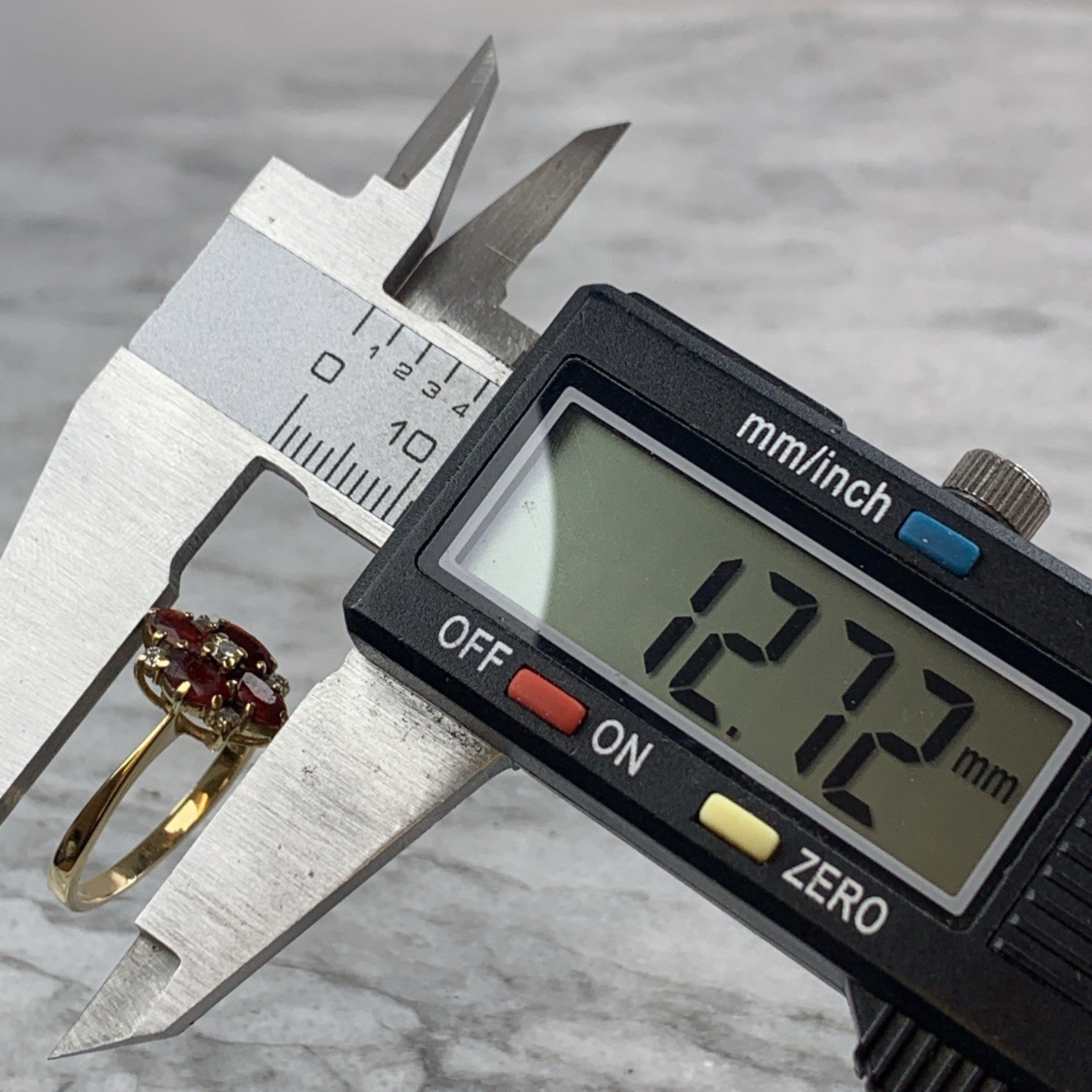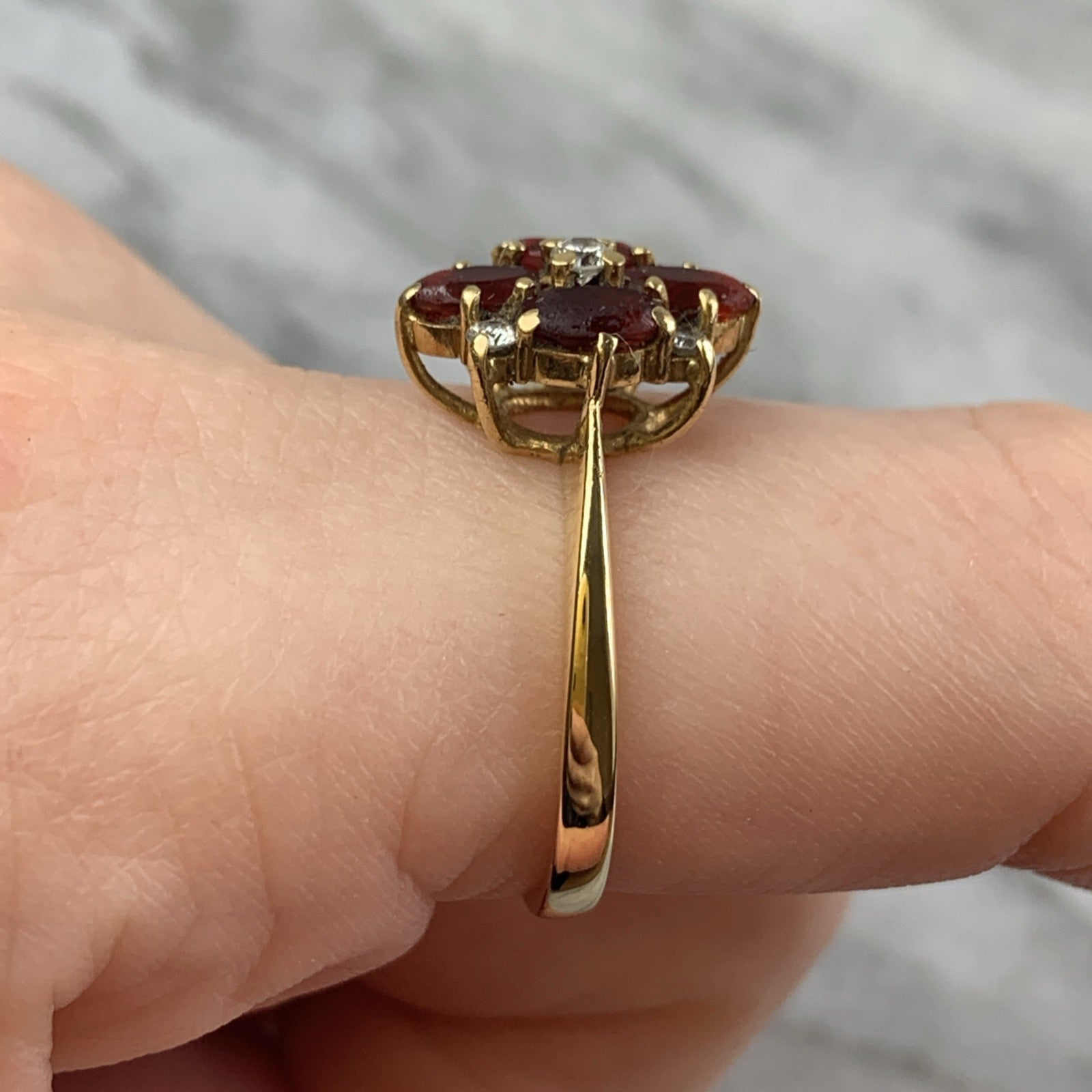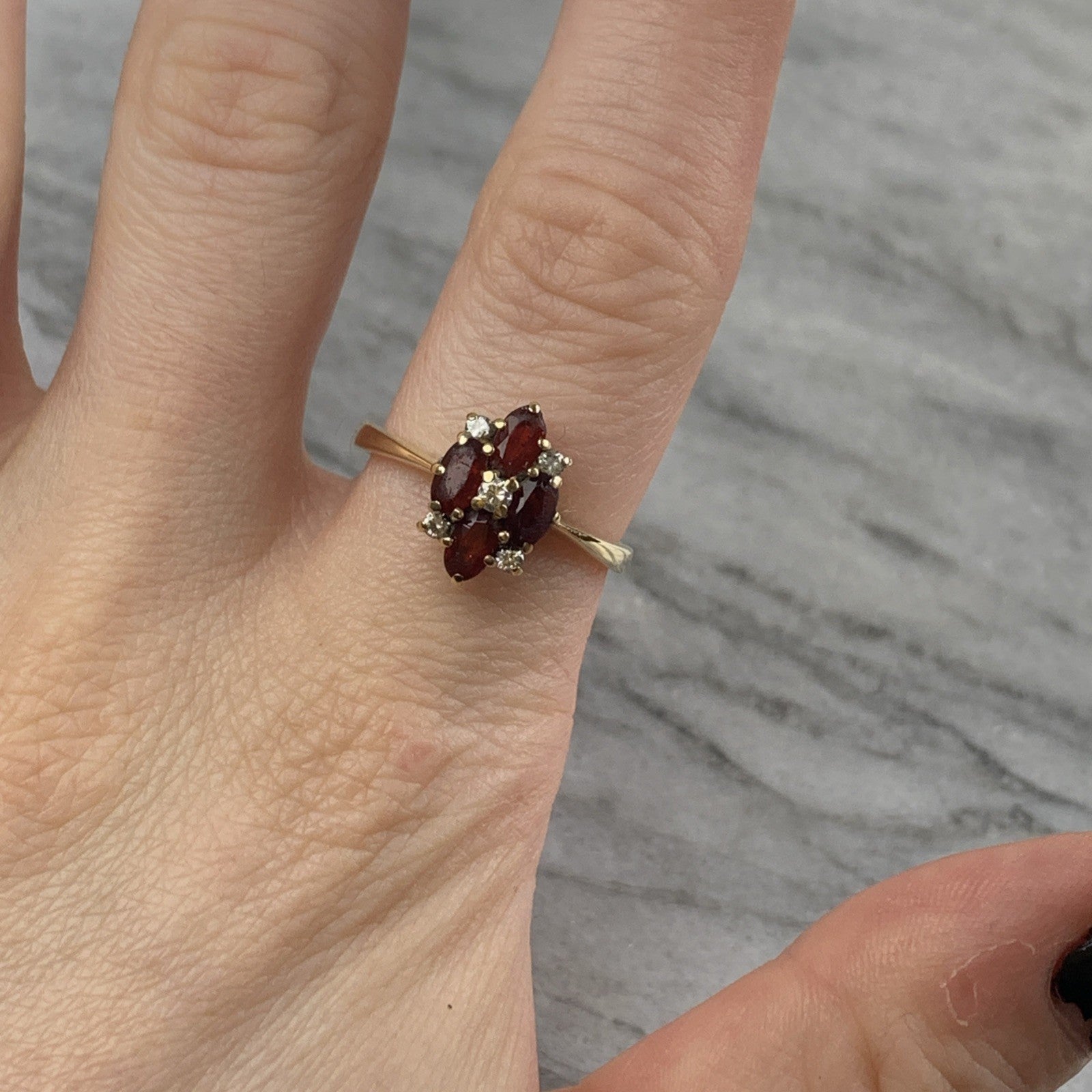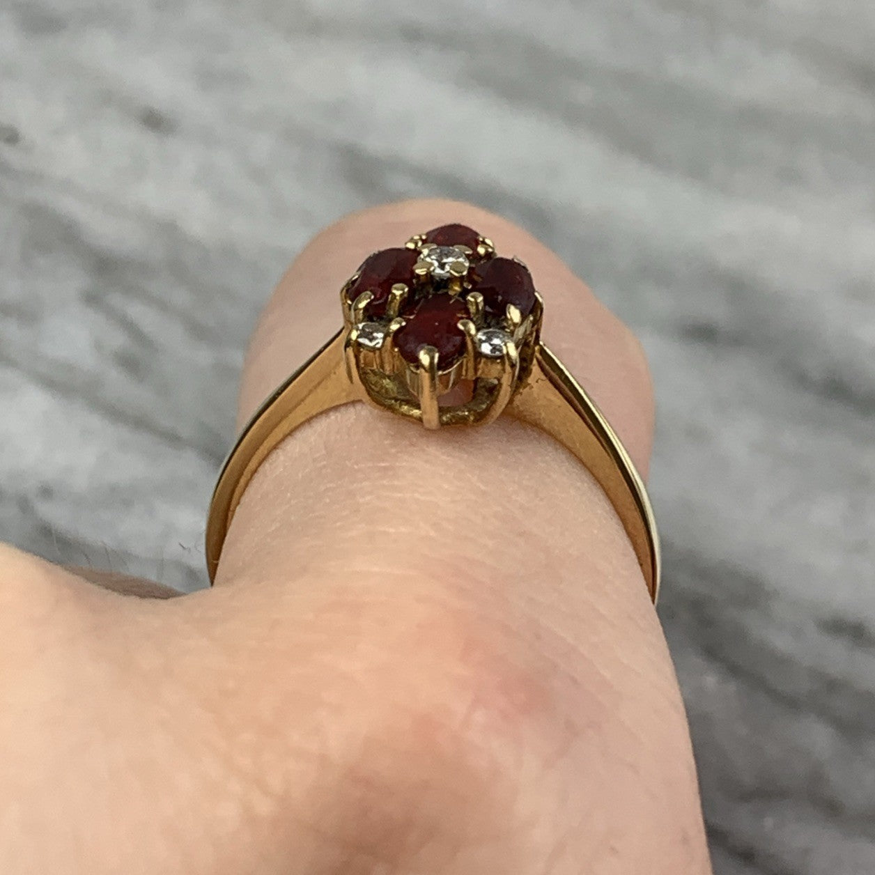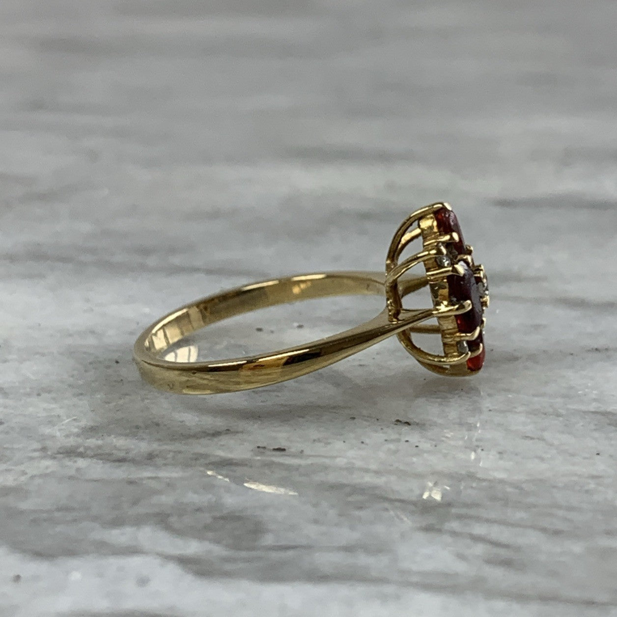 Garnet & Diamond Cluster Ring 18ct 750 Yellow Gold - Size O