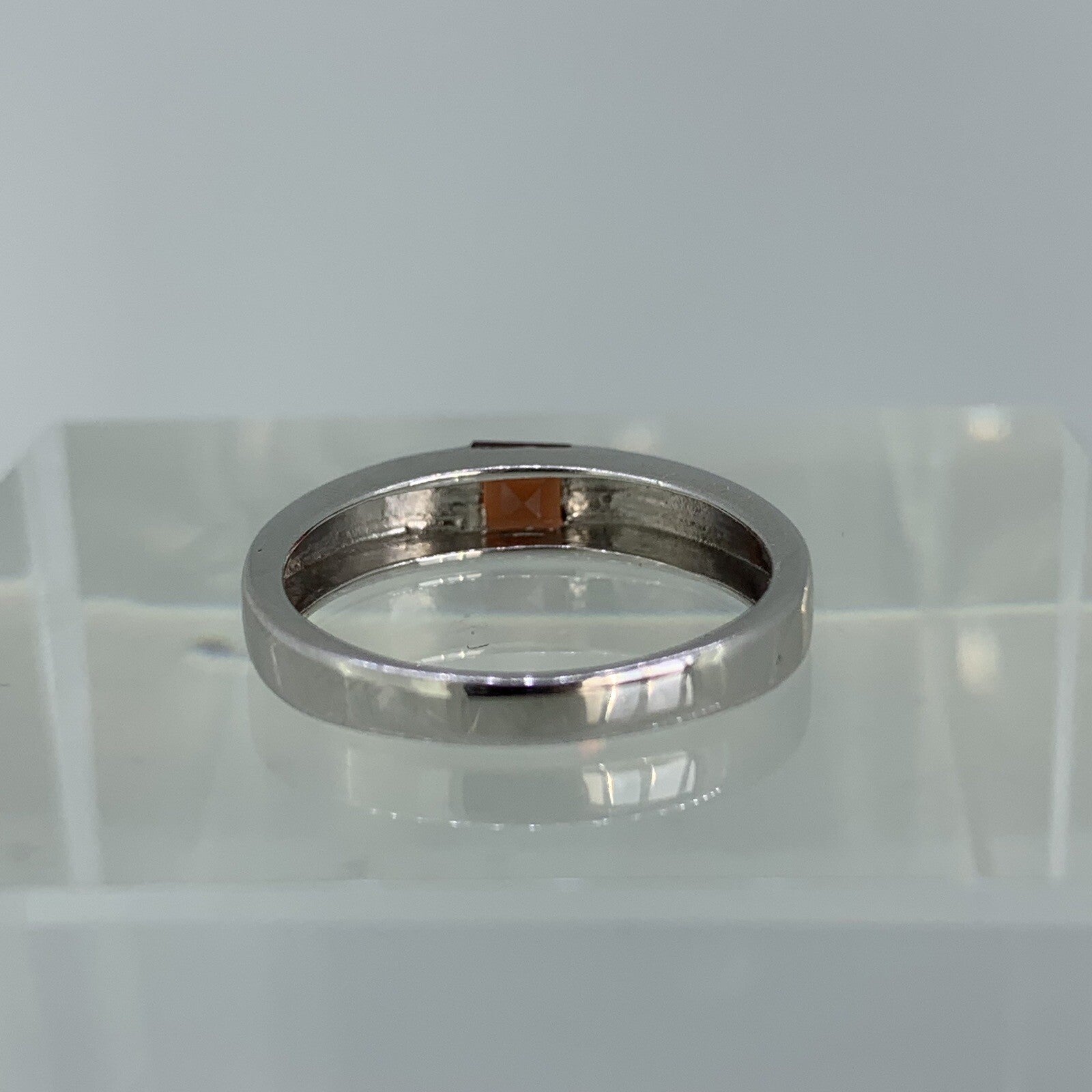 Garnet Solitaire Square Cut Channel Set Band Ring 9ct 9K White Gold - Size N