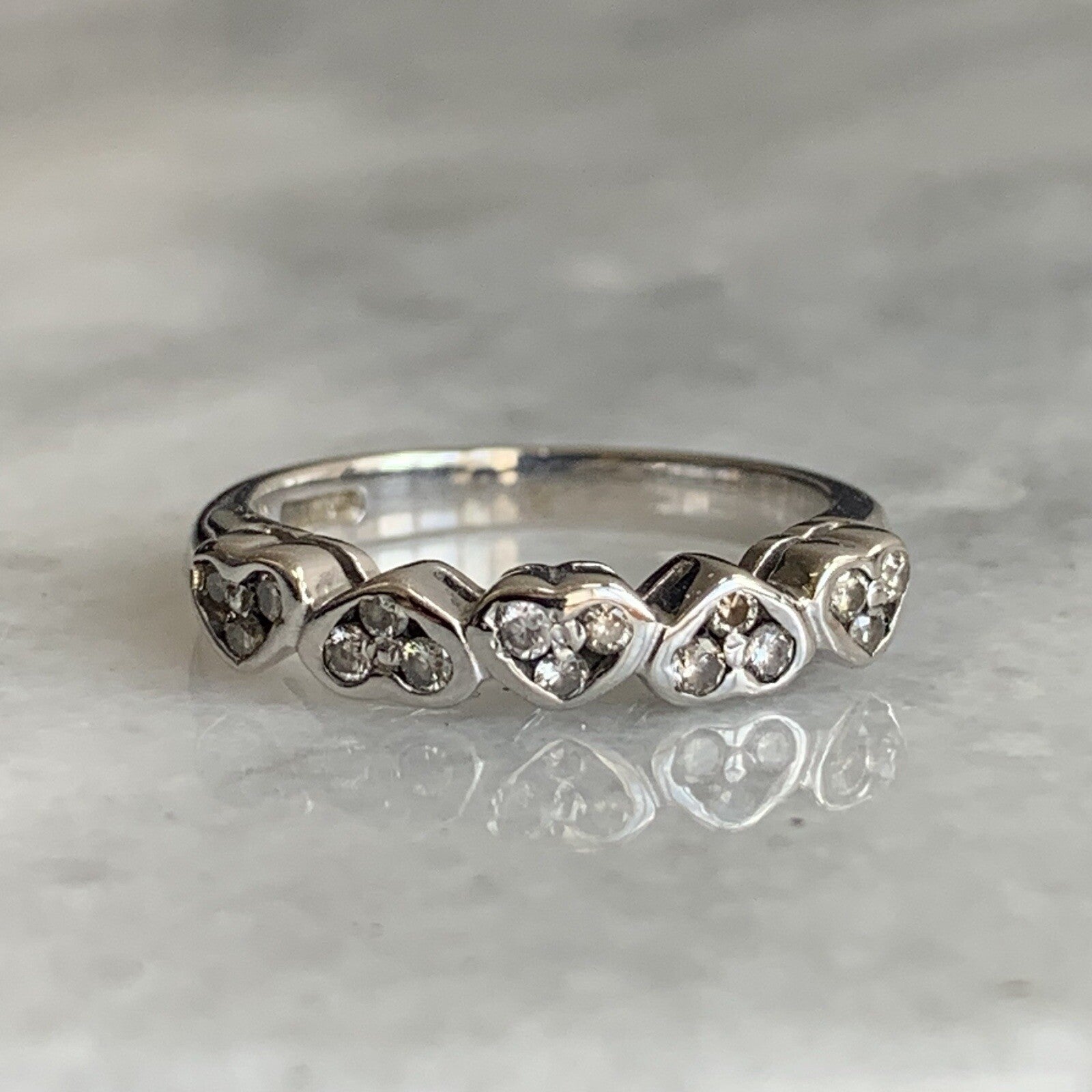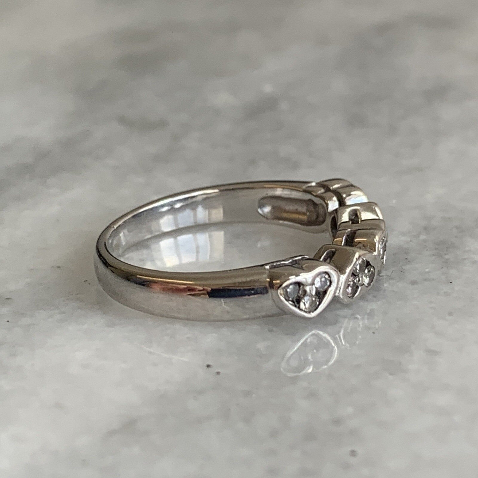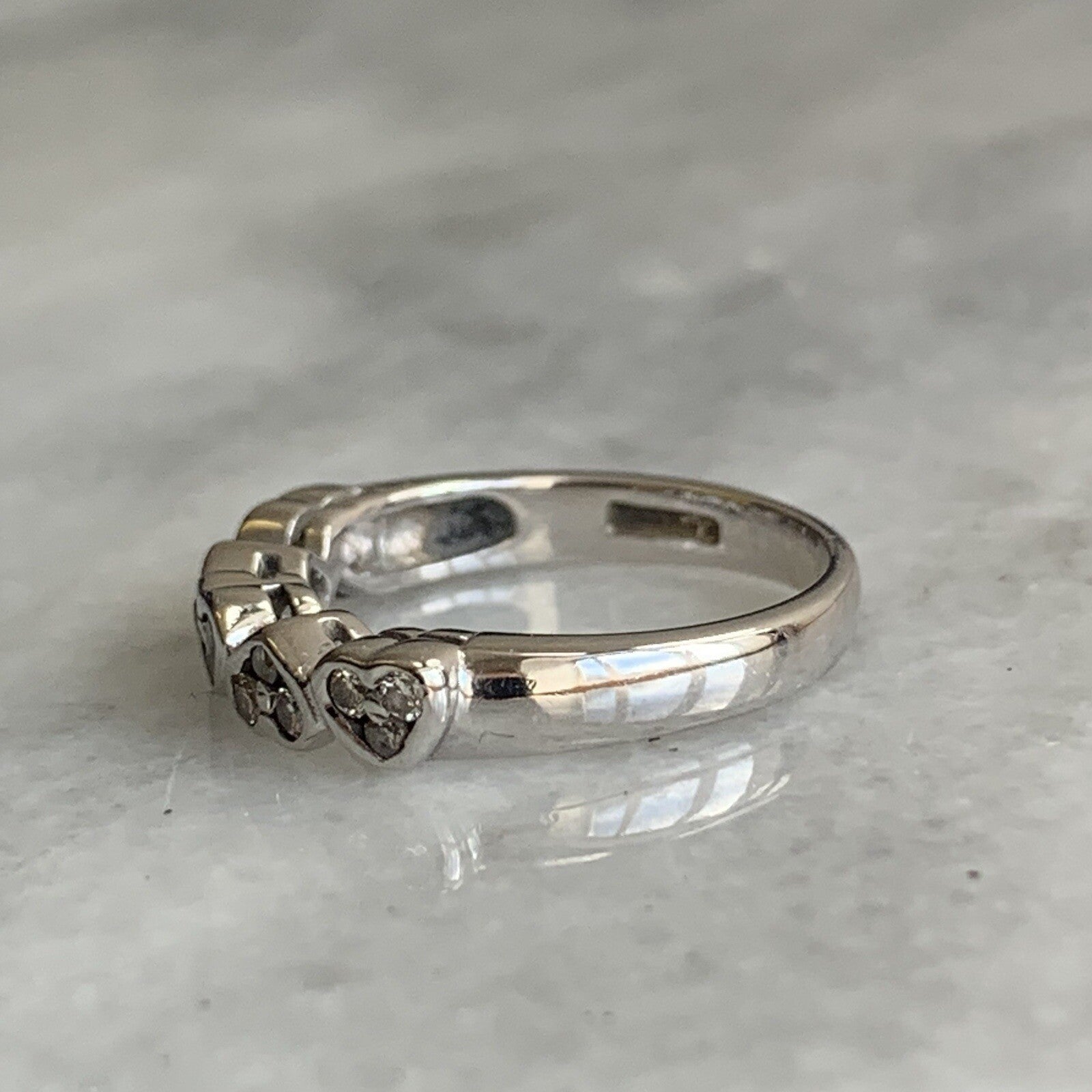 Heart Set Diamond Cluster Band Ring 375 9ct White Gold - Size I