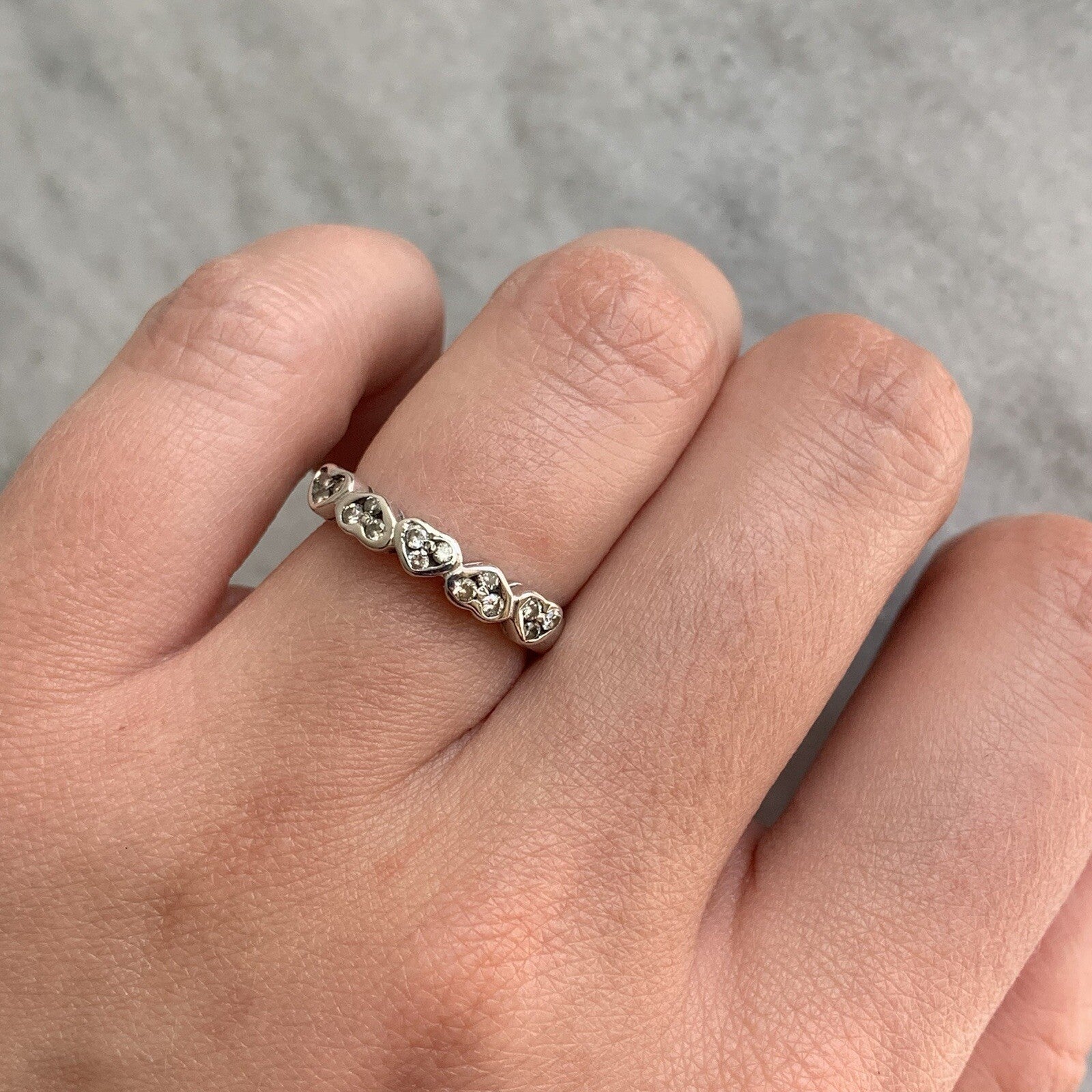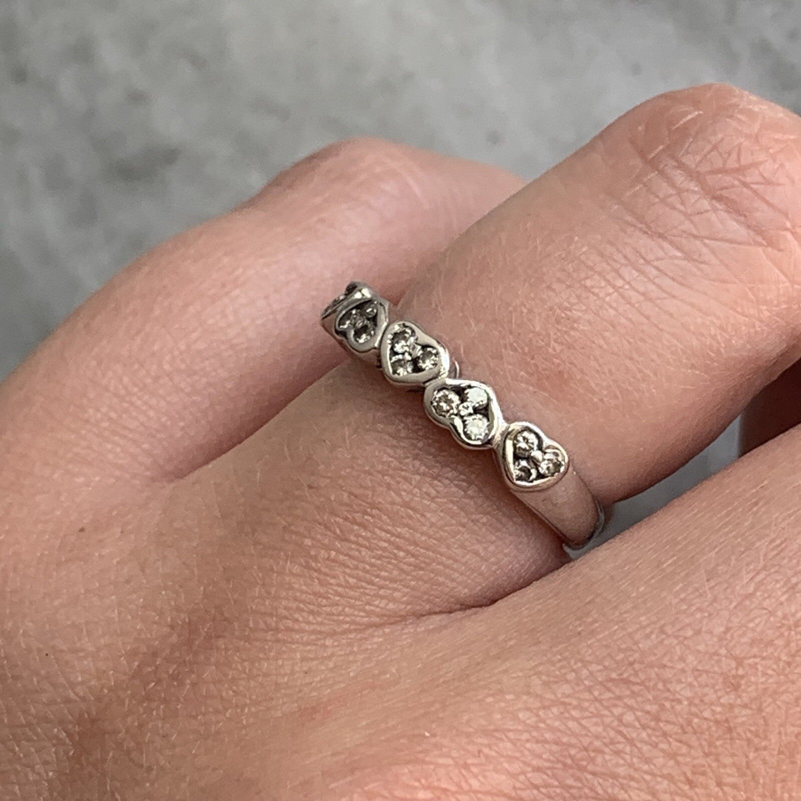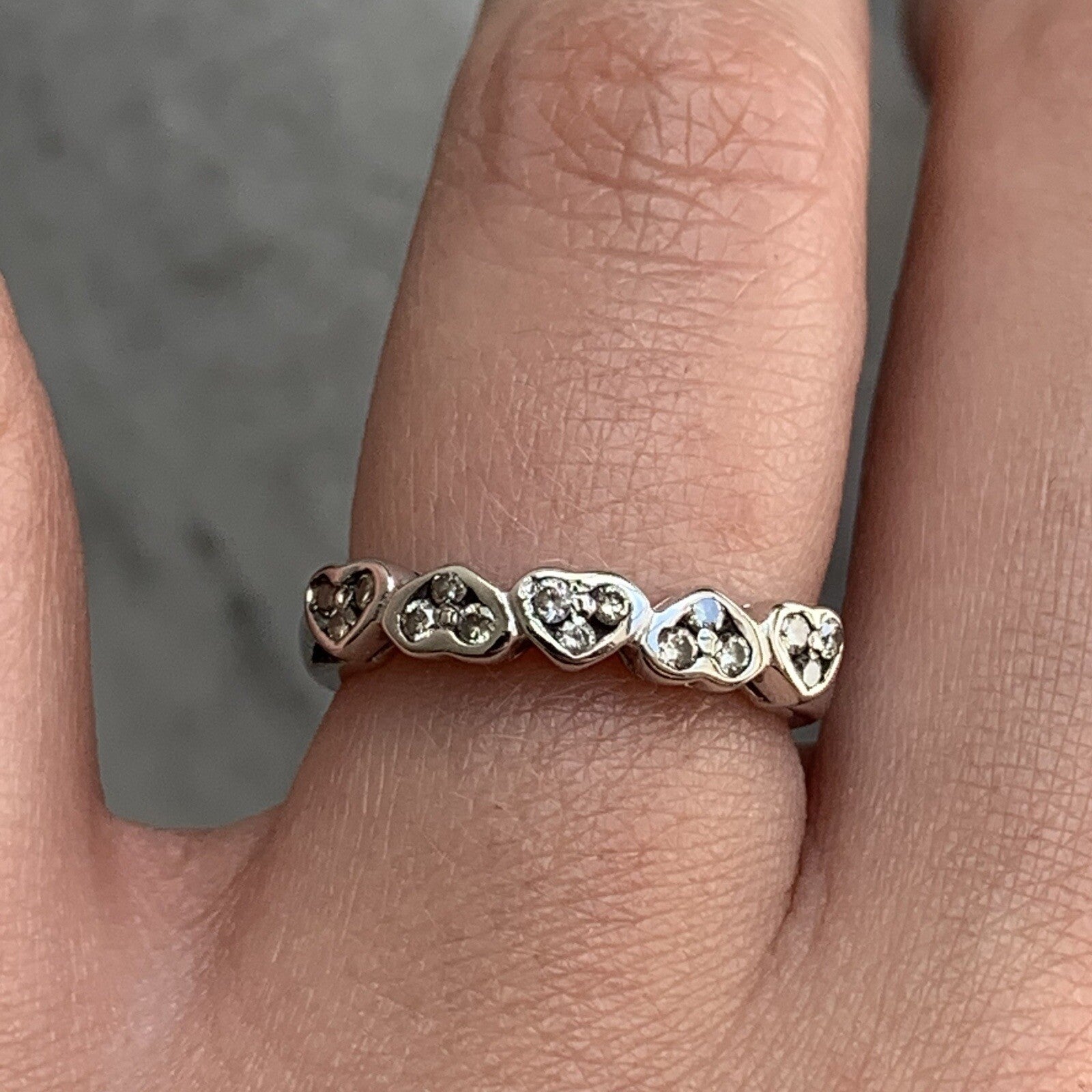Heart Set Diamond Cluster Band Ring 375 9ct White Gold - Size I