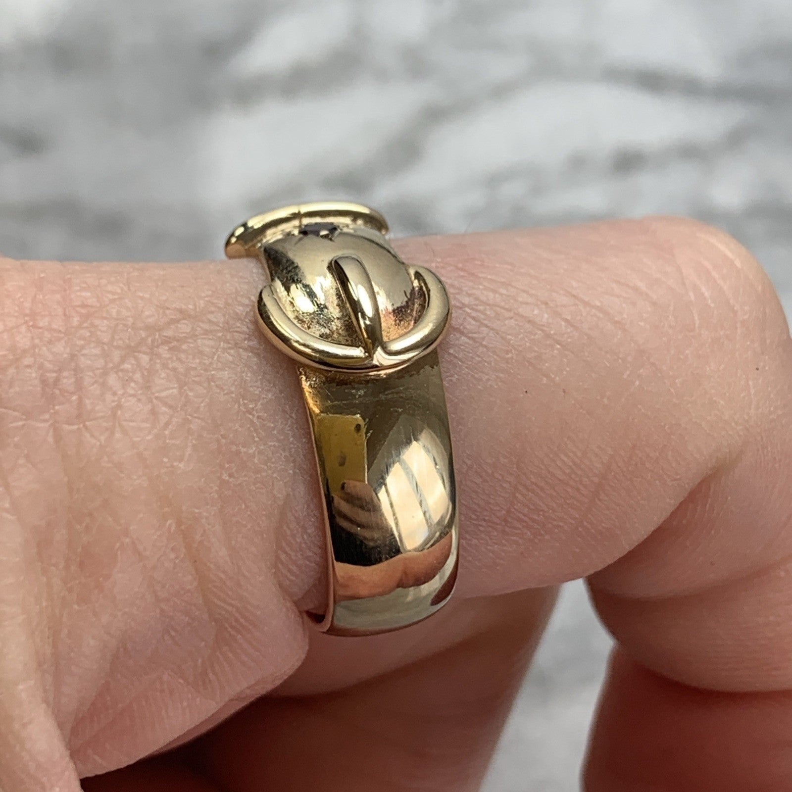 Madeira Citrine Belt Buckle Band Ring 9ct 375 Yellow Gold - Size R