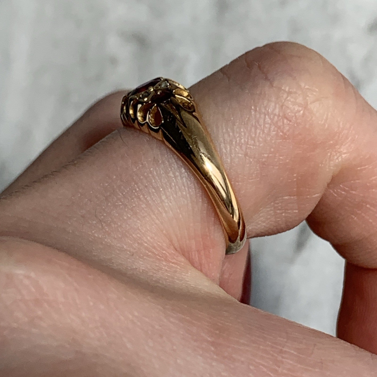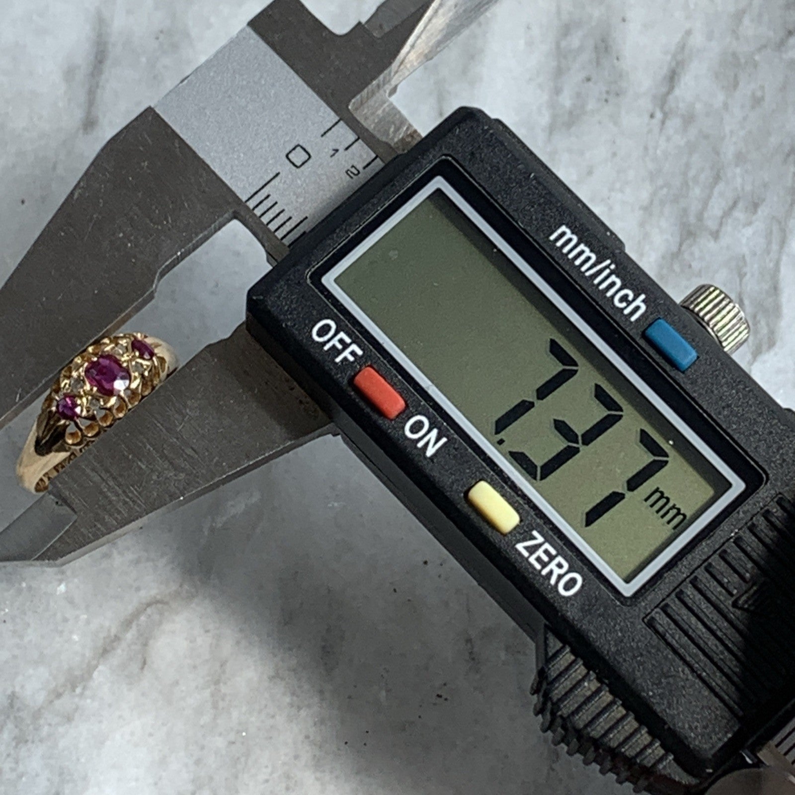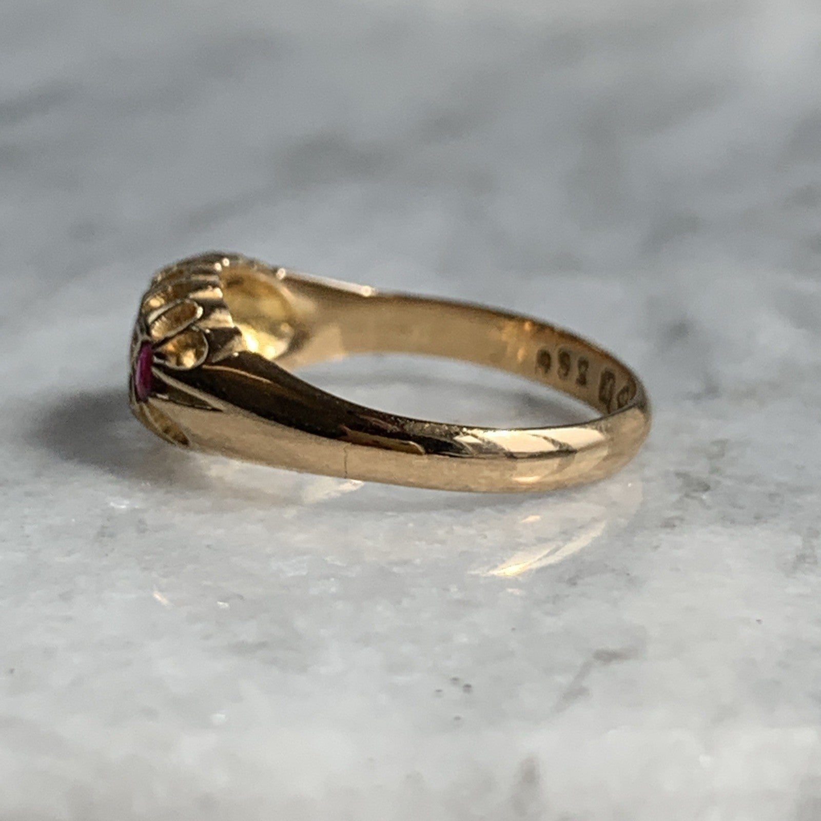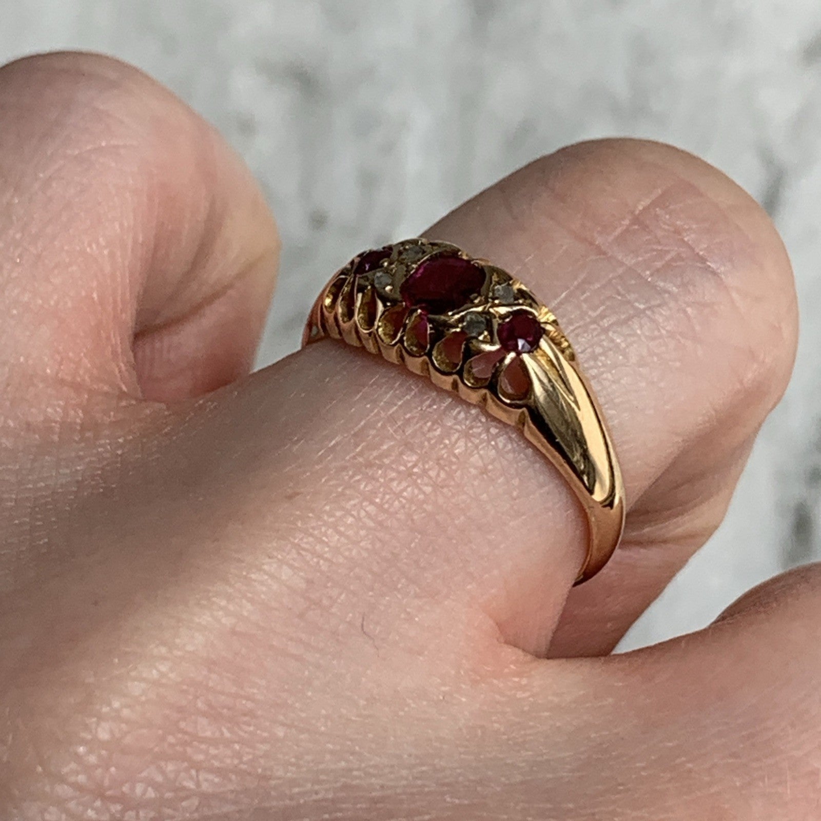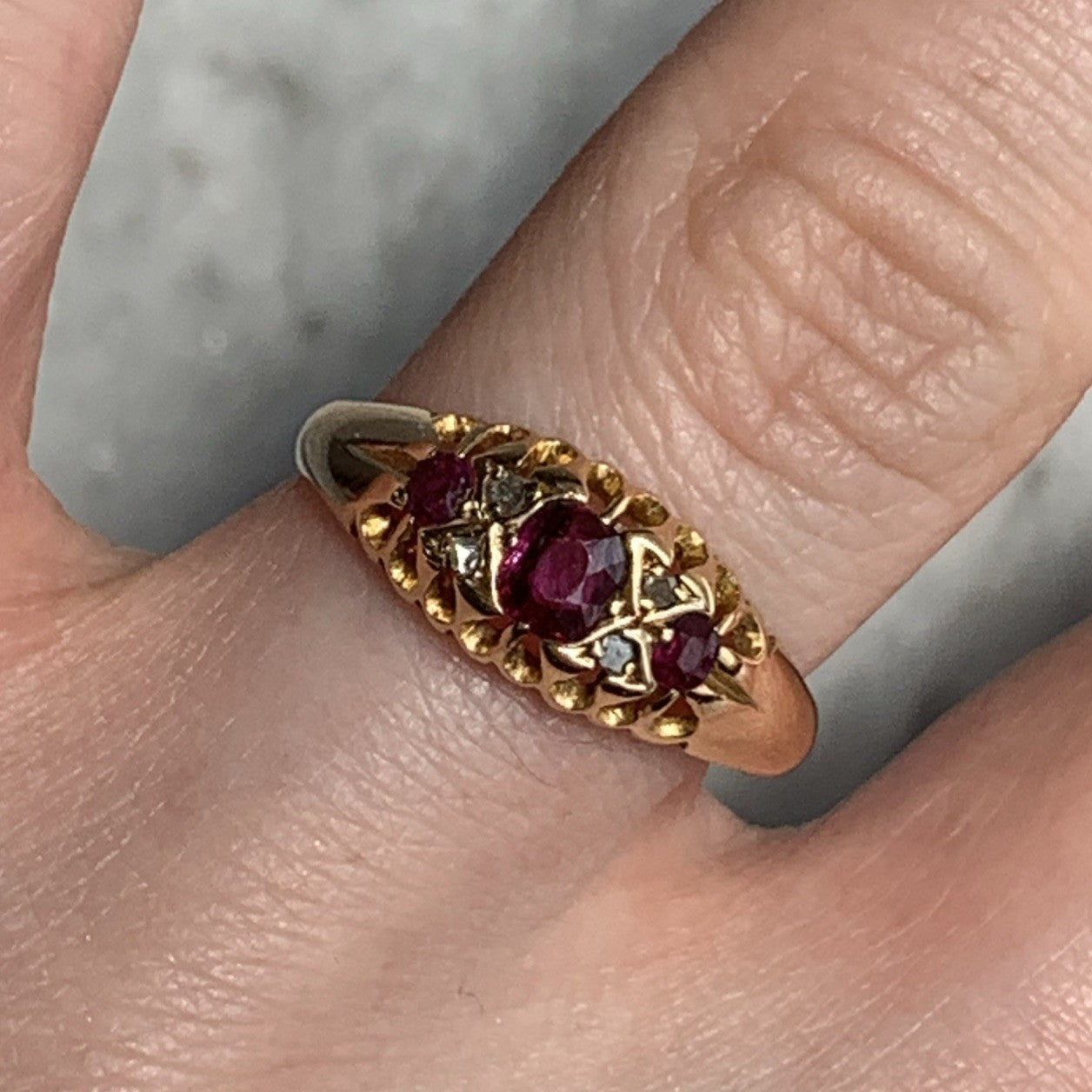 Ruby & Diamond Carved Ring 18ct 750 Yellow Gold - Size N