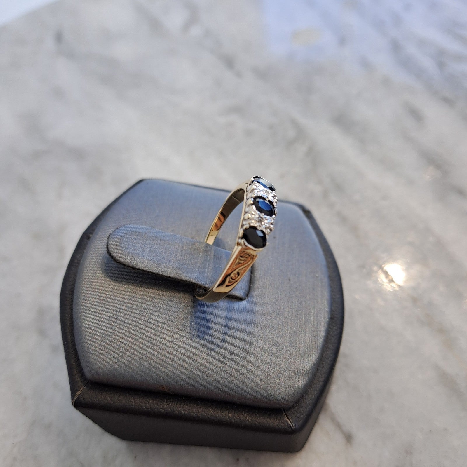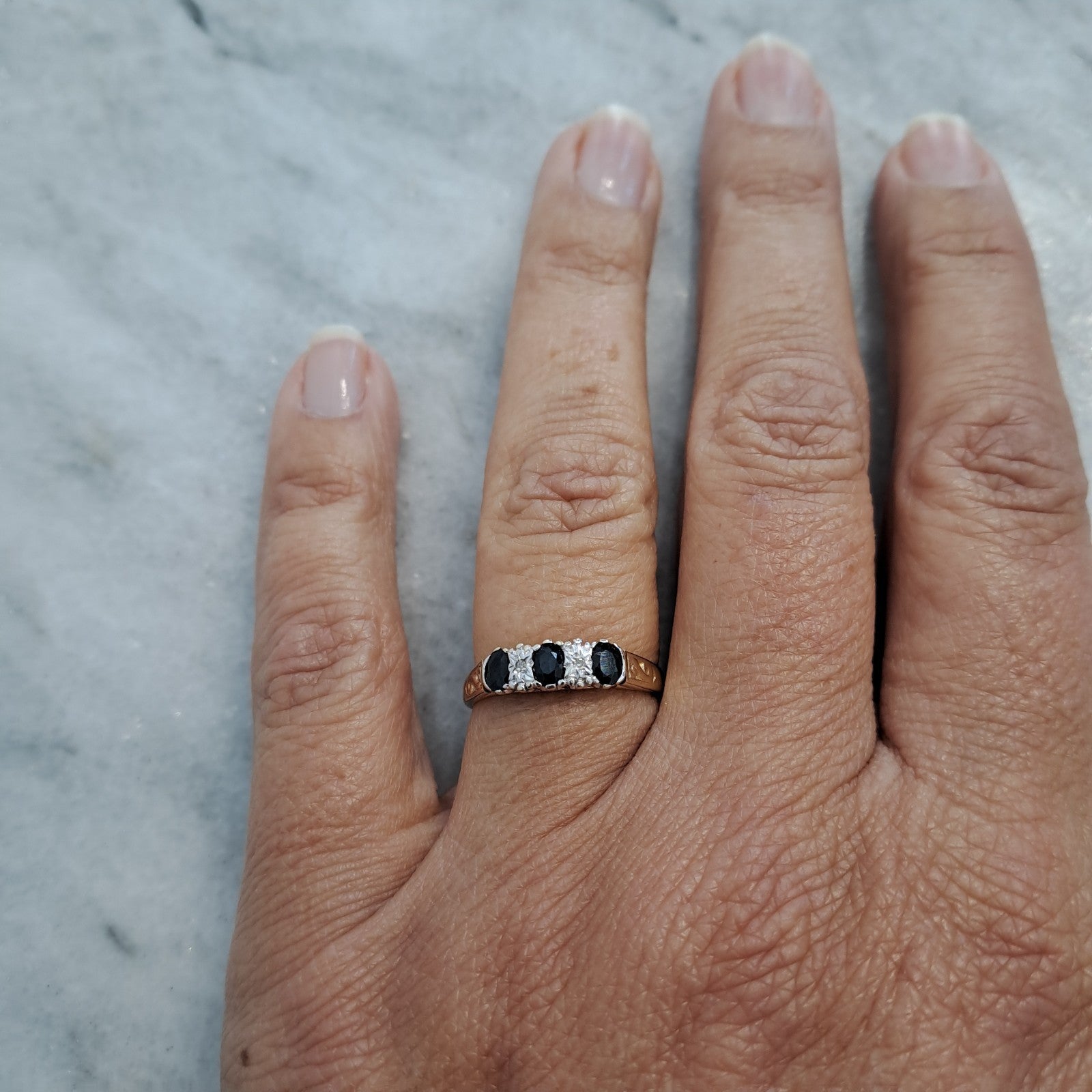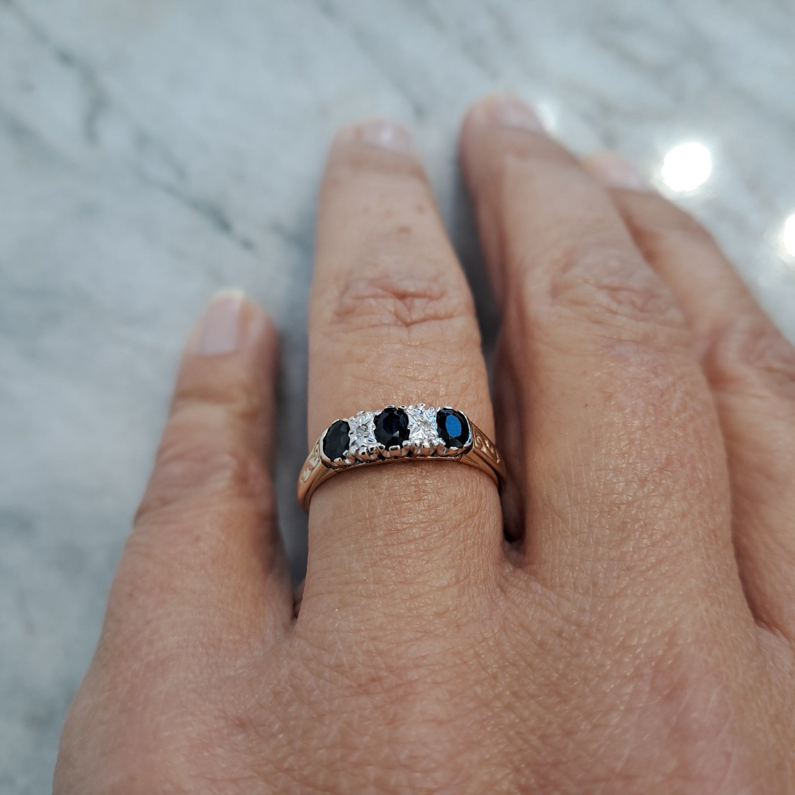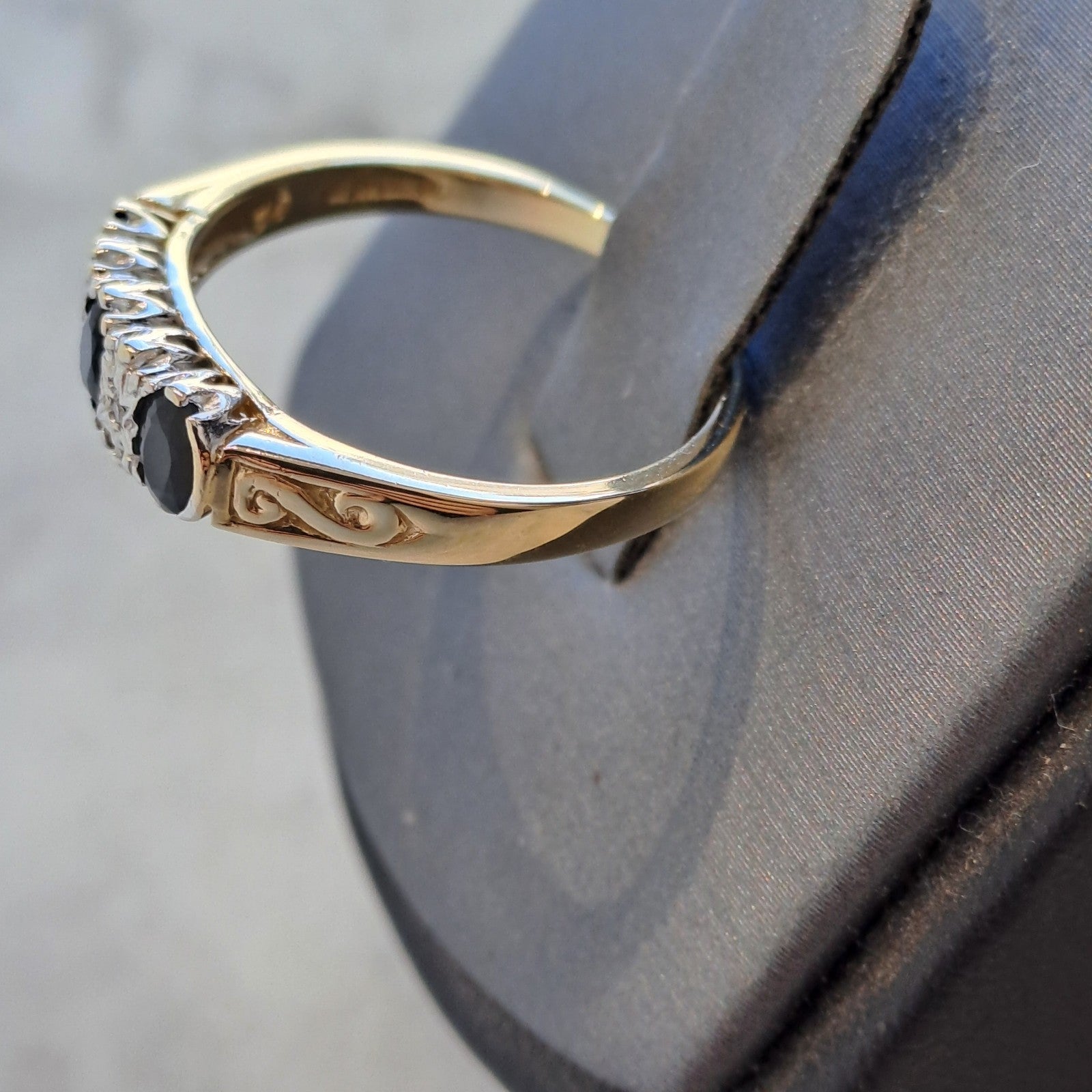 Sapphire and Diamond Five Stone Band Ring 9ct 375 Yellow Gold - Size O 1/2