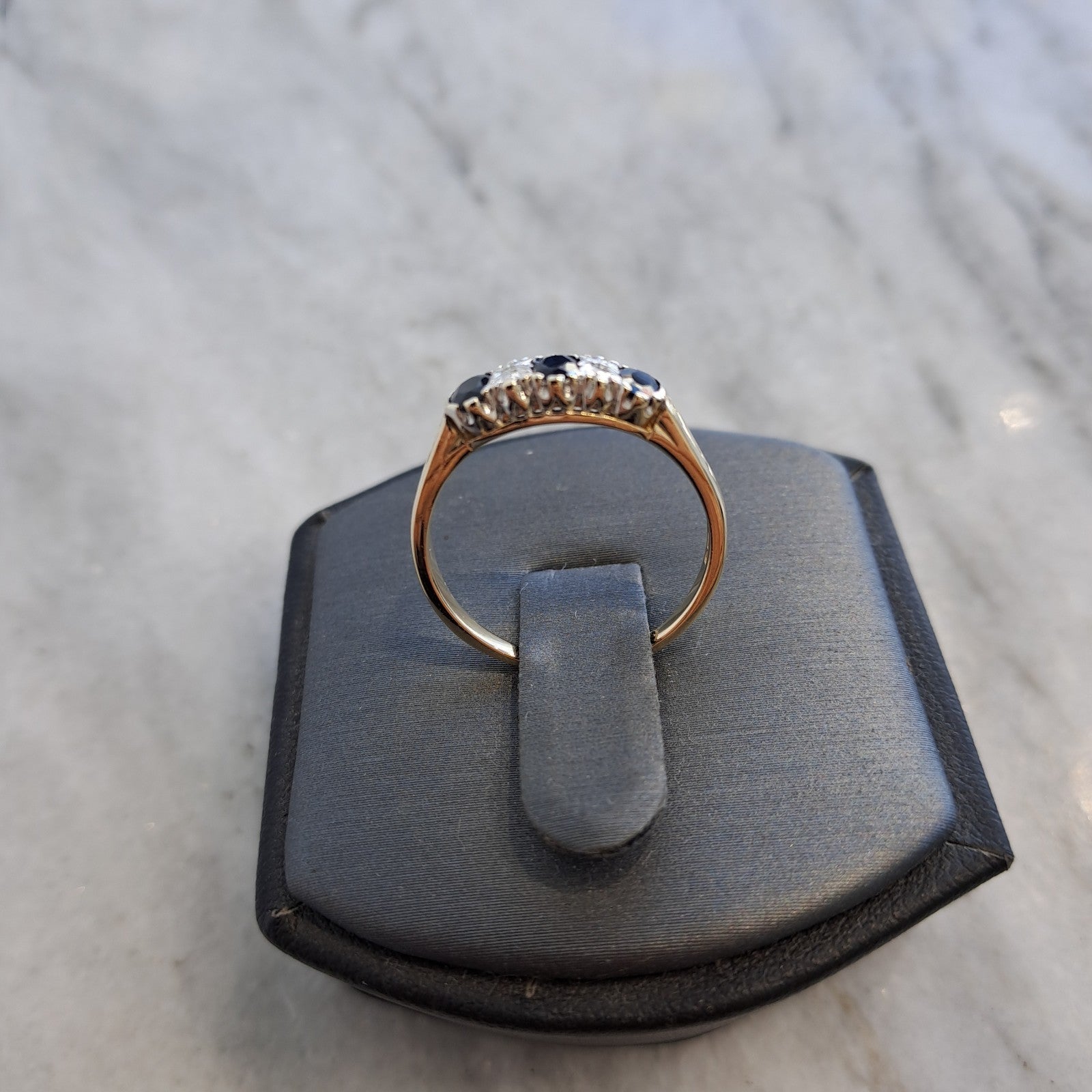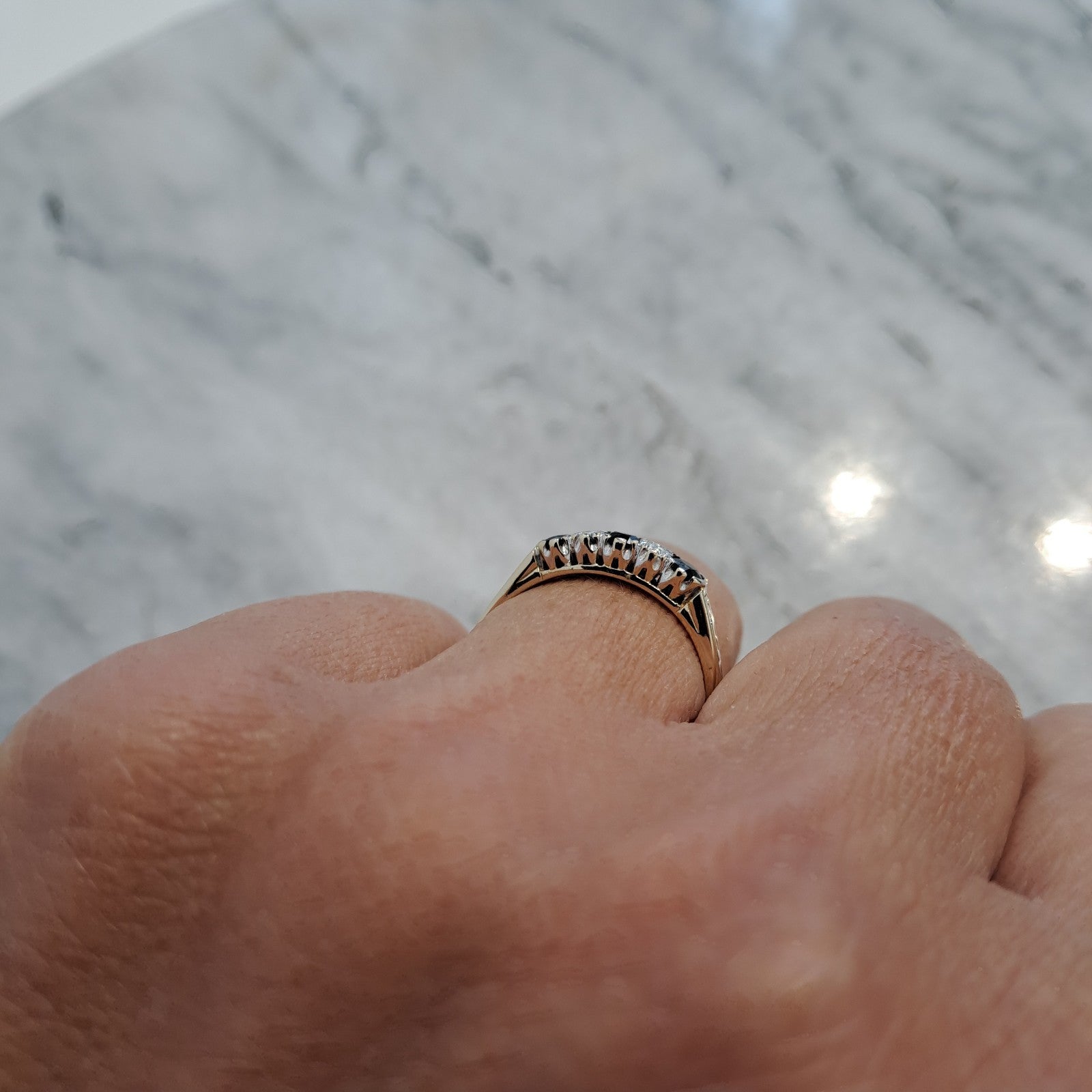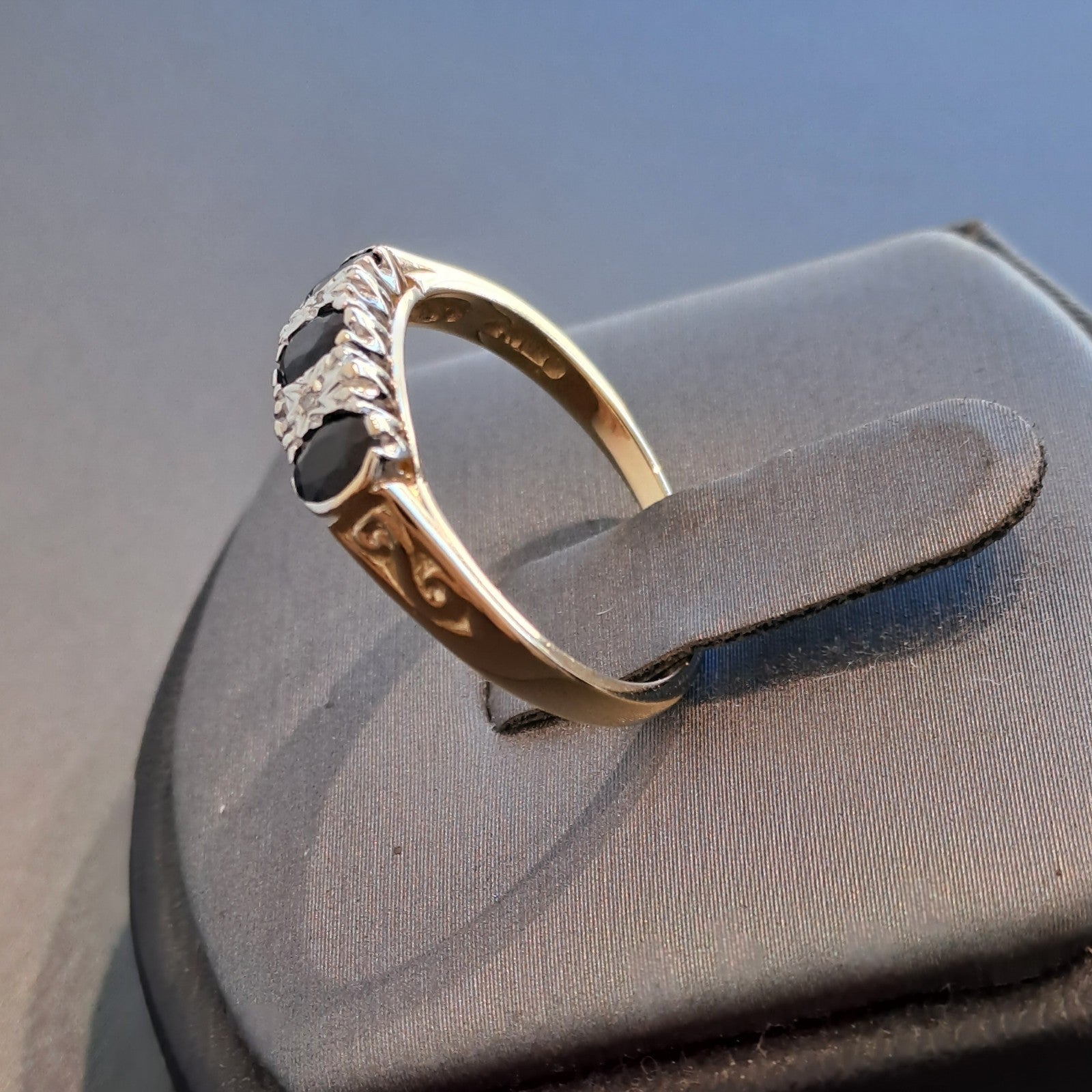 Sapphire and Diamond Five Stone Band Ring 9ct 375 Yellow Gold - Size O 1/2