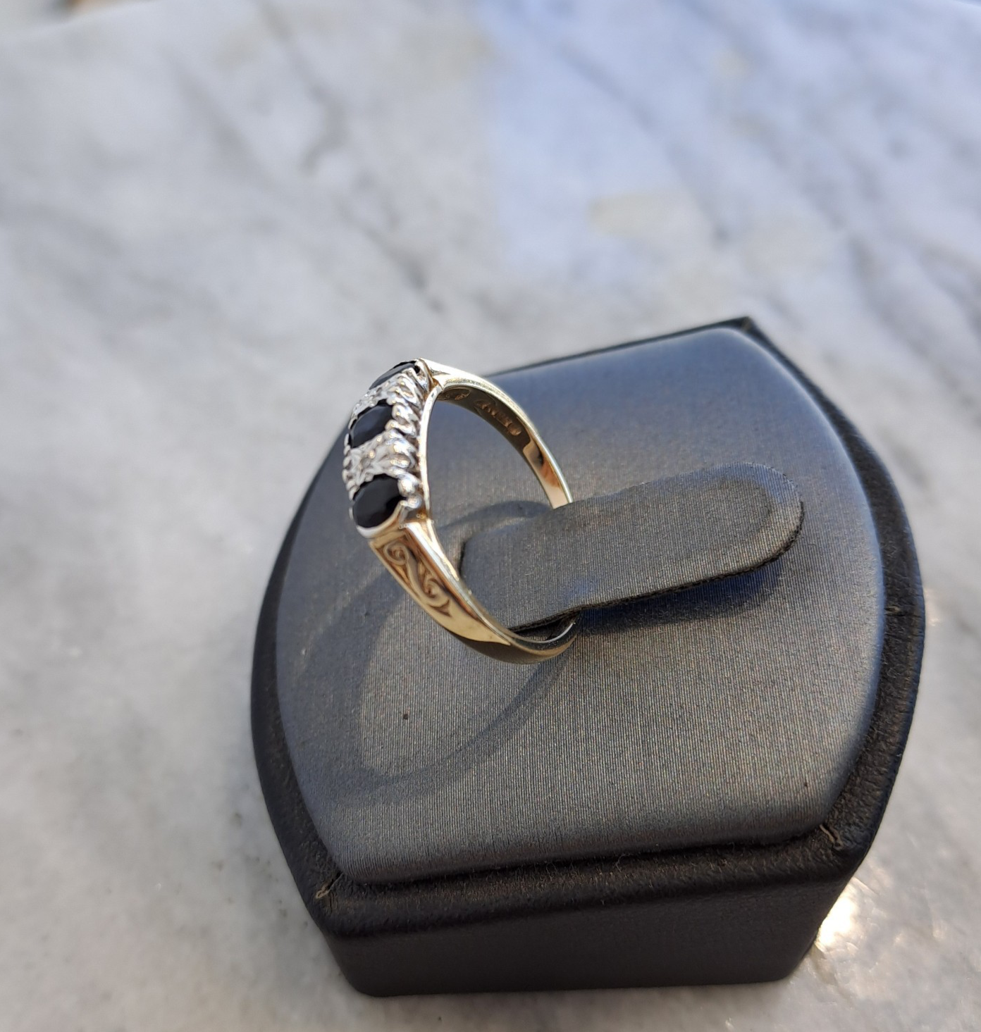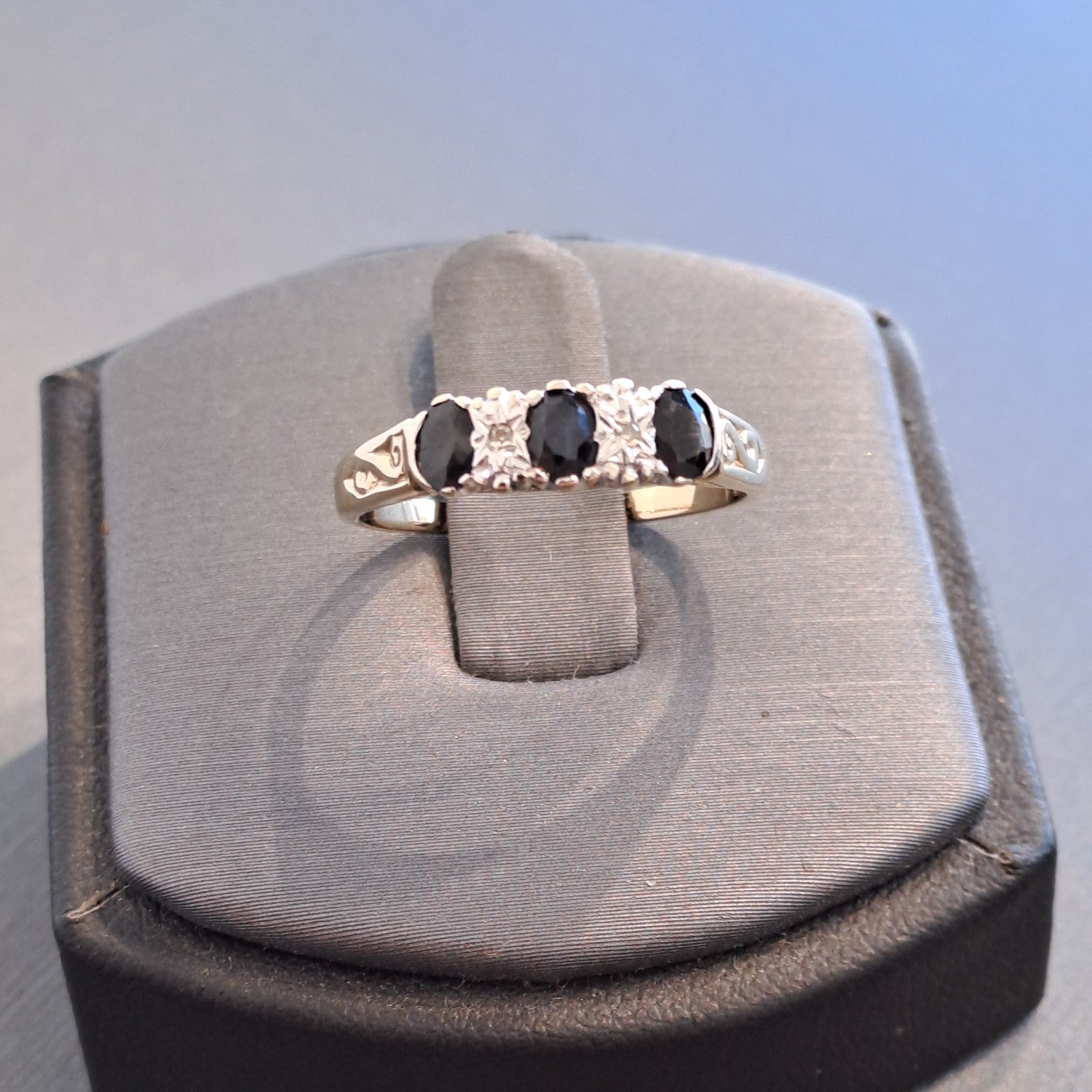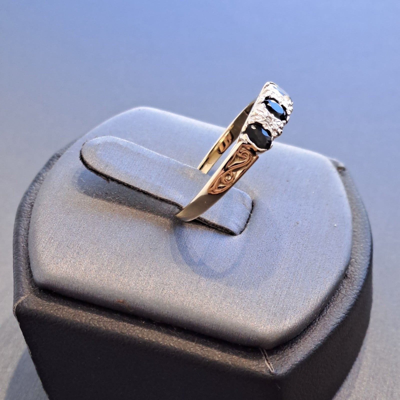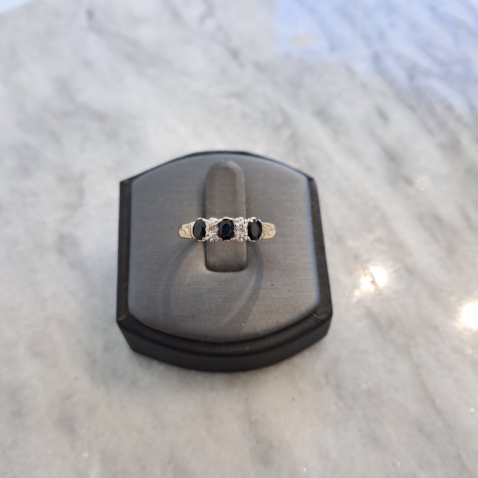 Sapphire and Diamond Five Stone Band Ring 9ct 375 Yellow Gold - Size O 1/2
