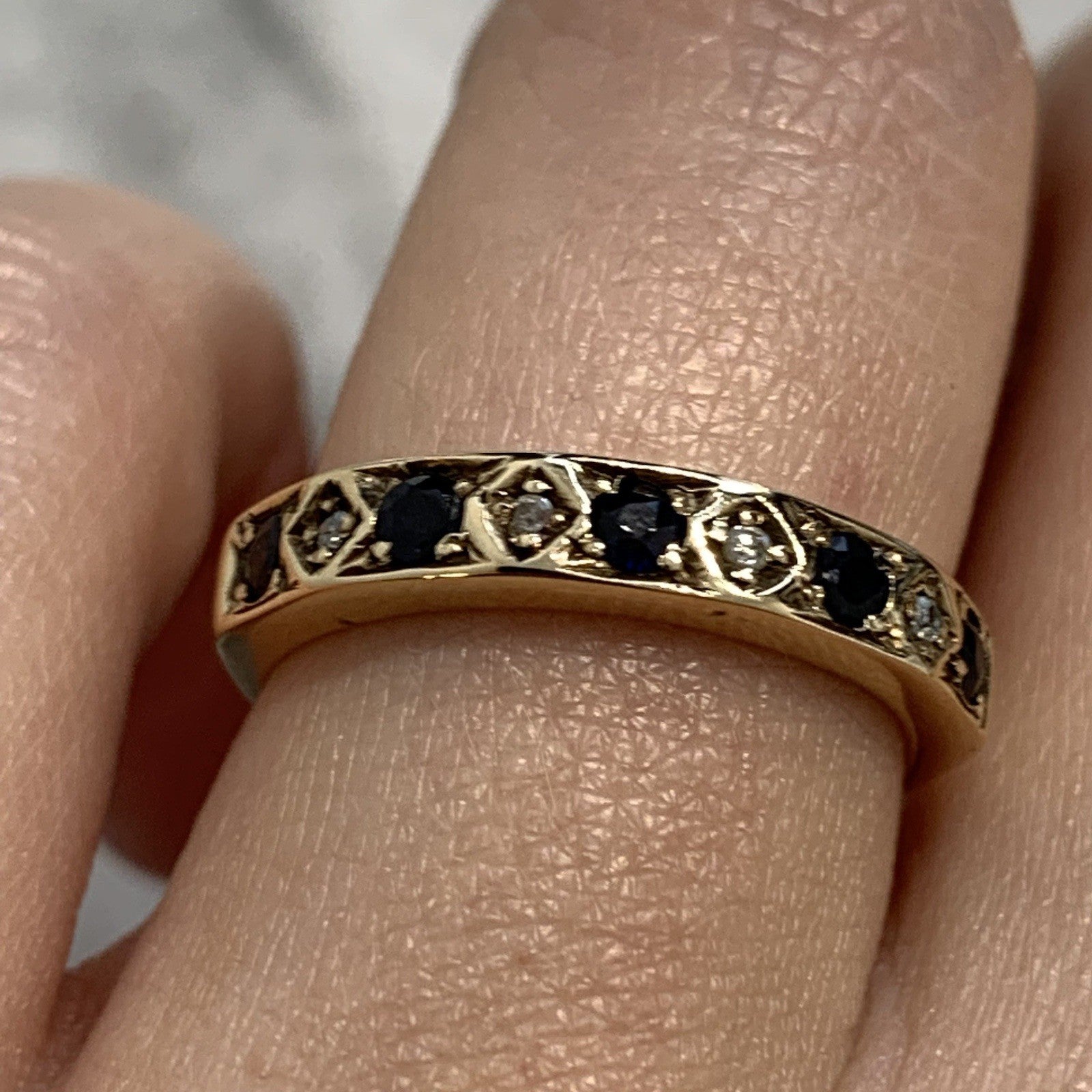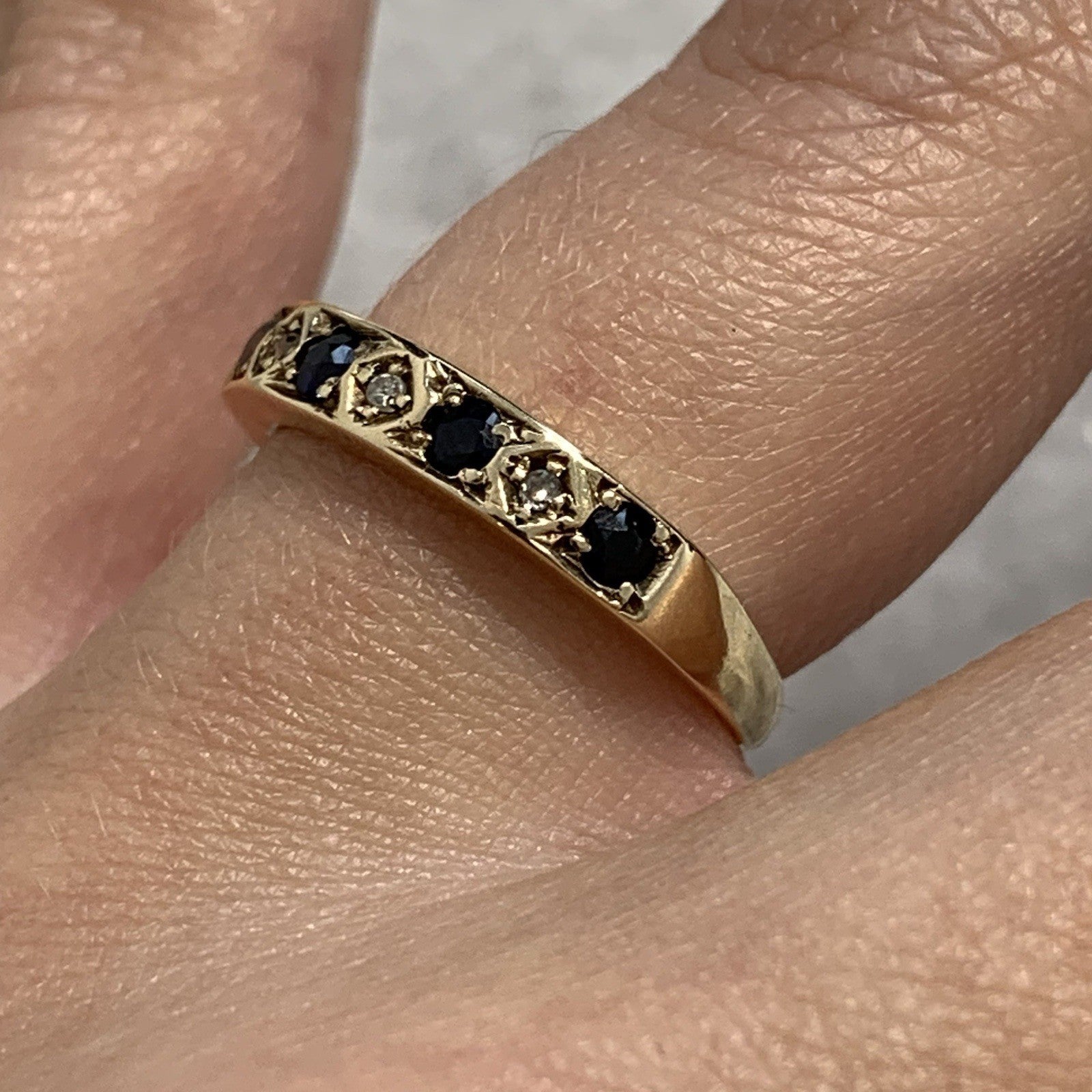 Sapphire & Diamond Half Eternity Ring 9ct 375 Yellow Gold - Size L