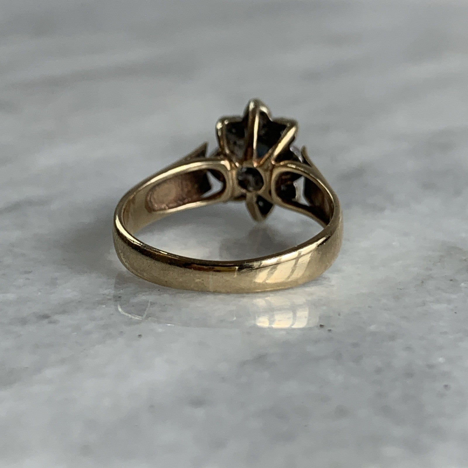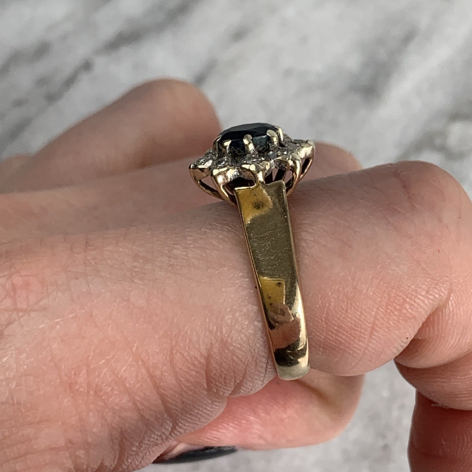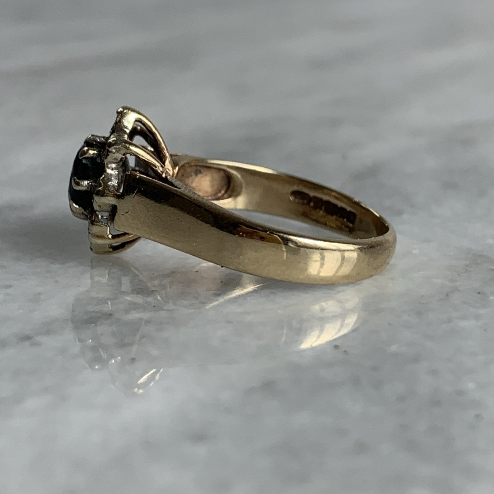 Sapphire & Diamond Halo Flower Cluster Ring 9ct 375 Yellow Gold - Size N