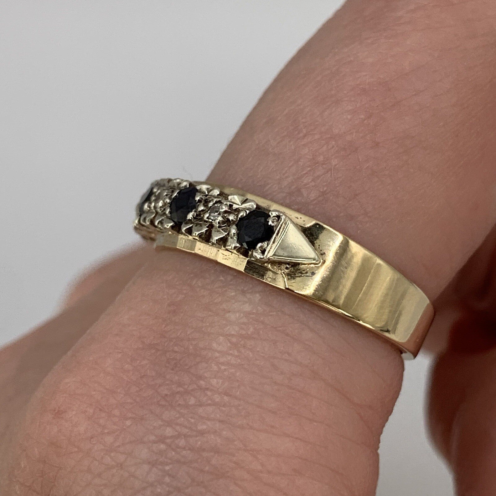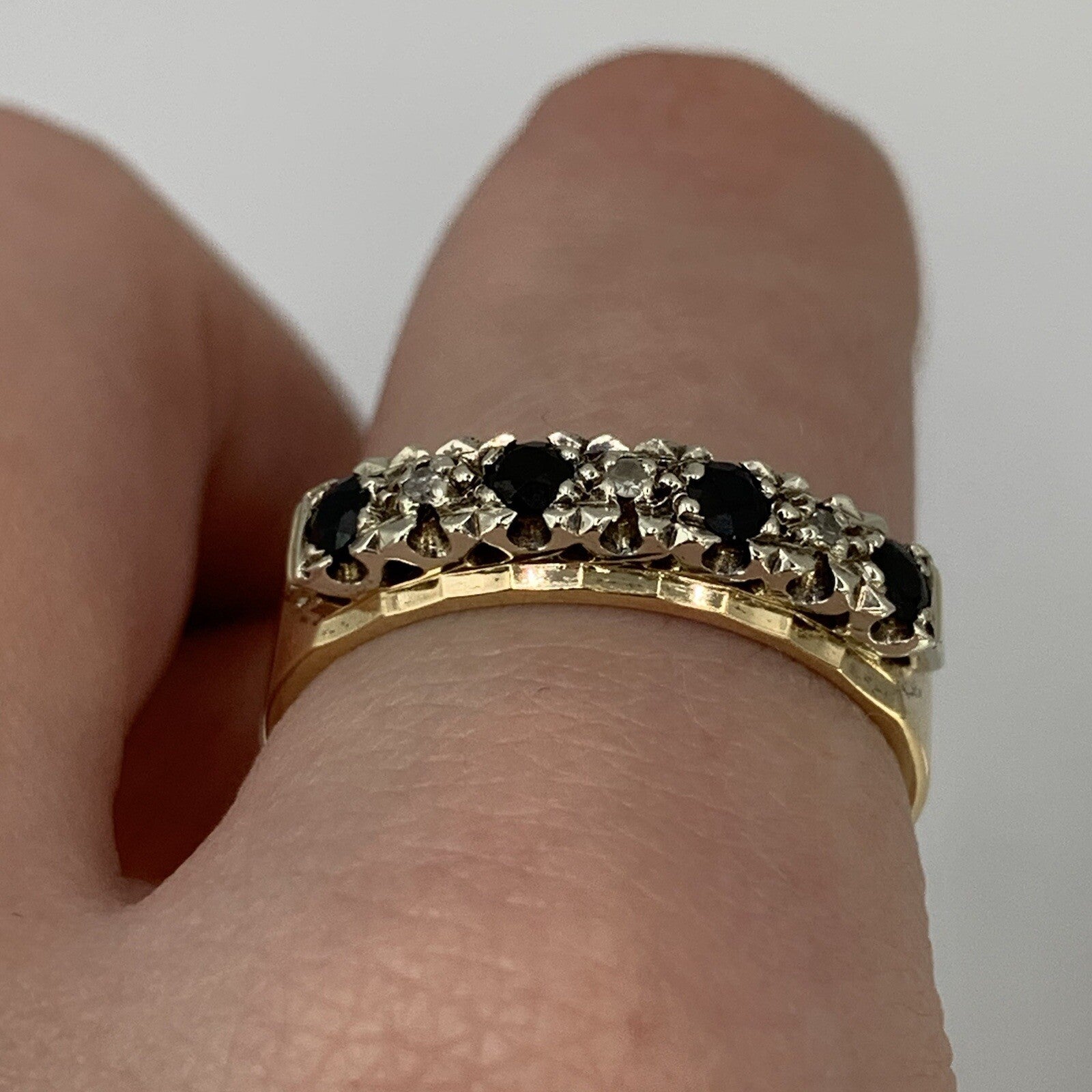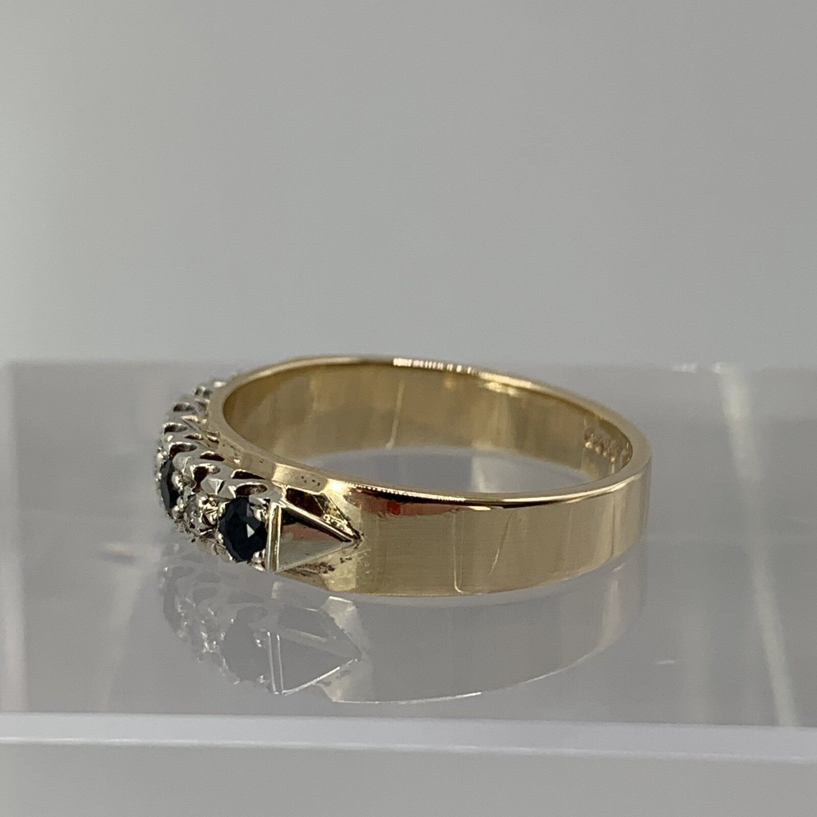 Sapphire & Diamond Ring 9 ct Gold Half Eternity Band- Size R