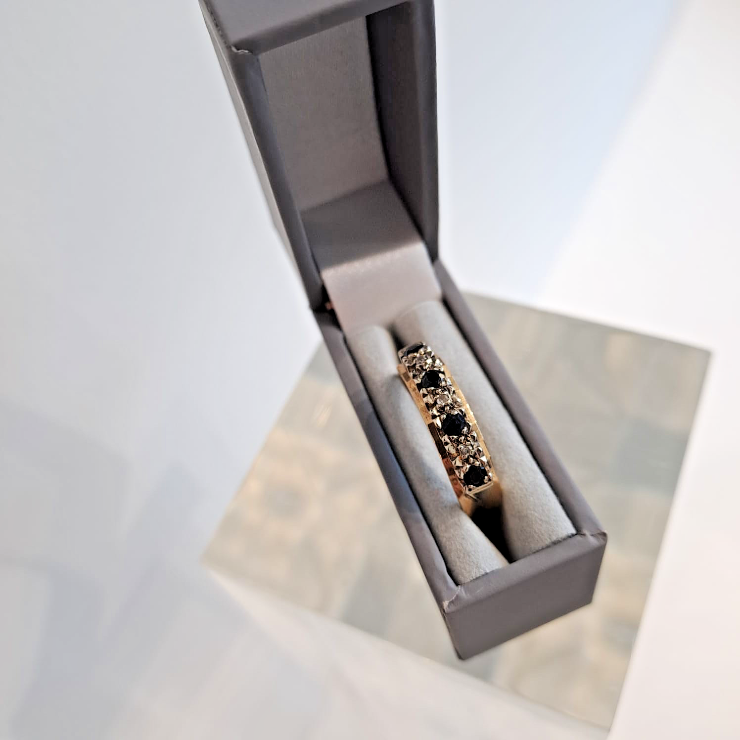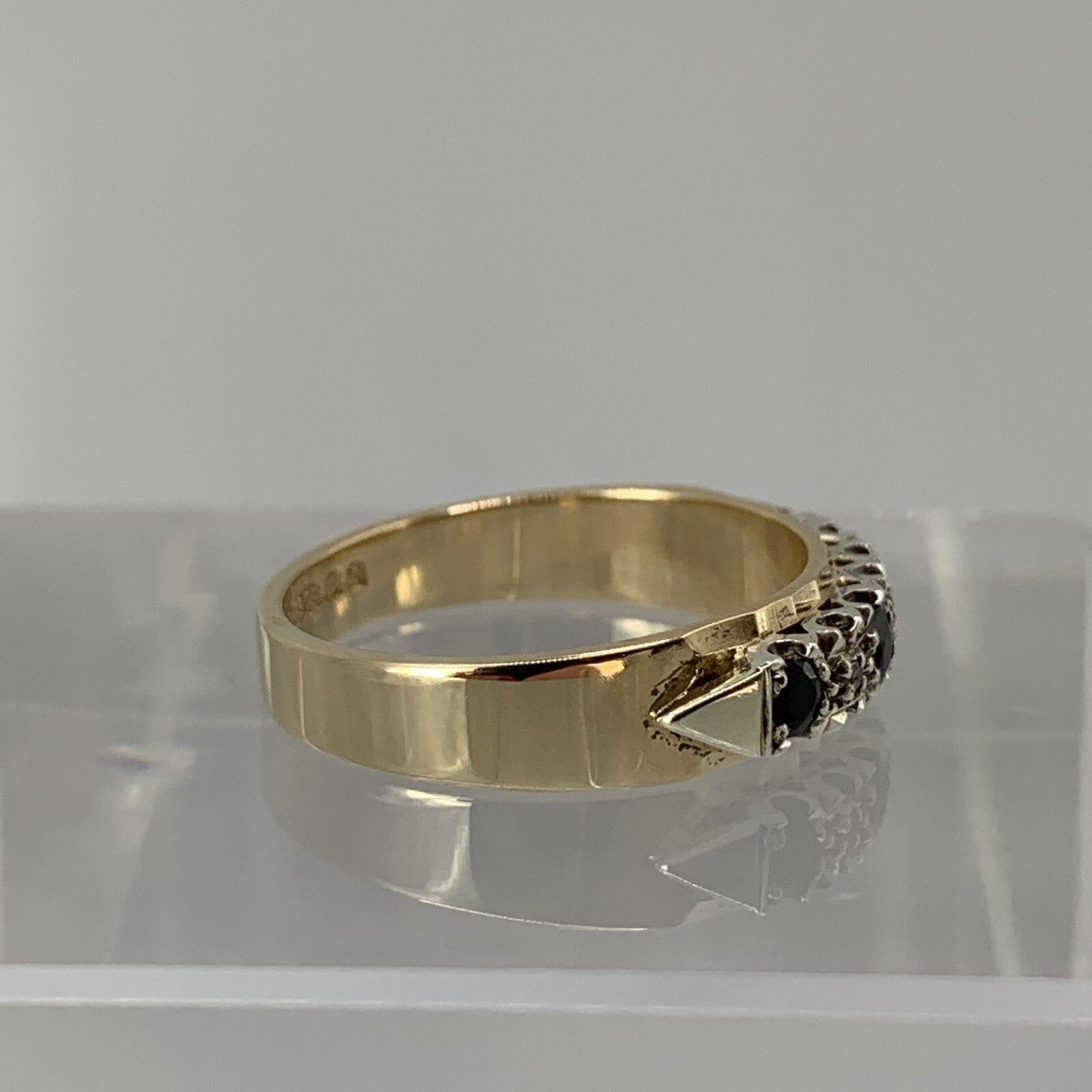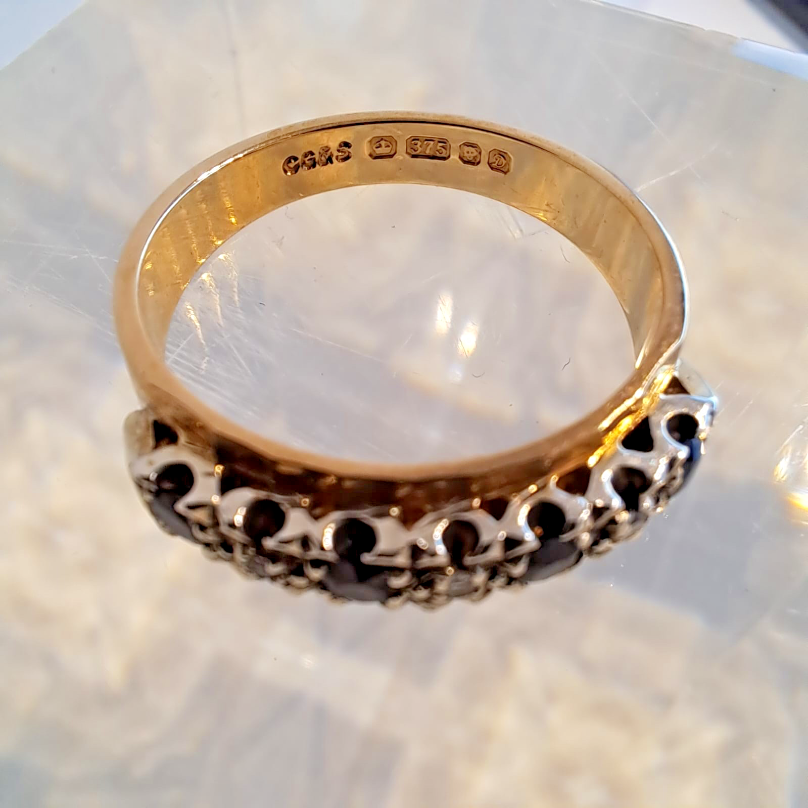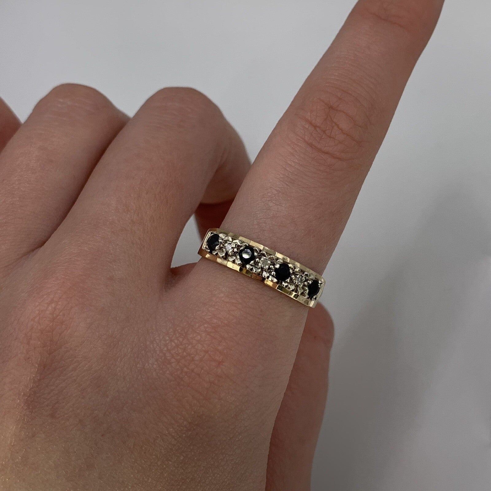 Sapphire & Diamond Ring 9 ct Gold Half Eternity Band- Size R