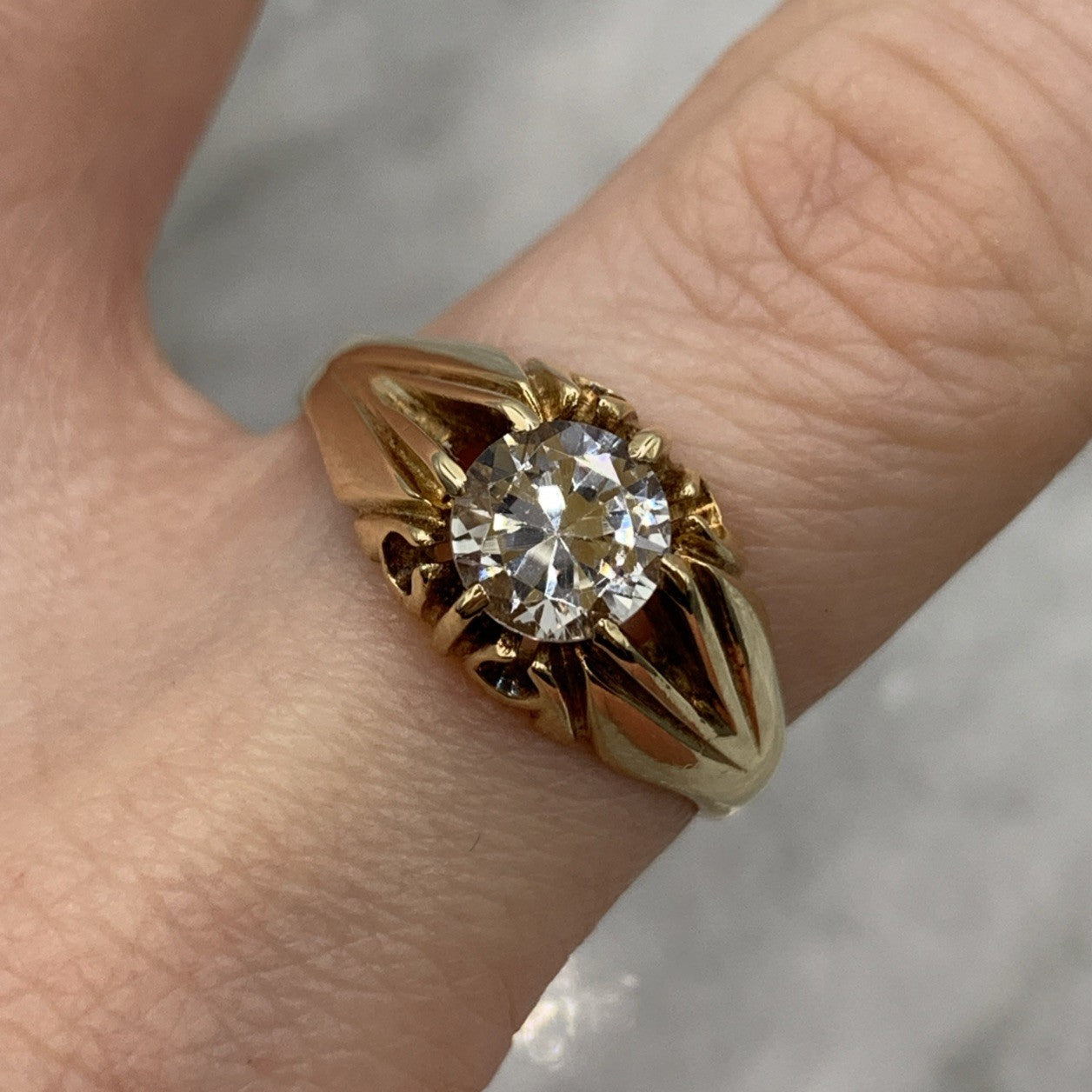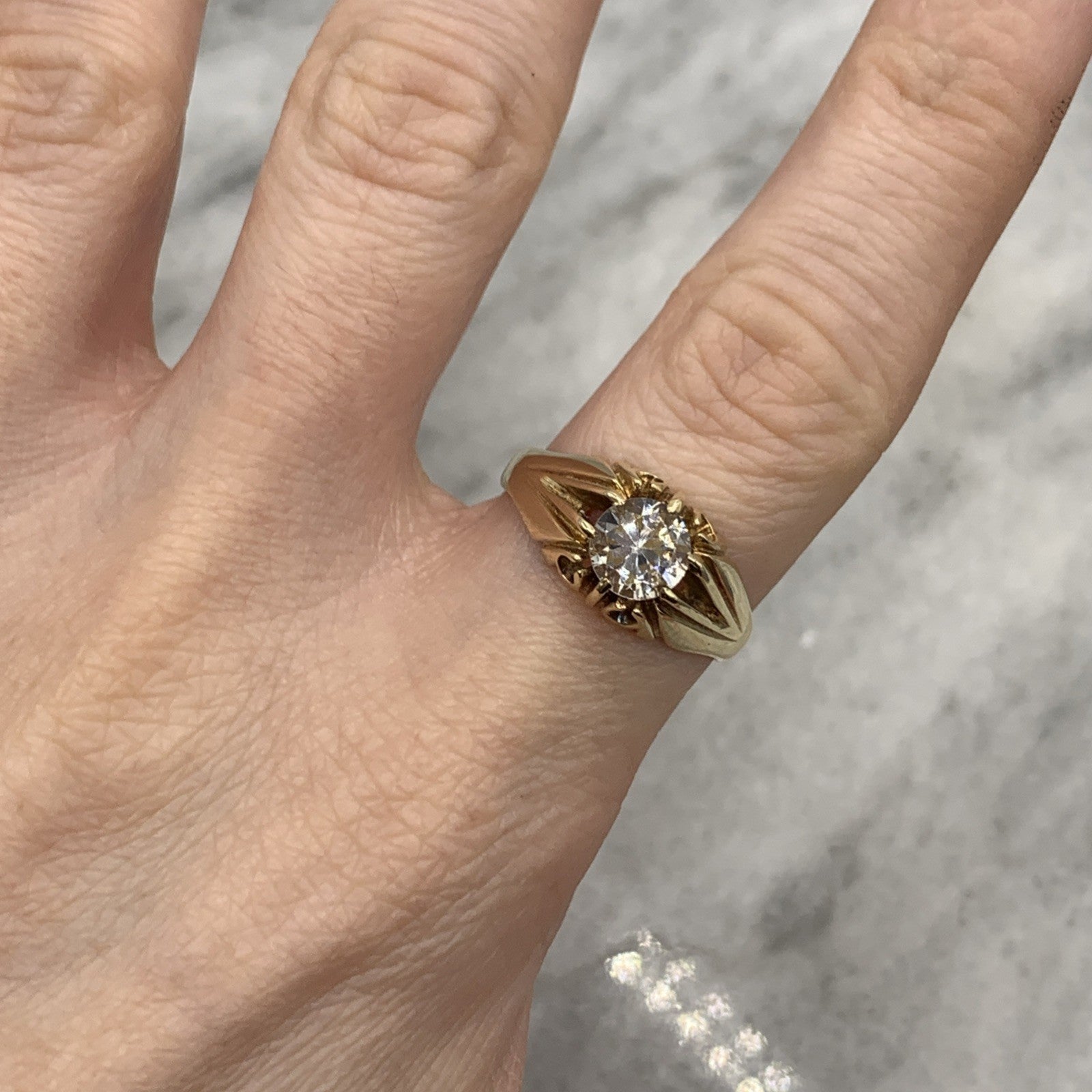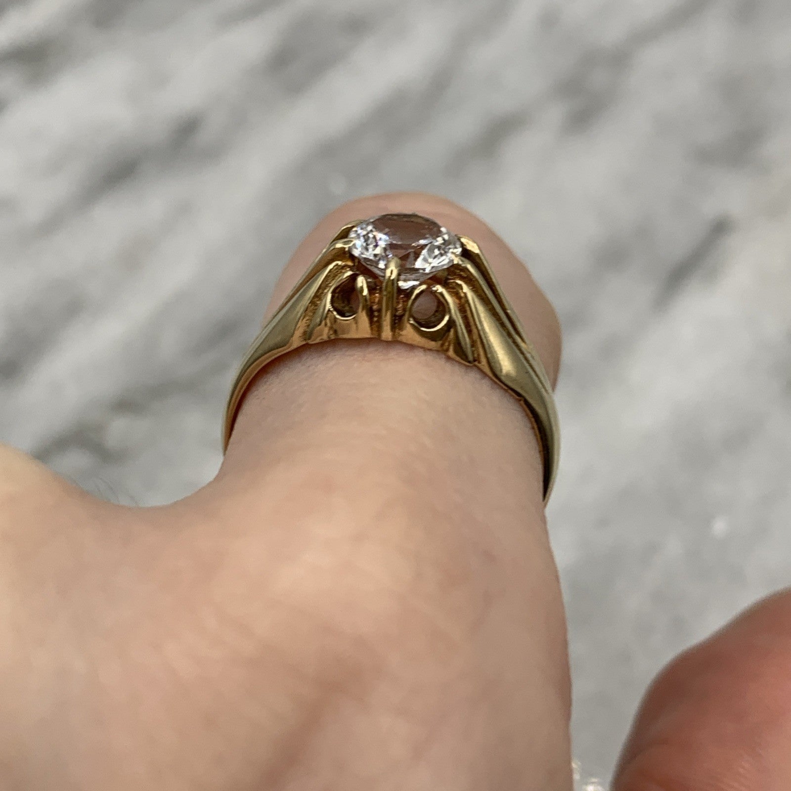 White Topaz Gypsy Style Solitaire Ring 9ct 375 Yellow Gold - Size Q