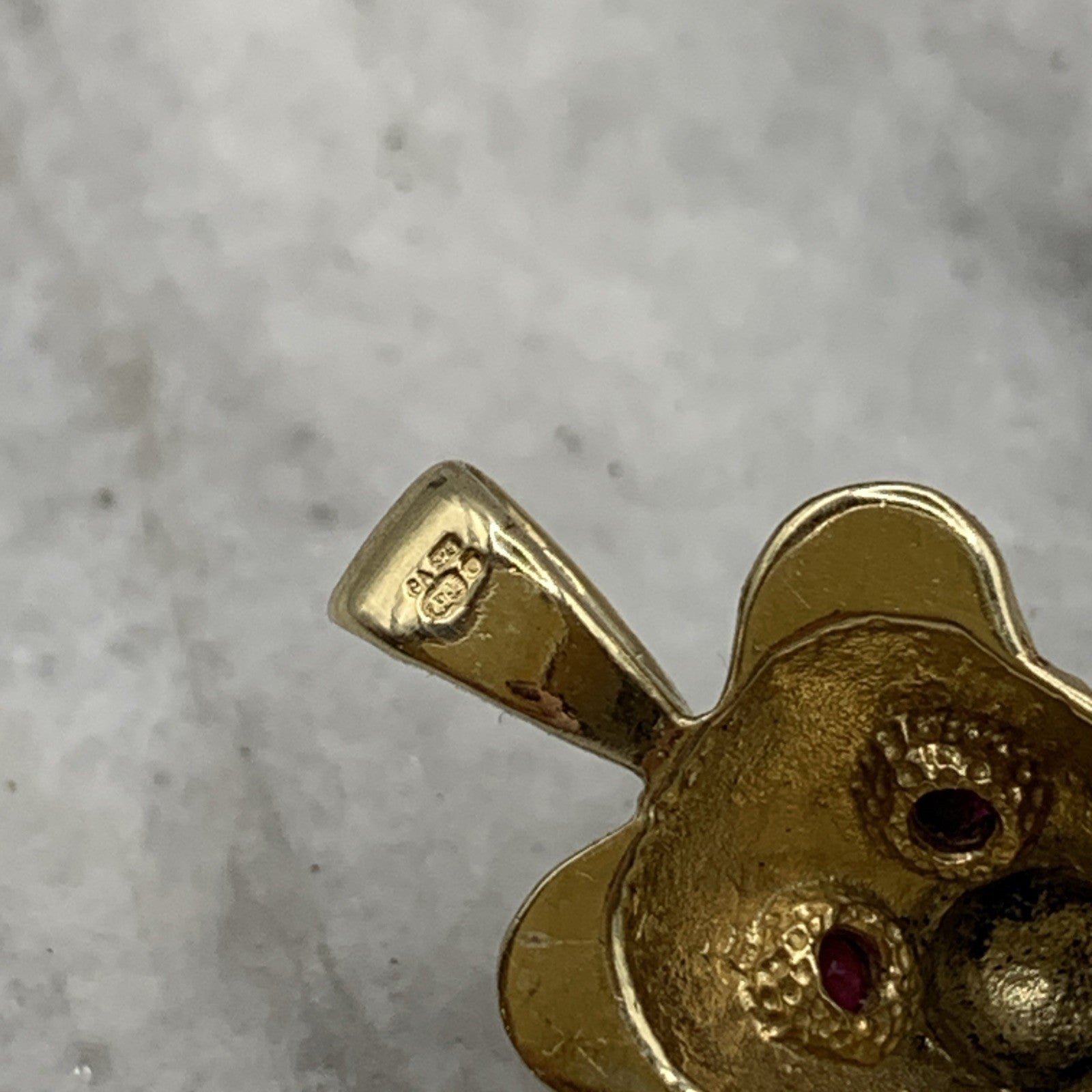9 ct Gold Teddy Bear Ruby Eye Pendant 9ct 375 Yellow Gold