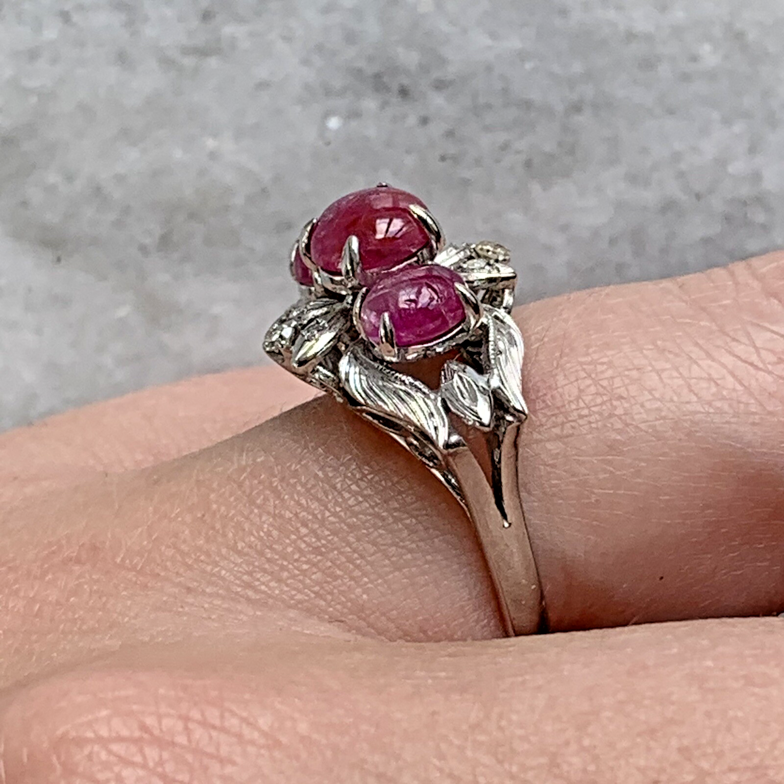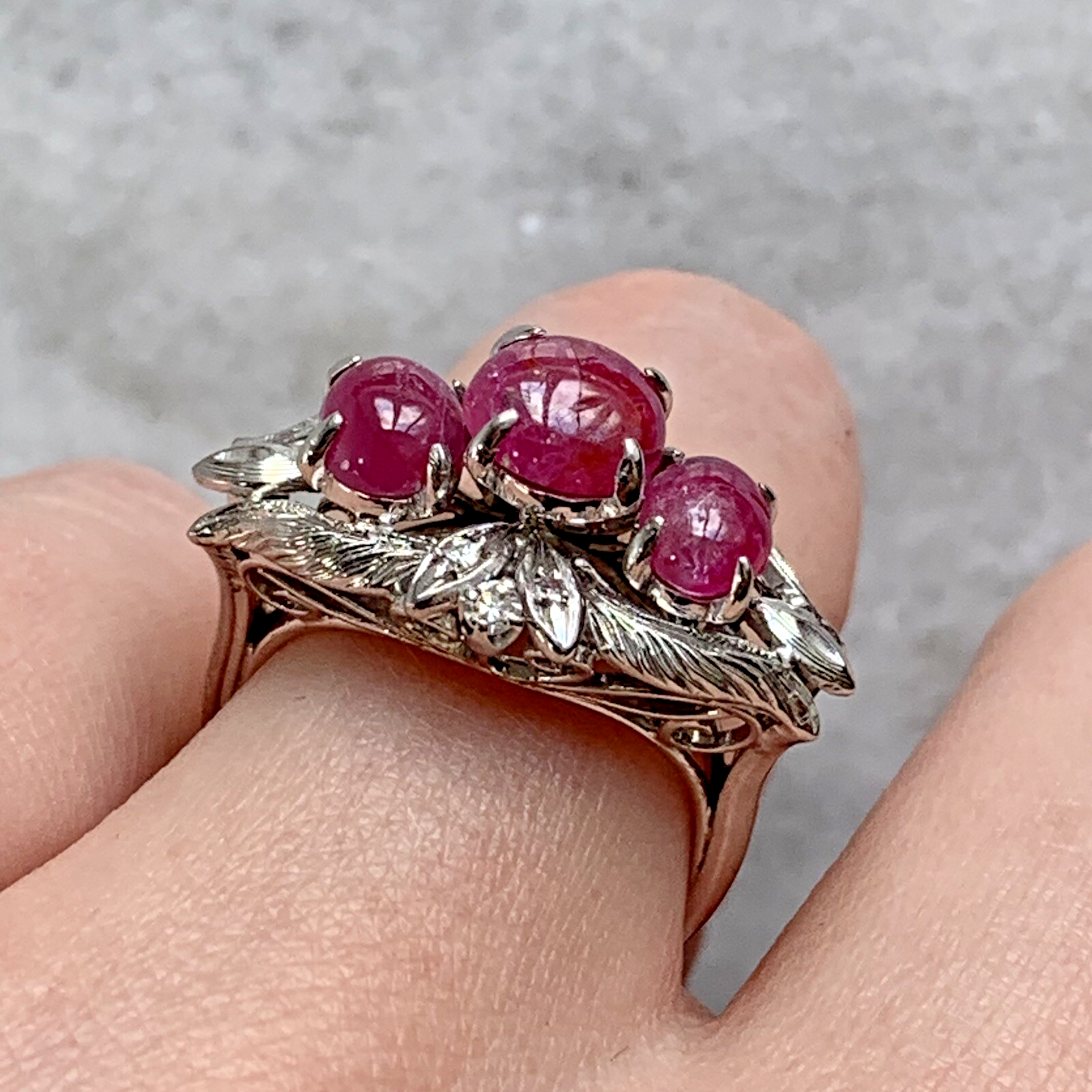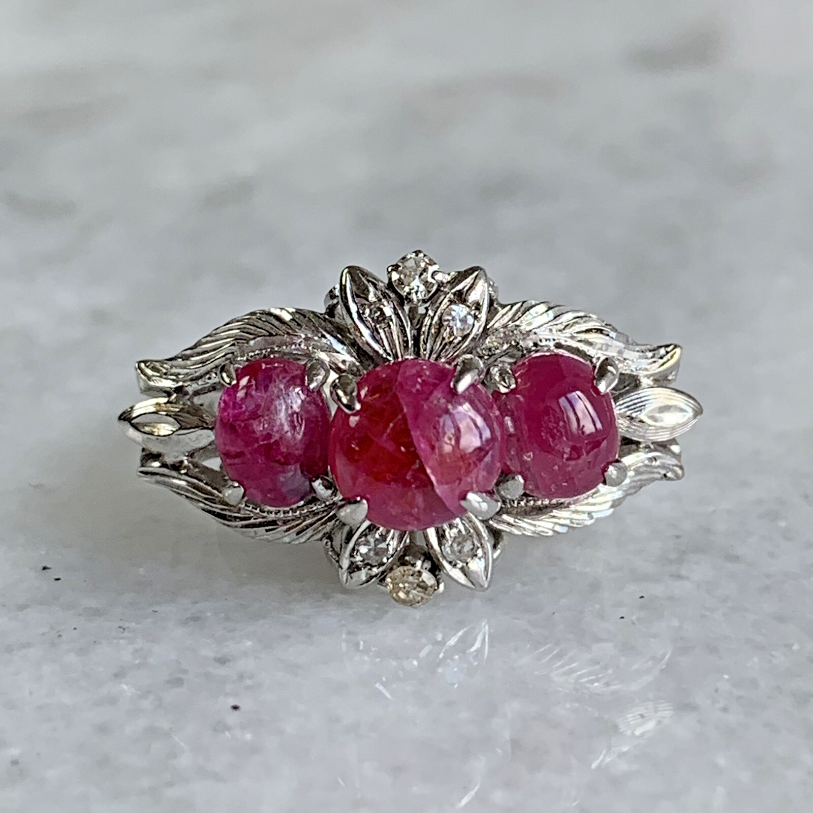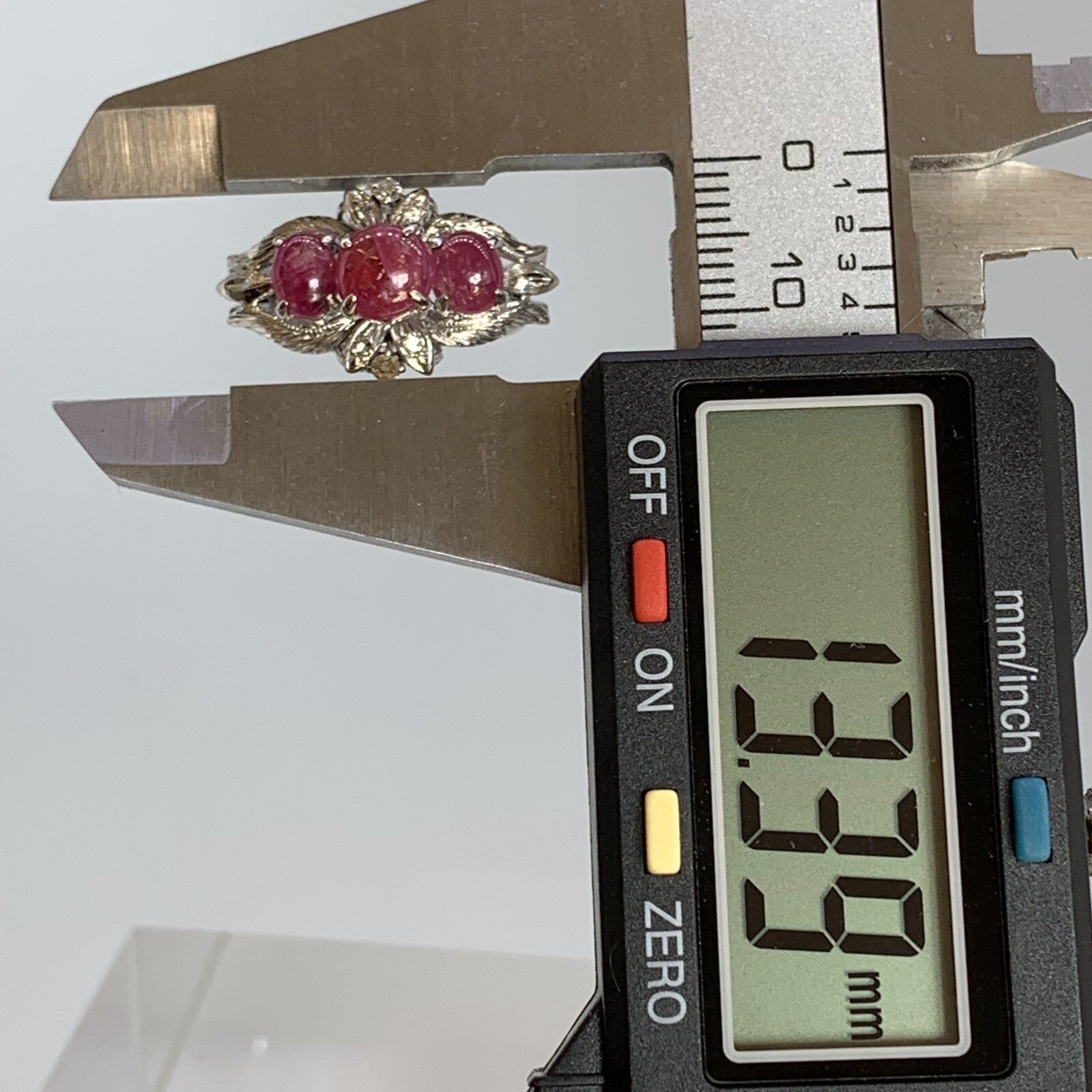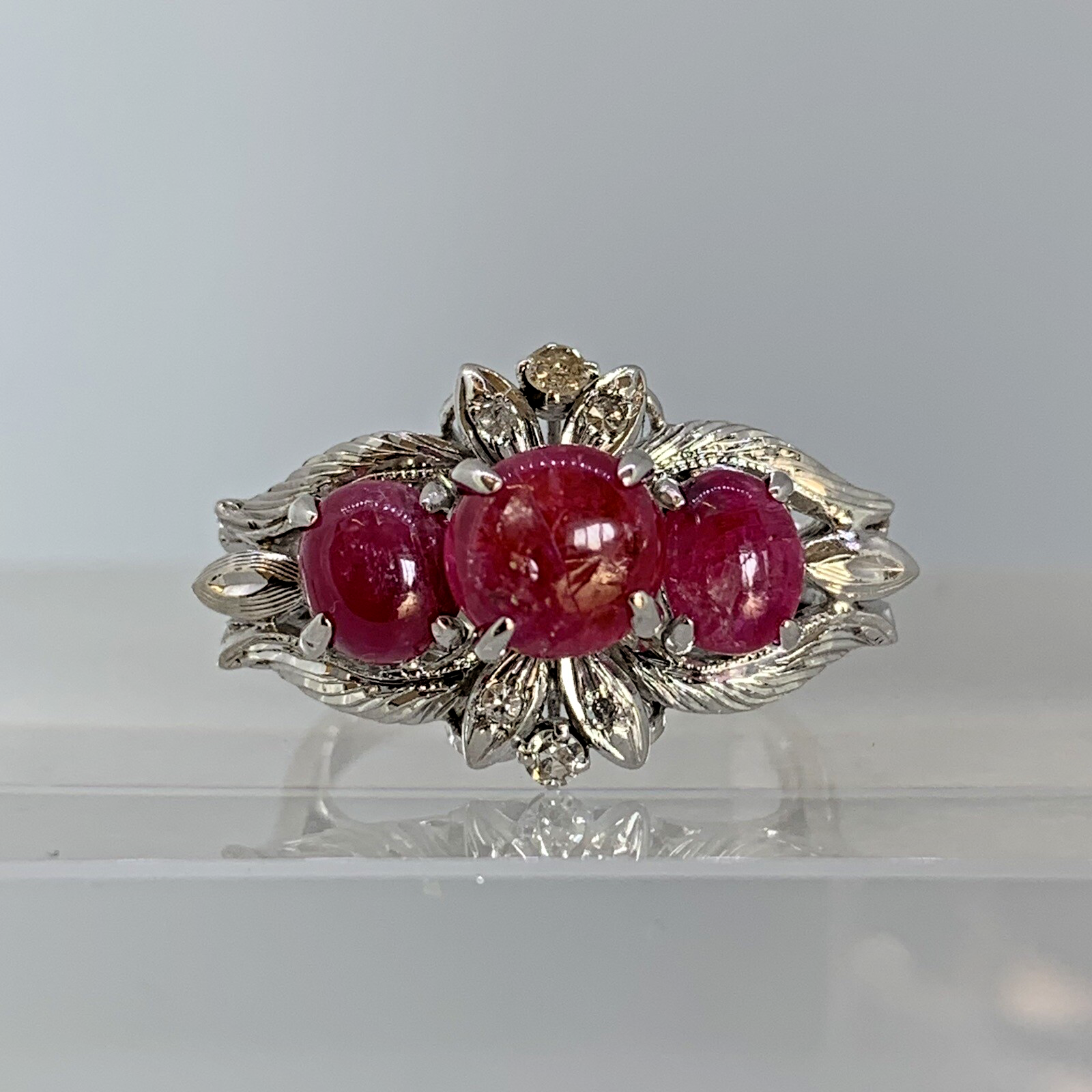 Ruby & Diamond 18 ct Gold Cabochon Bespoke Ornate White Gold - Size J