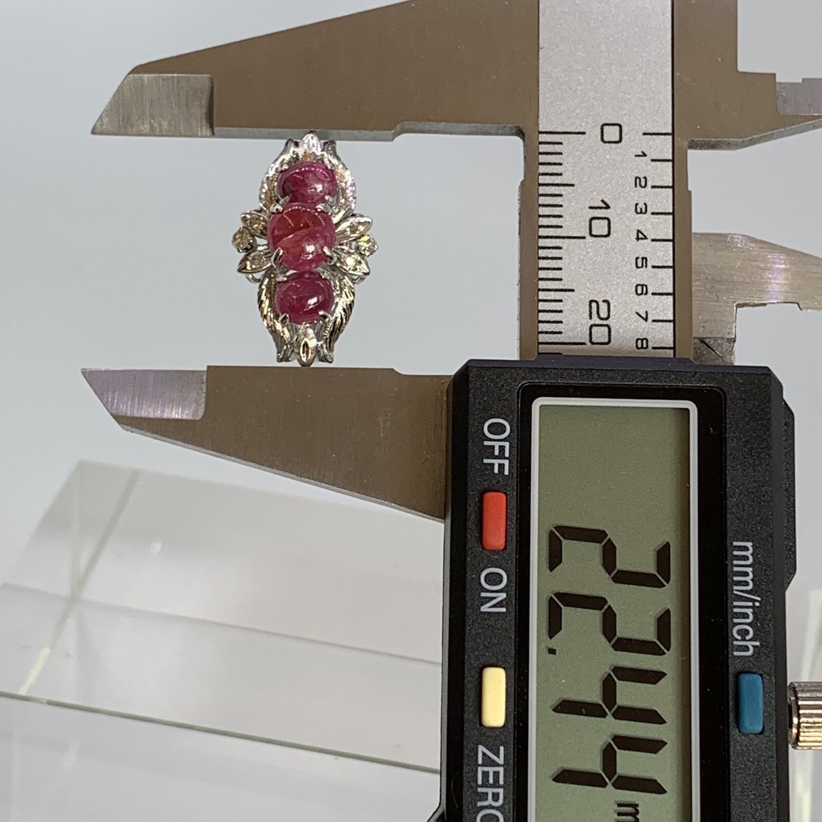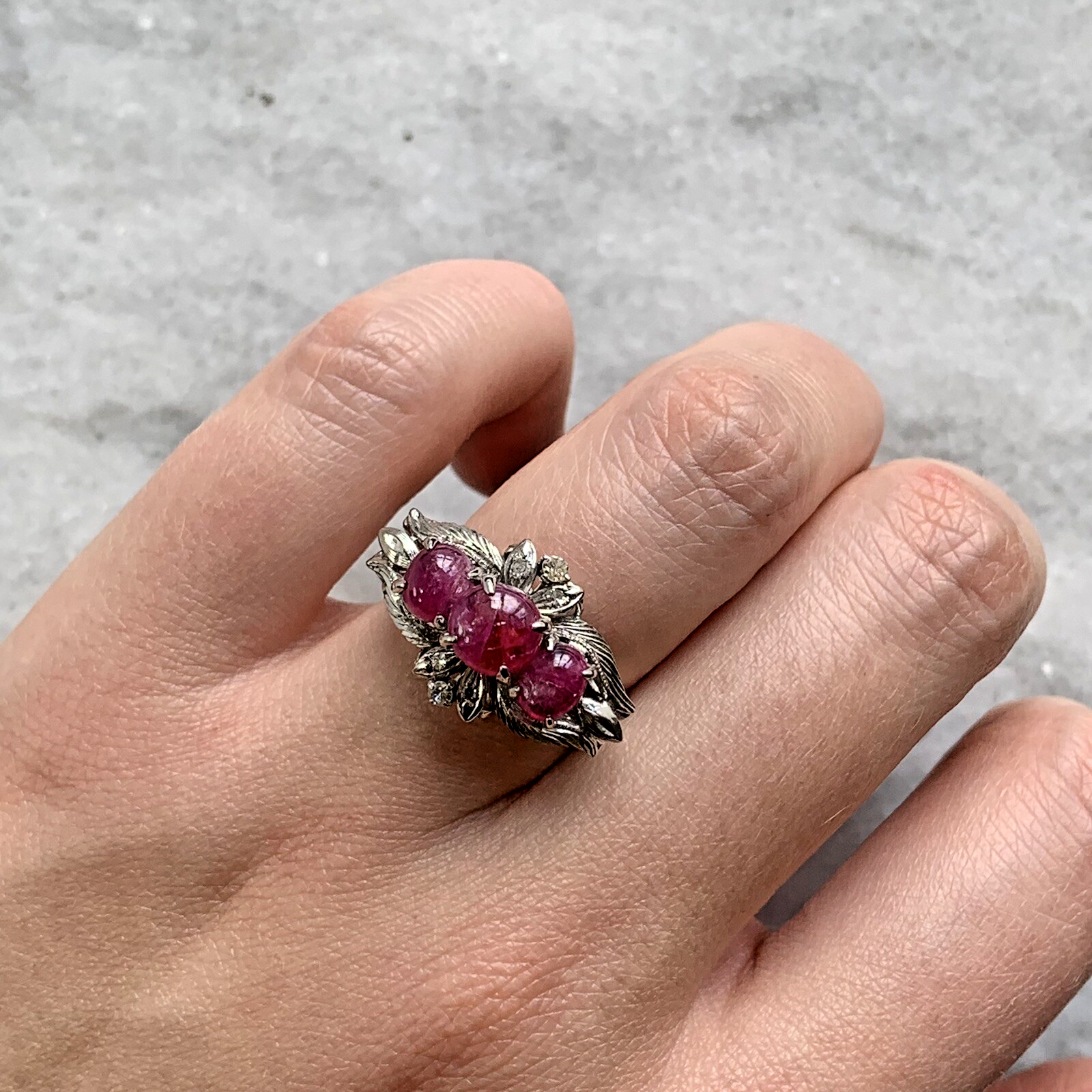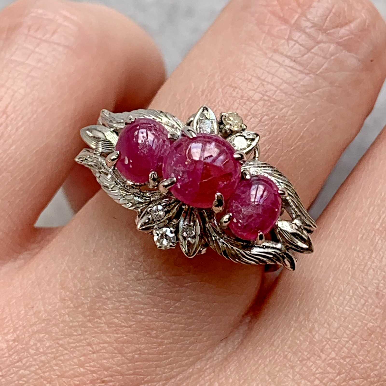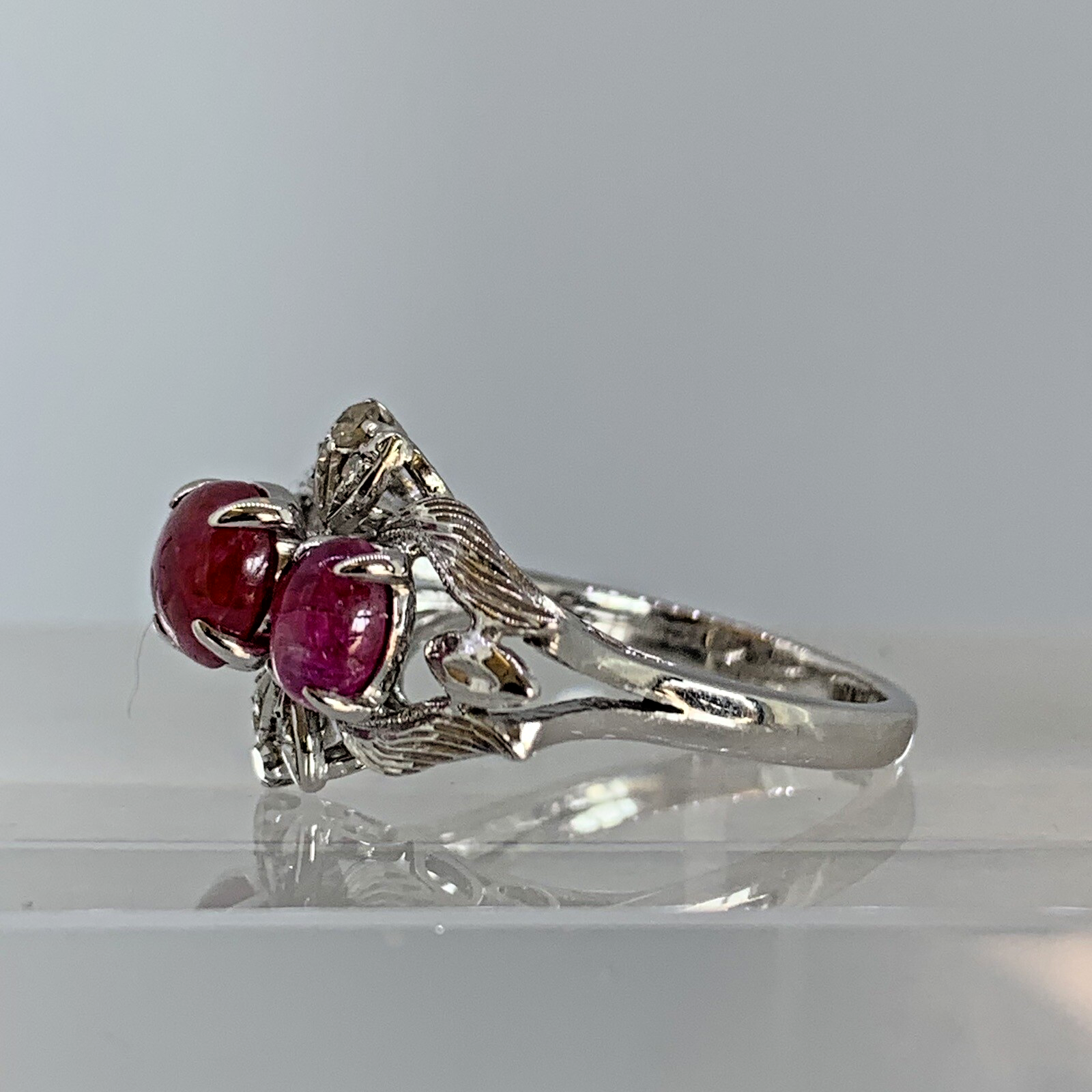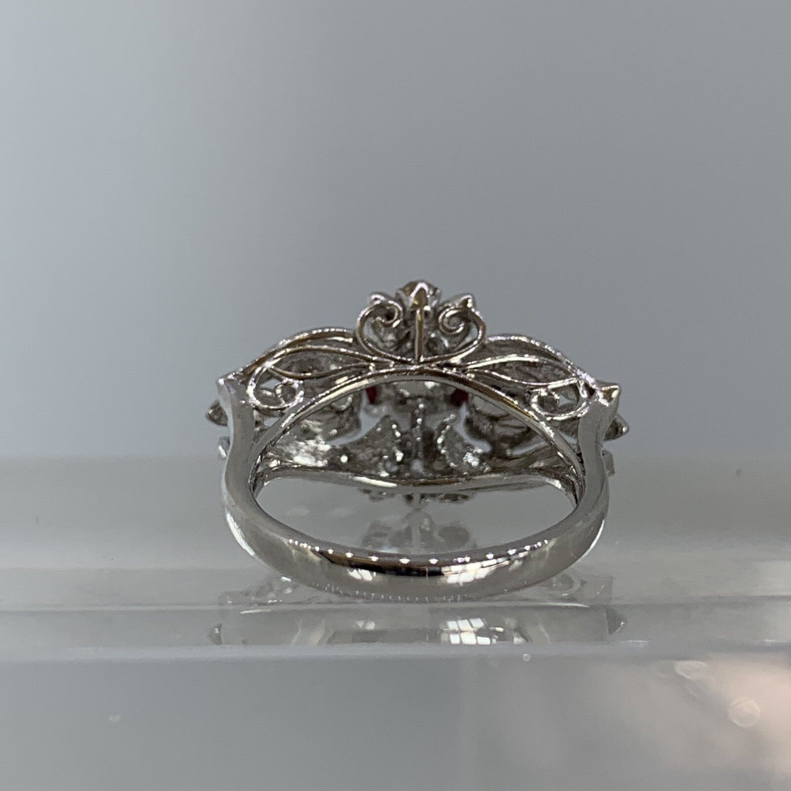 Ruby & Diamond 18 ct Gold Cabochon Bespoke Ornate White Gold - Size J