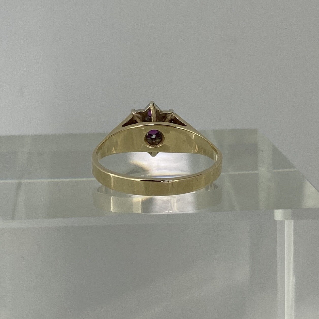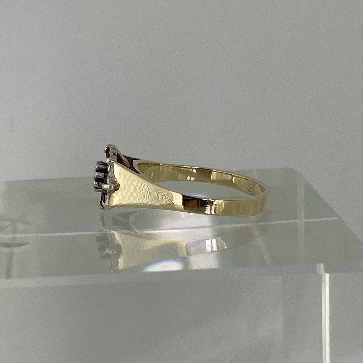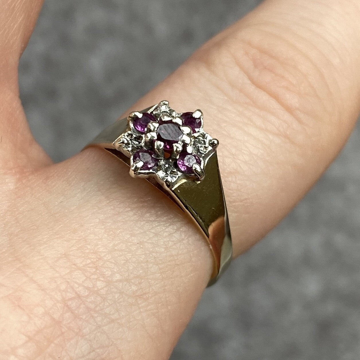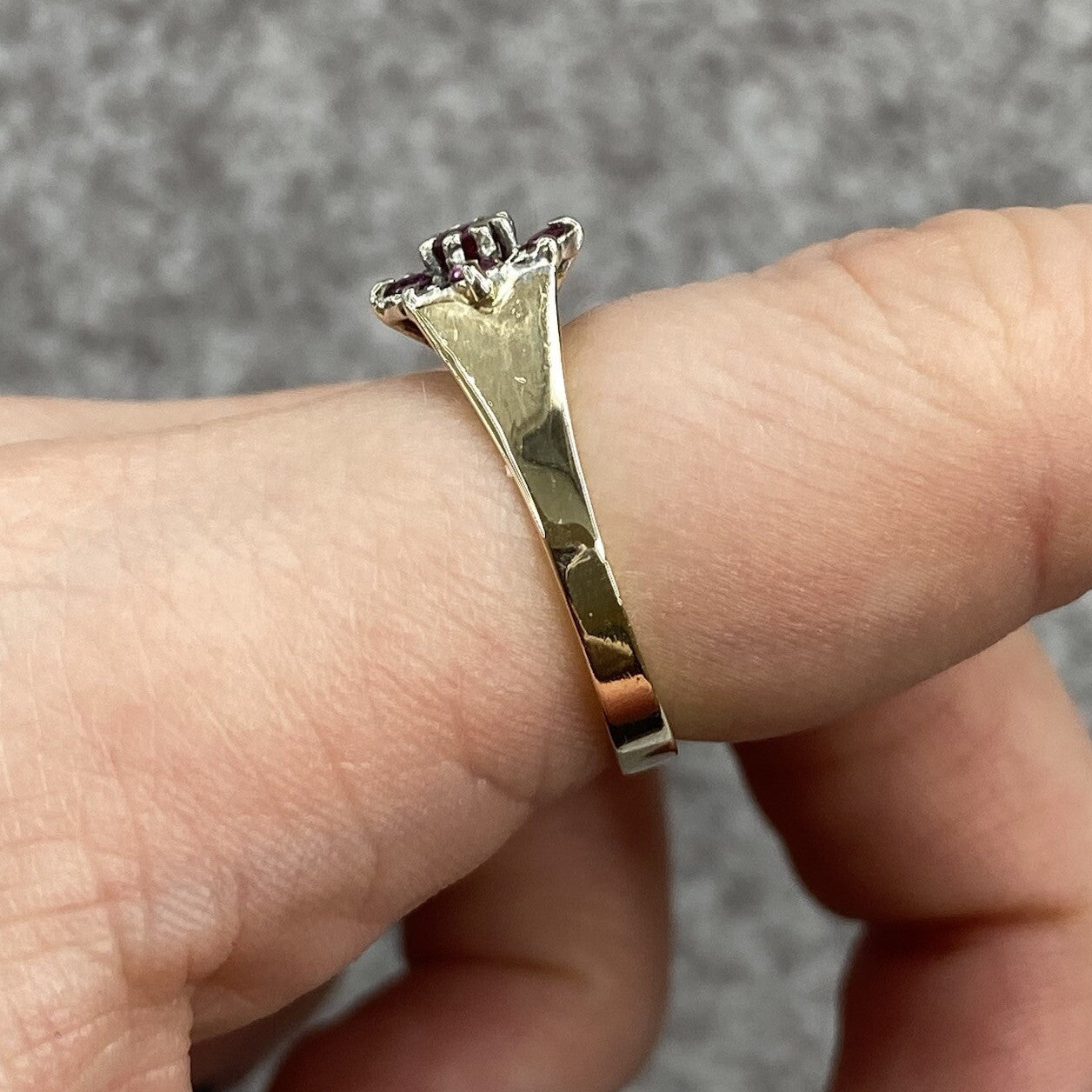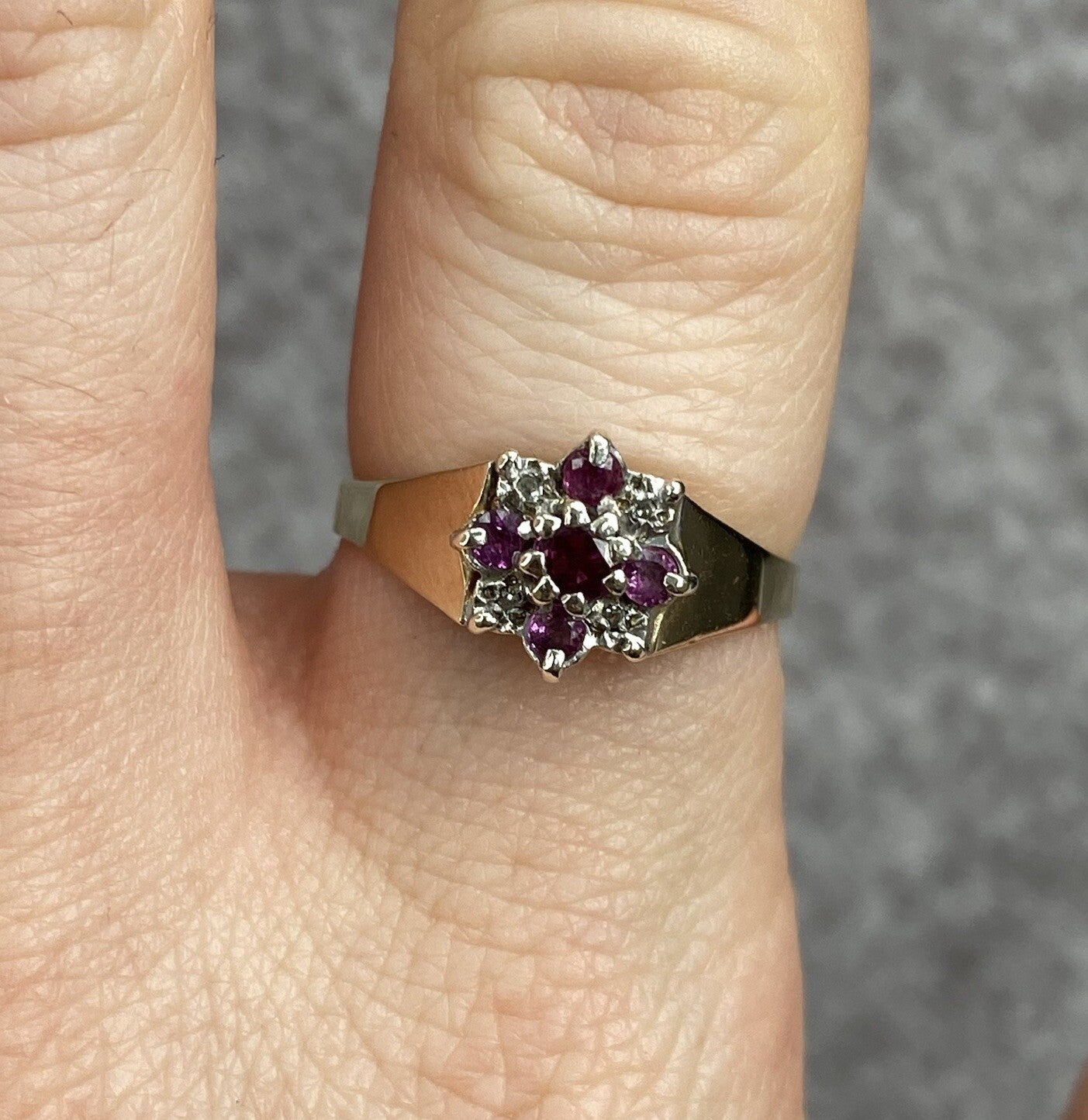 Ruby & Diamond Daisy Flower Cluster Ring 9ct 375 Yellow Gold - Size N