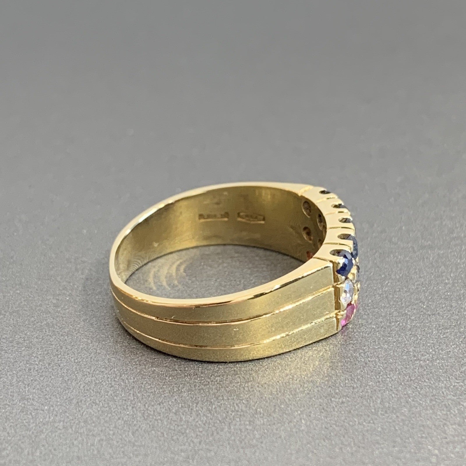 18 ct Gold Ring Sapphire, Ruby & CZ Cluster Band Yellow Gold - Size M 1/2