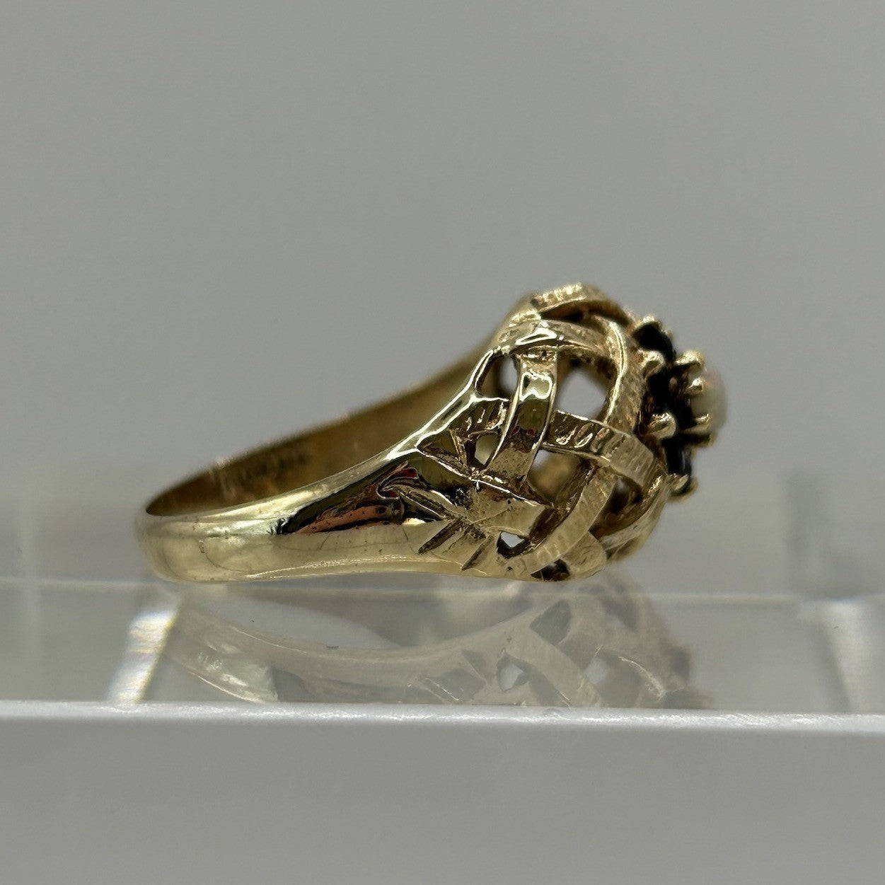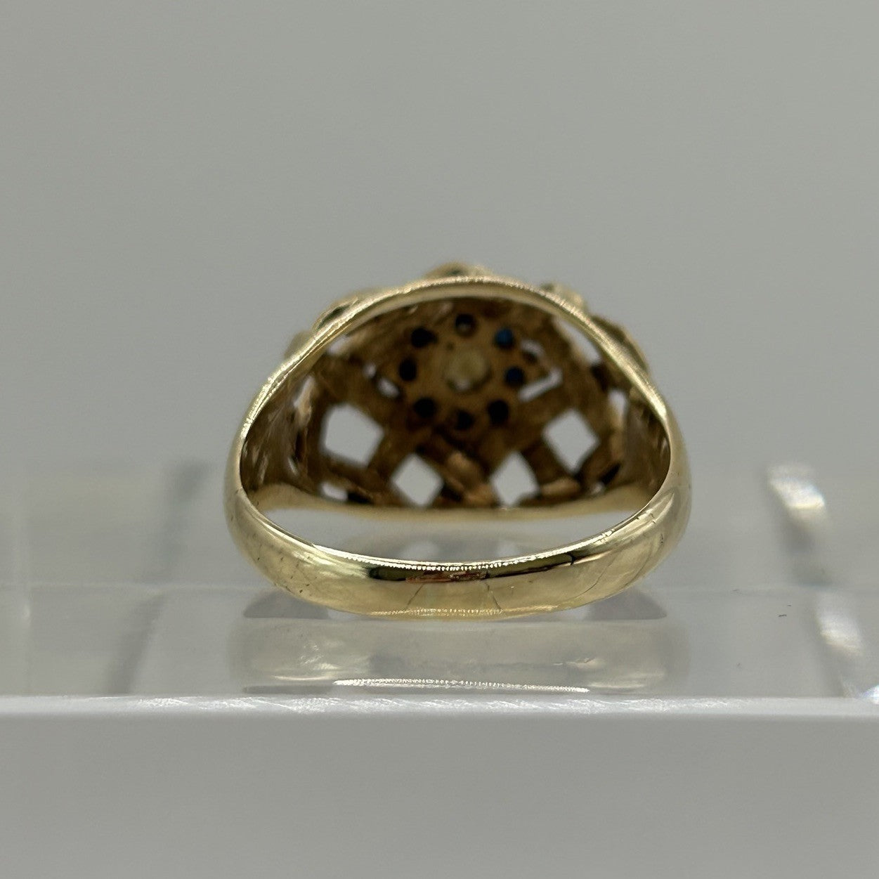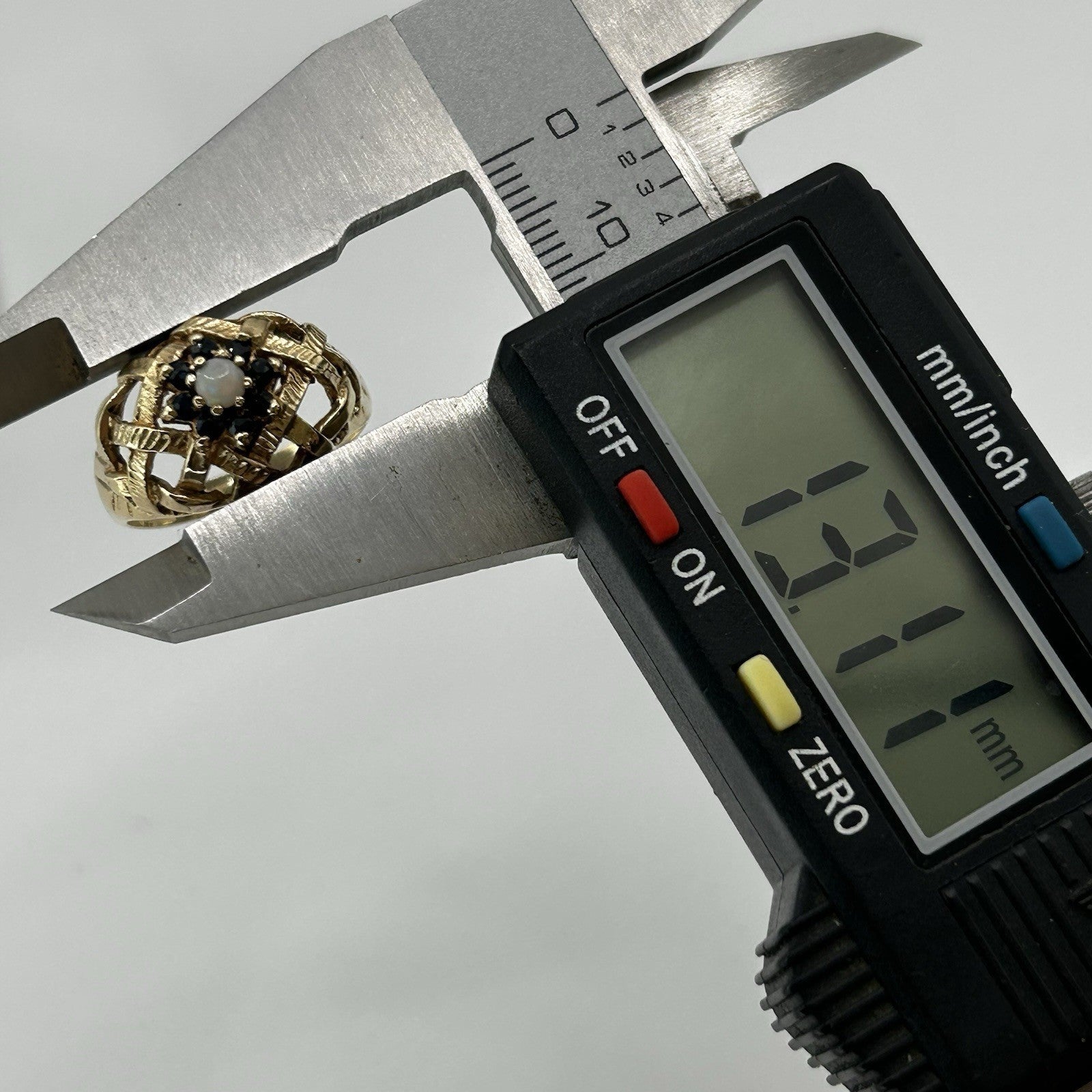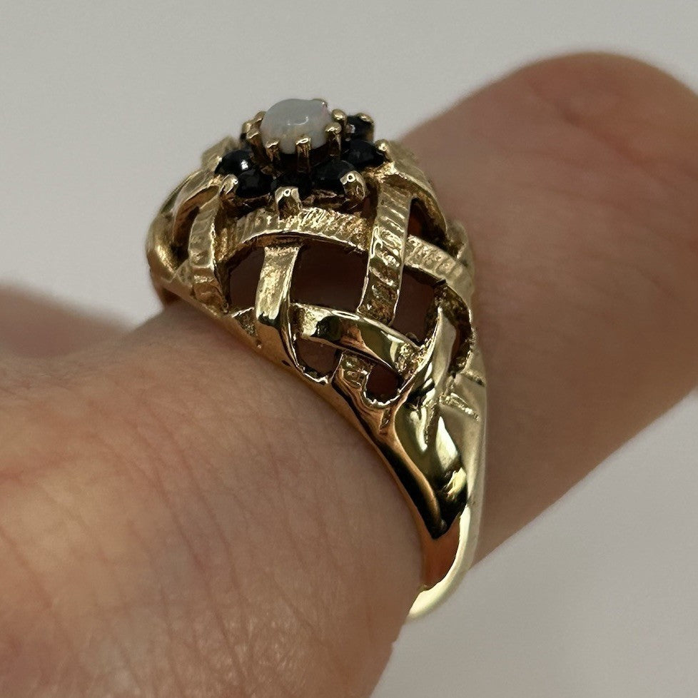 9 ct Gold Sapphire & Opal Cluster Woven Ring 9ct 9k 375 Yellow Gold - Size R
