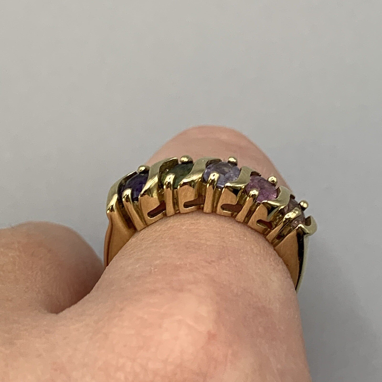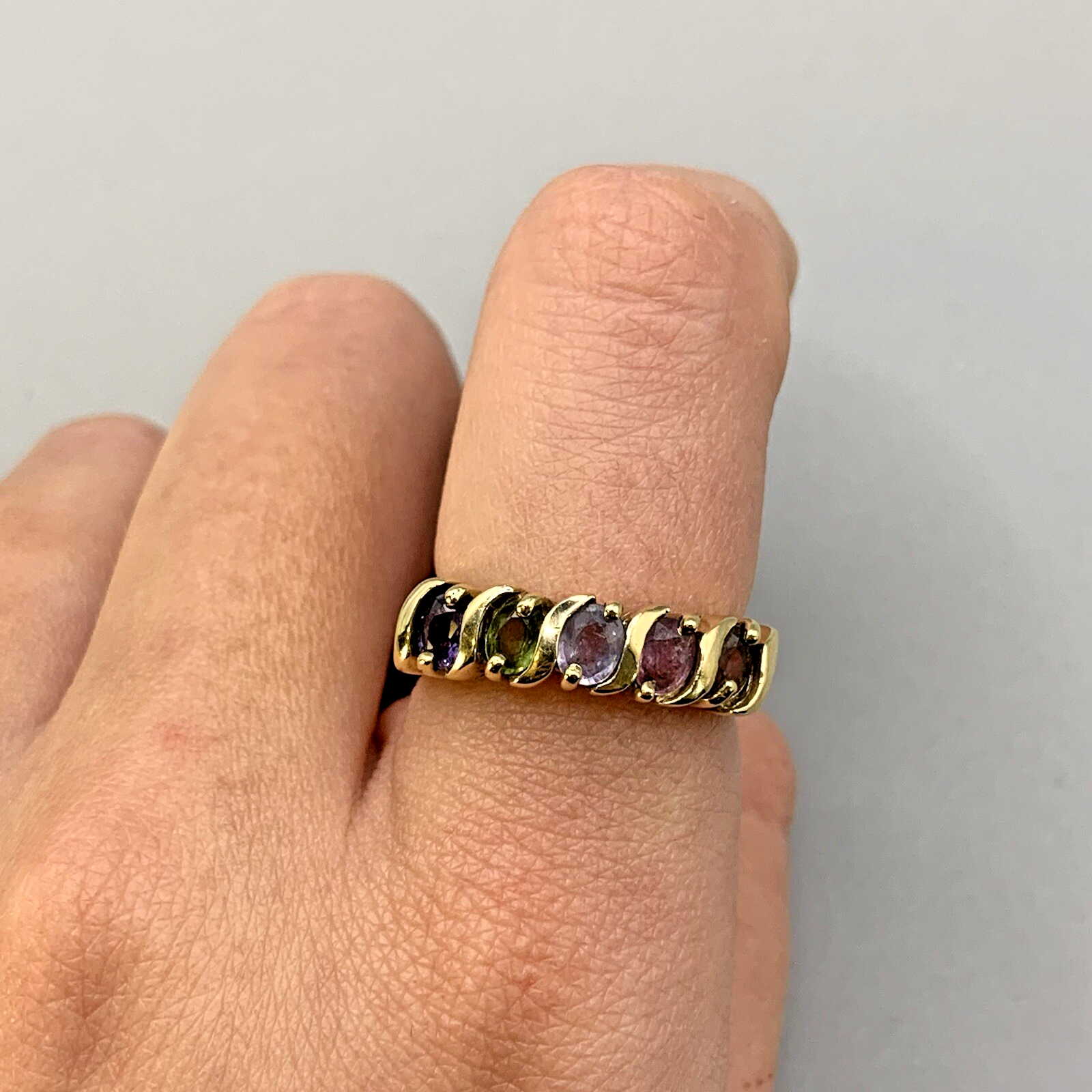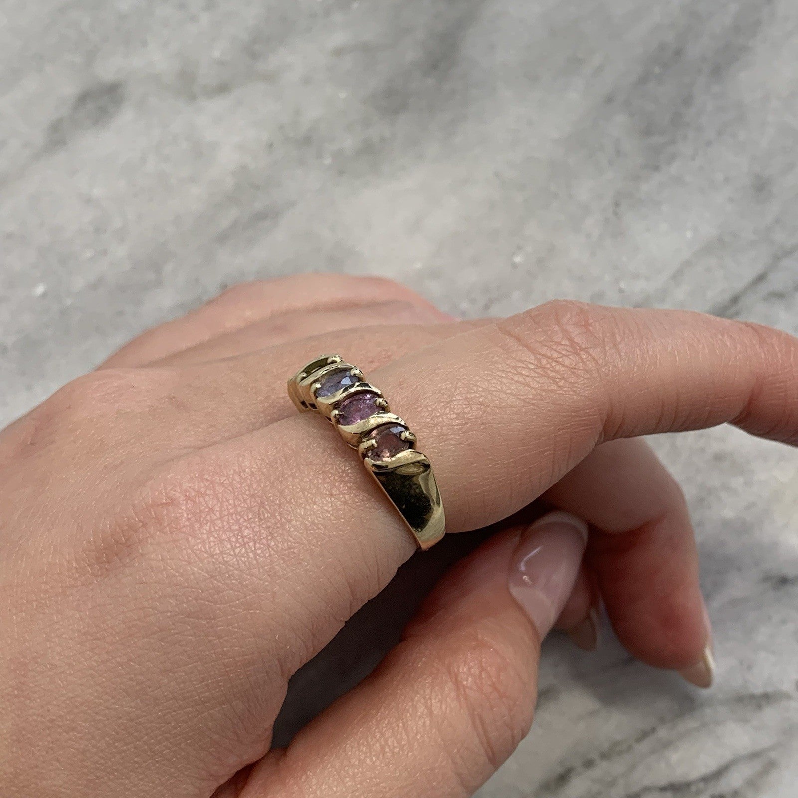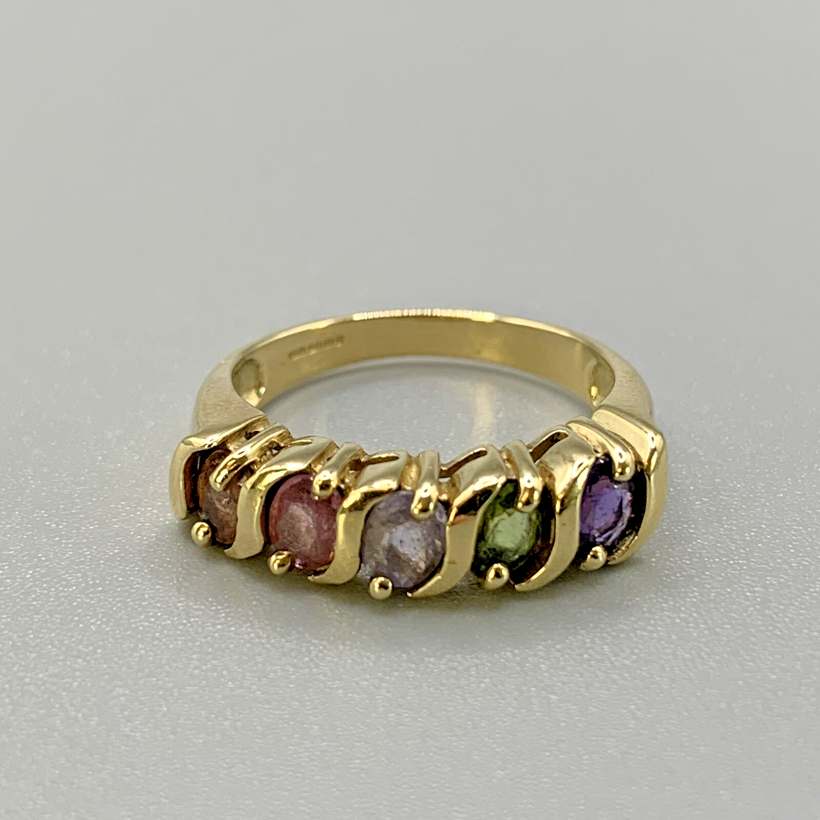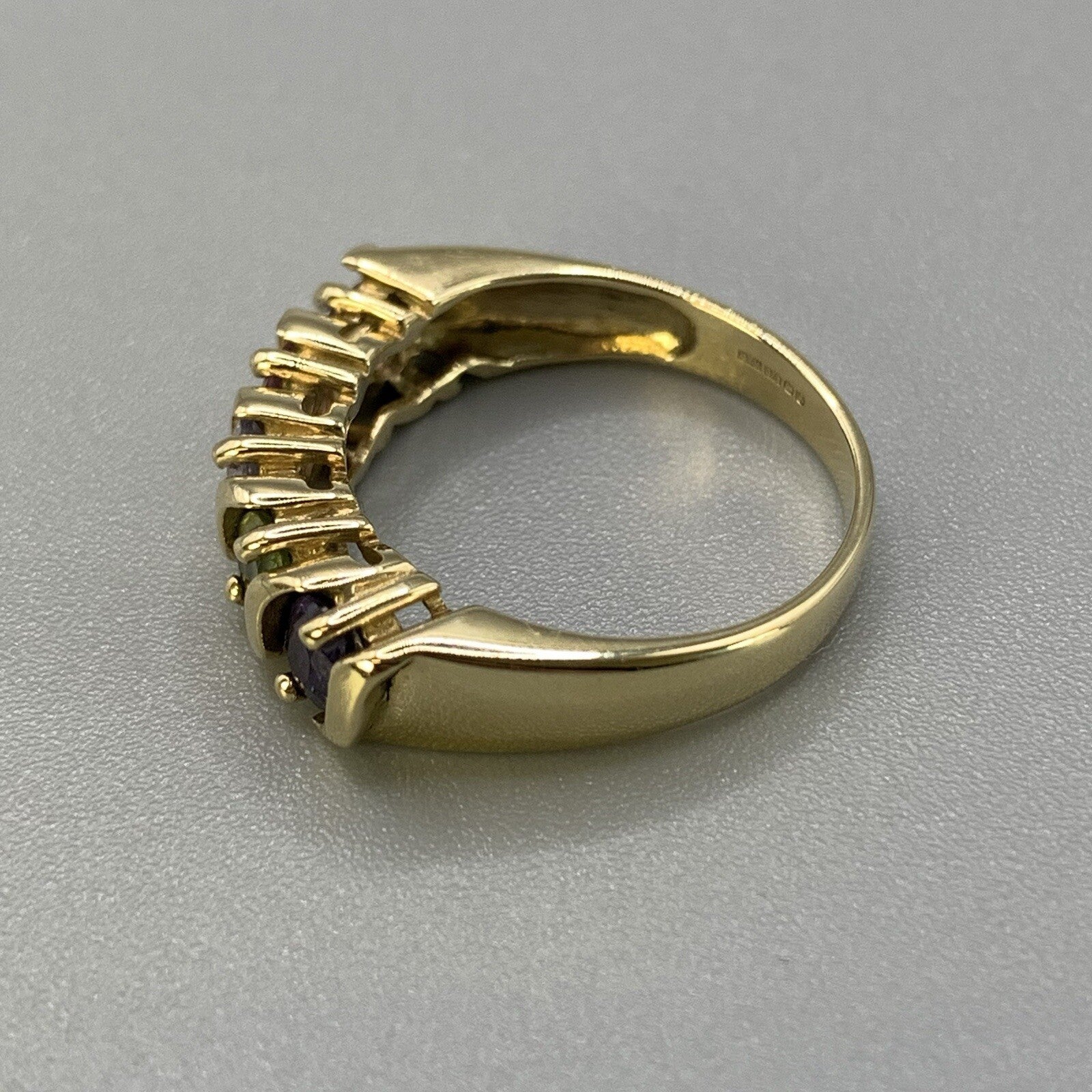 9 ct Gold Sapphire Ring Multicolour Blue Green Pink in Yellow Gold - Size N