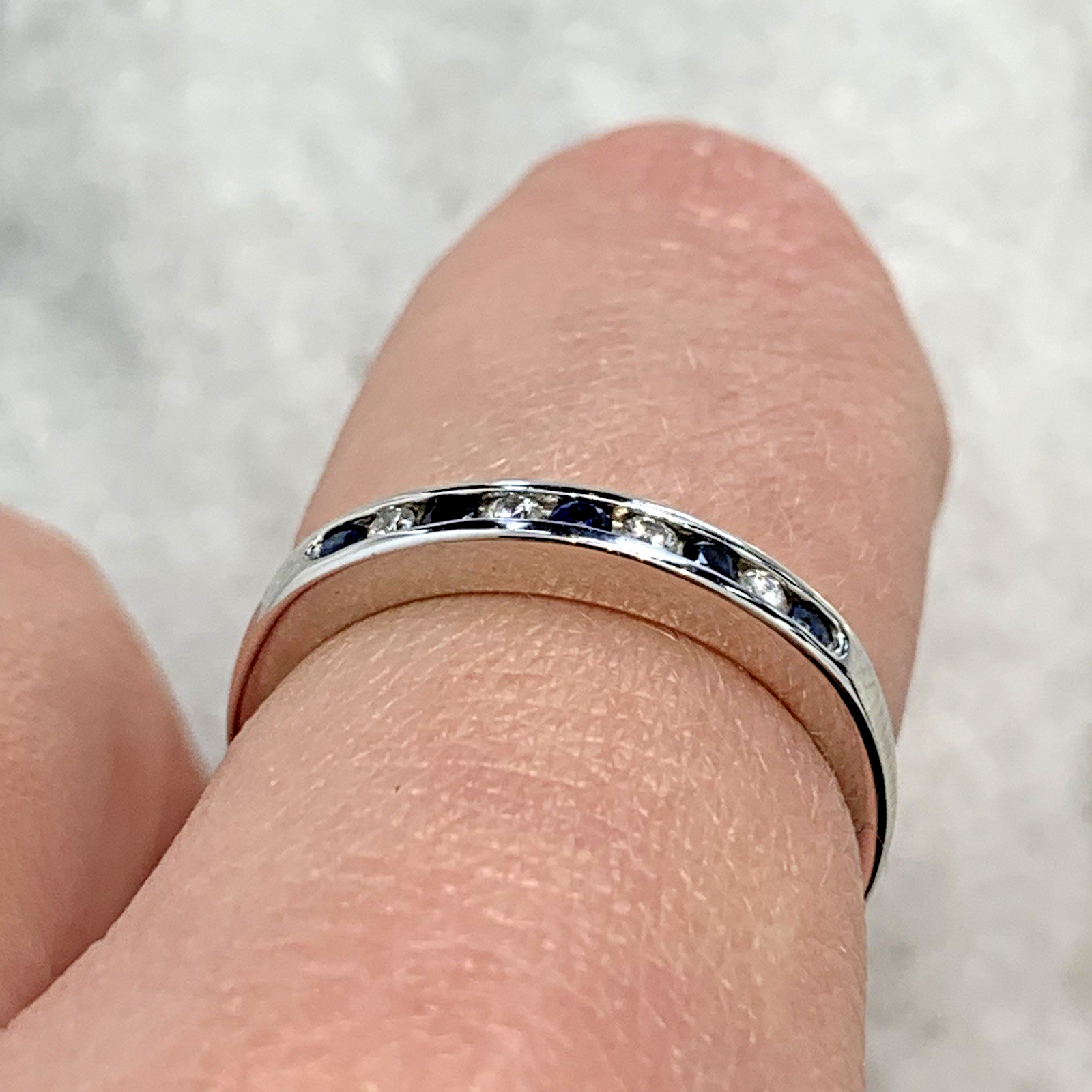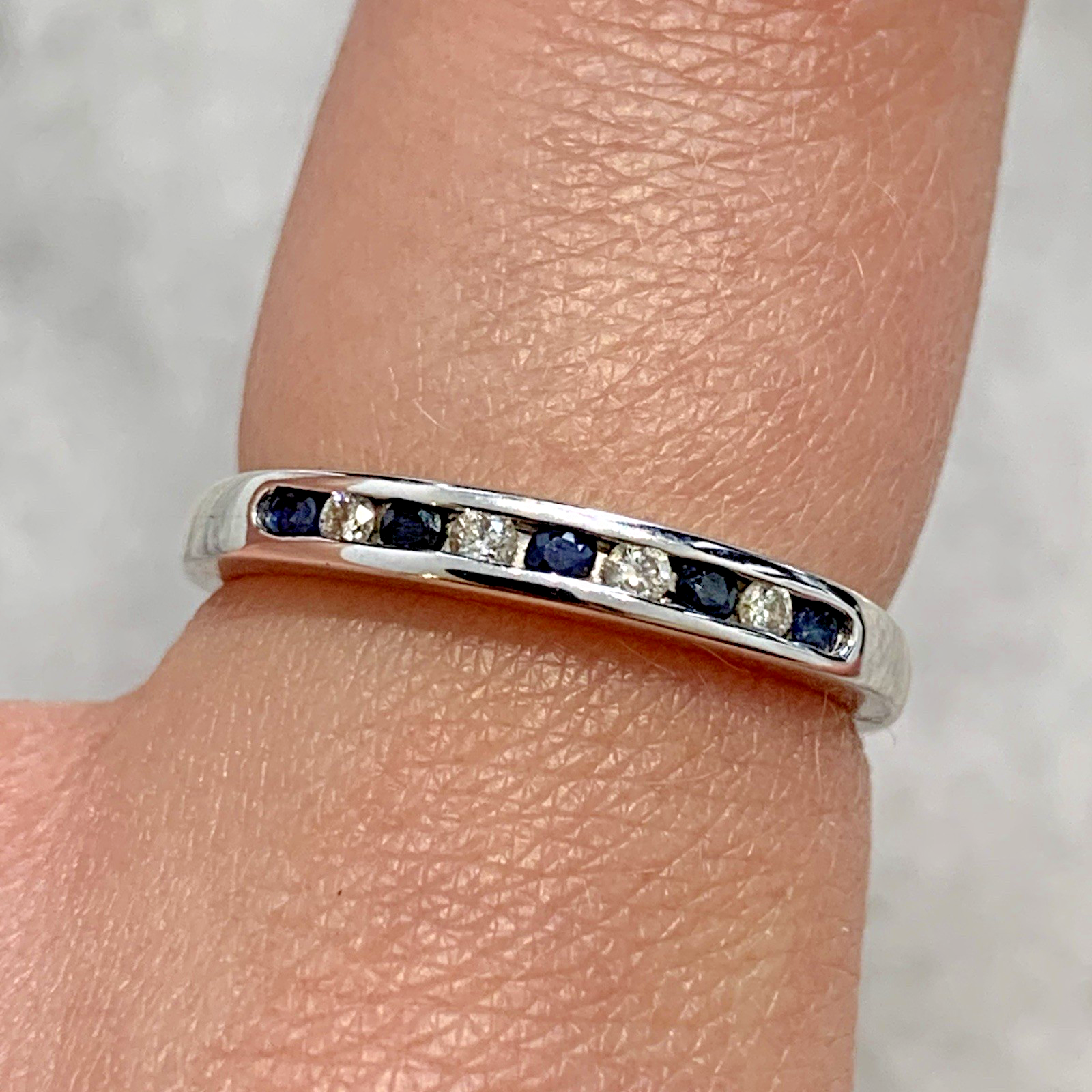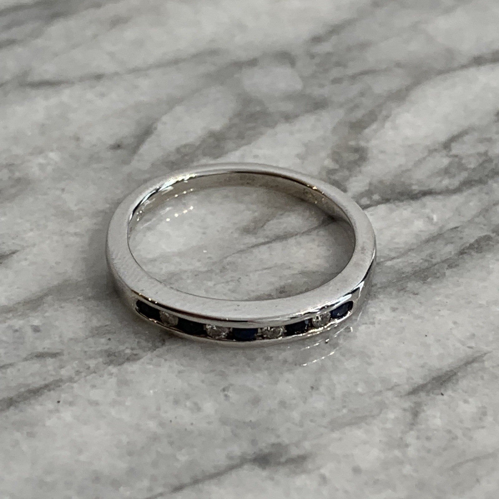 Diamond & Sapphire 9 ct Gold Ring Channel Set Band in 375 White Gold - Size L