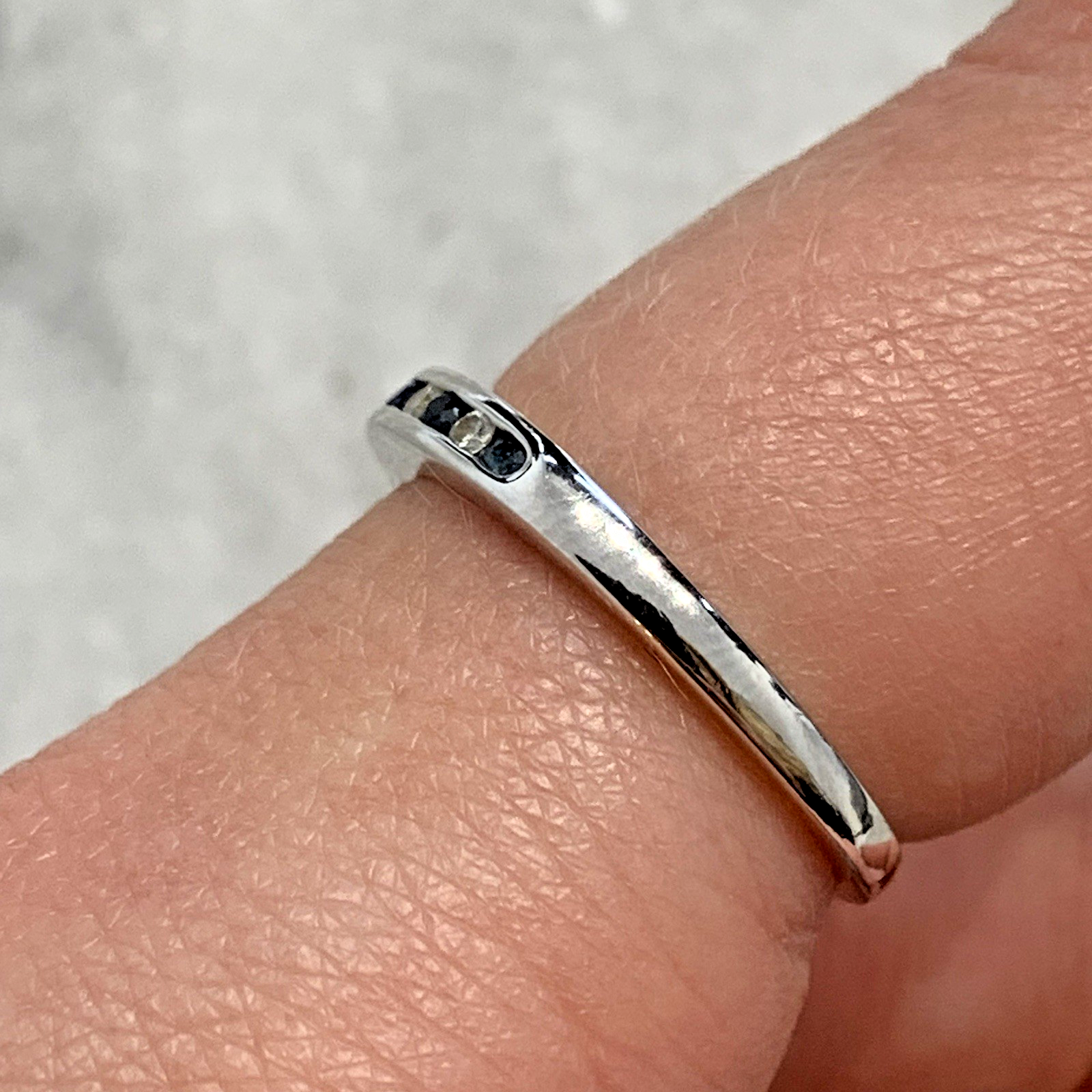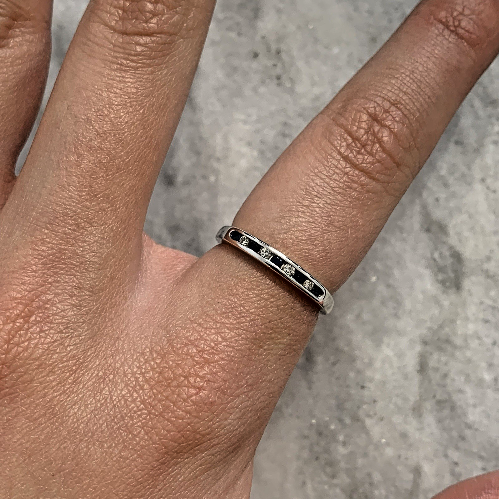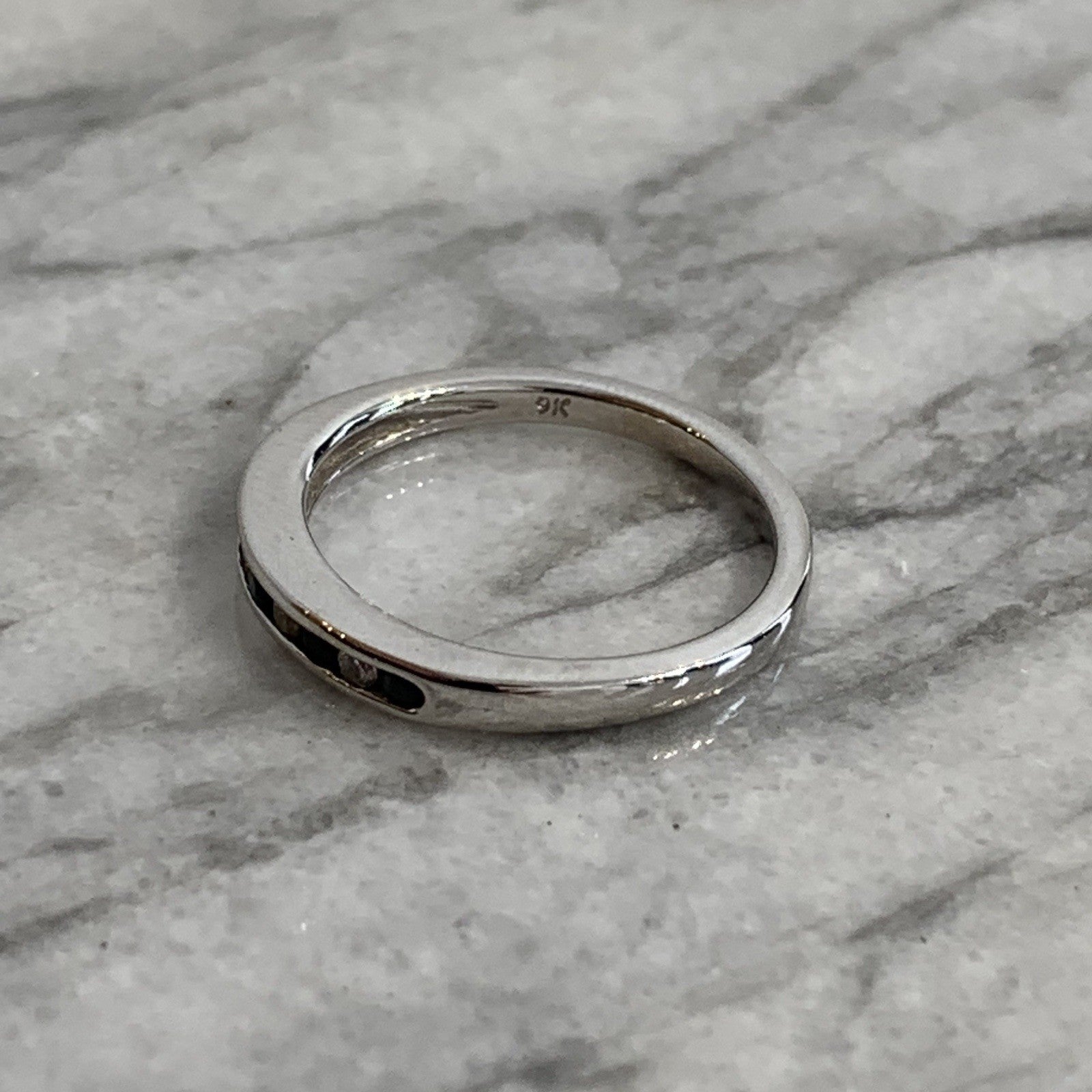 Diamond & Sapphire 9 ct Gold Ring Channel Set Band in 375 White Gold - Size L