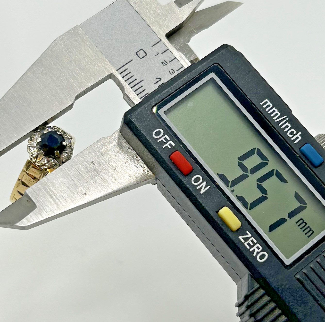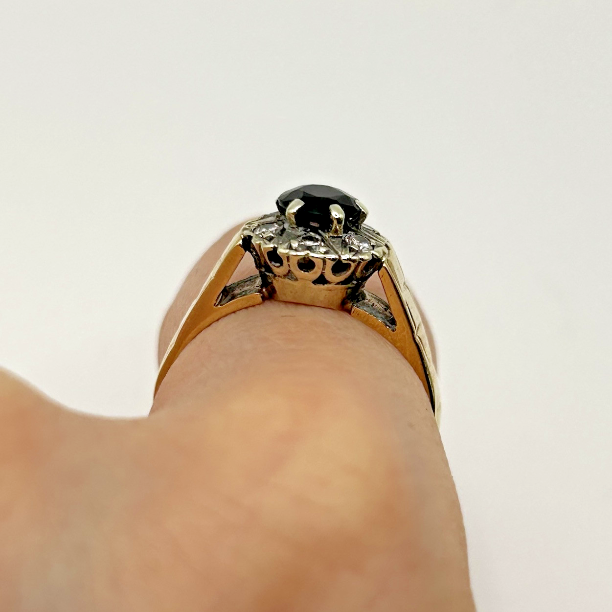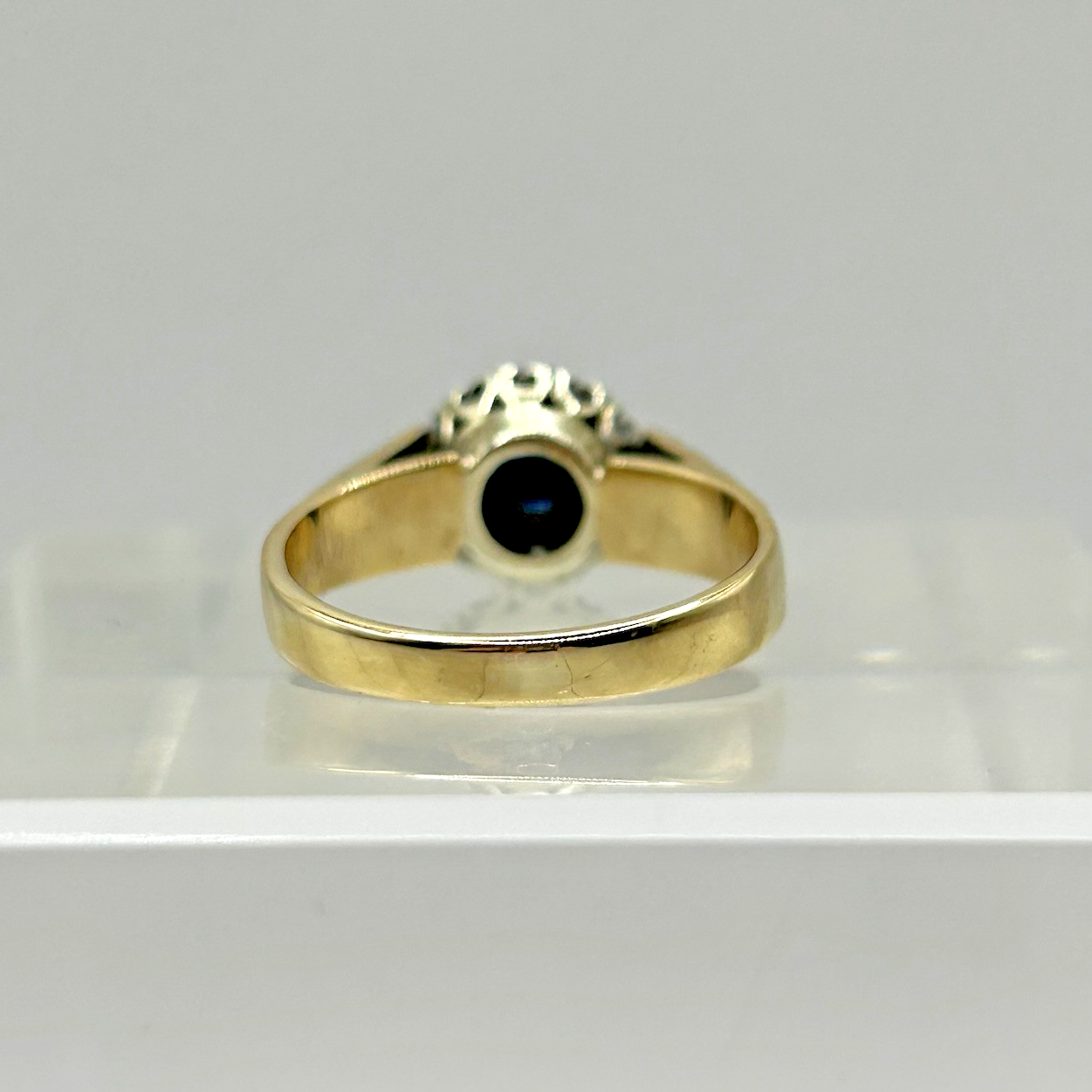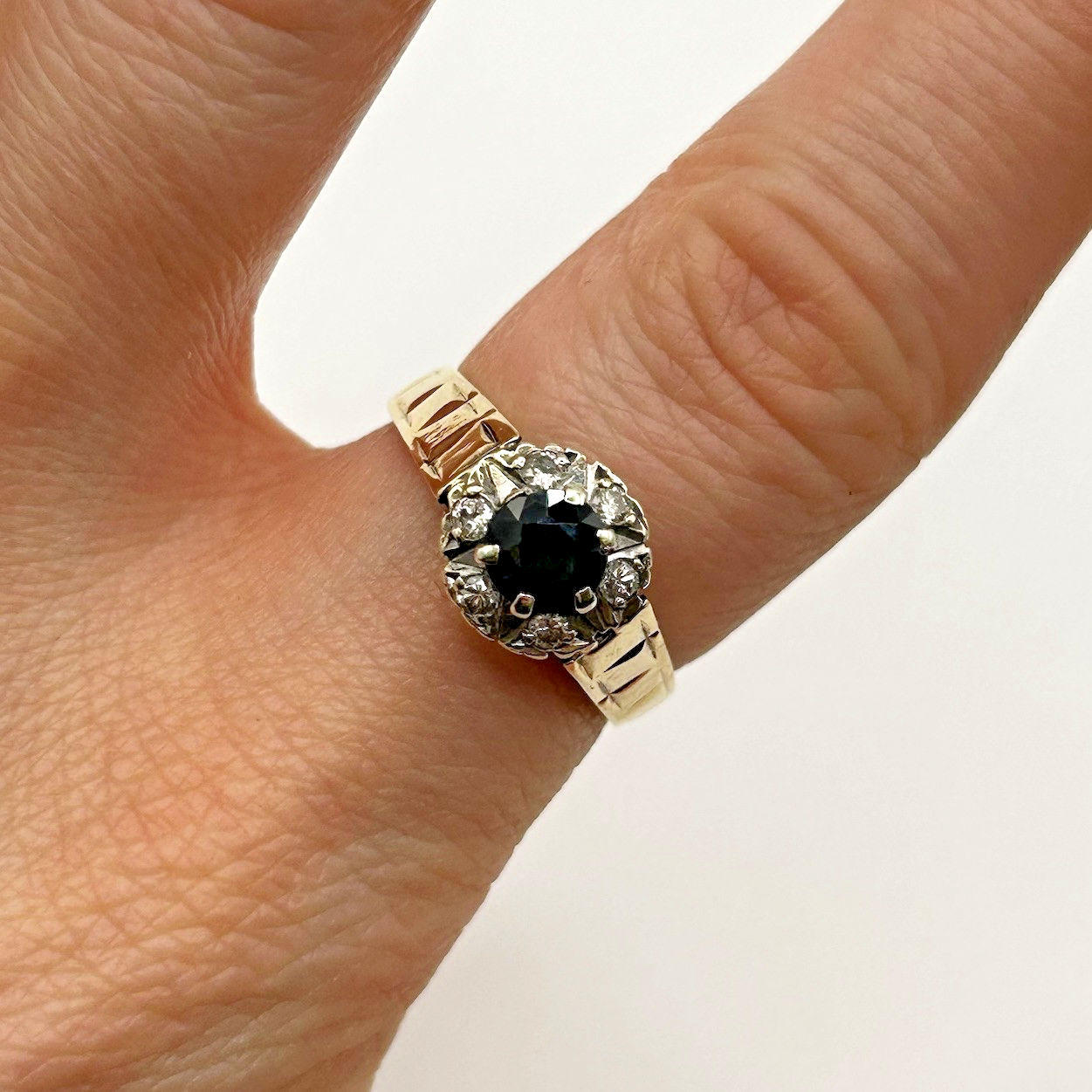 Sapphire & Diamond Ring 9ct Gold Cluster Textured Shoulders Yellow Gold - Size N